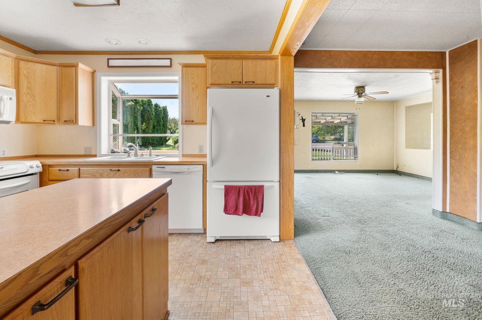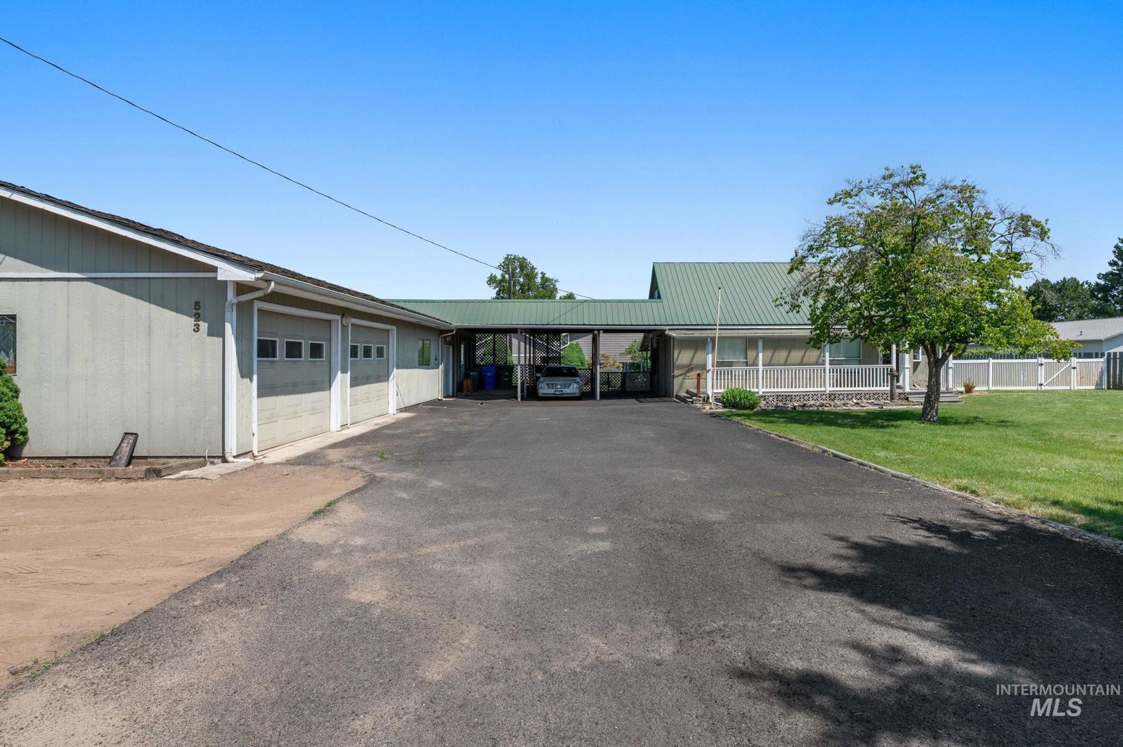 Conveniently located West orchards home. Sets back off of street for privacy. Covered front porch and patio. Attached two car carport, plus 30x60 garage/shop combination. Shop has a 3/4 bath, forced air gas heating and air conditioning. In the backyard you will find an underground sprinkler system and large garden shed.