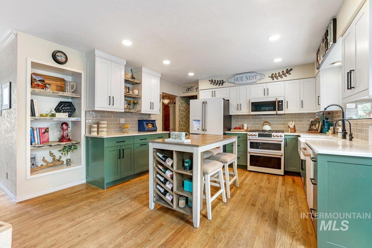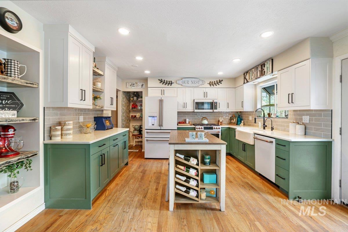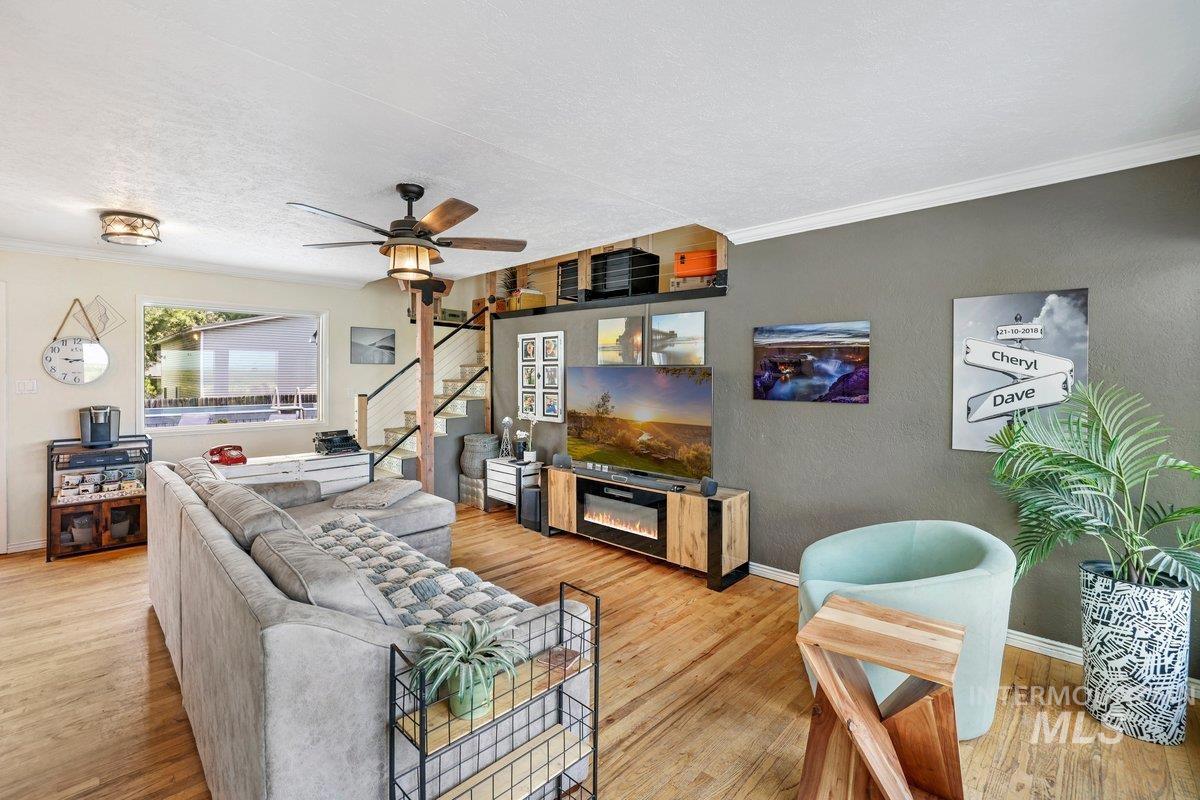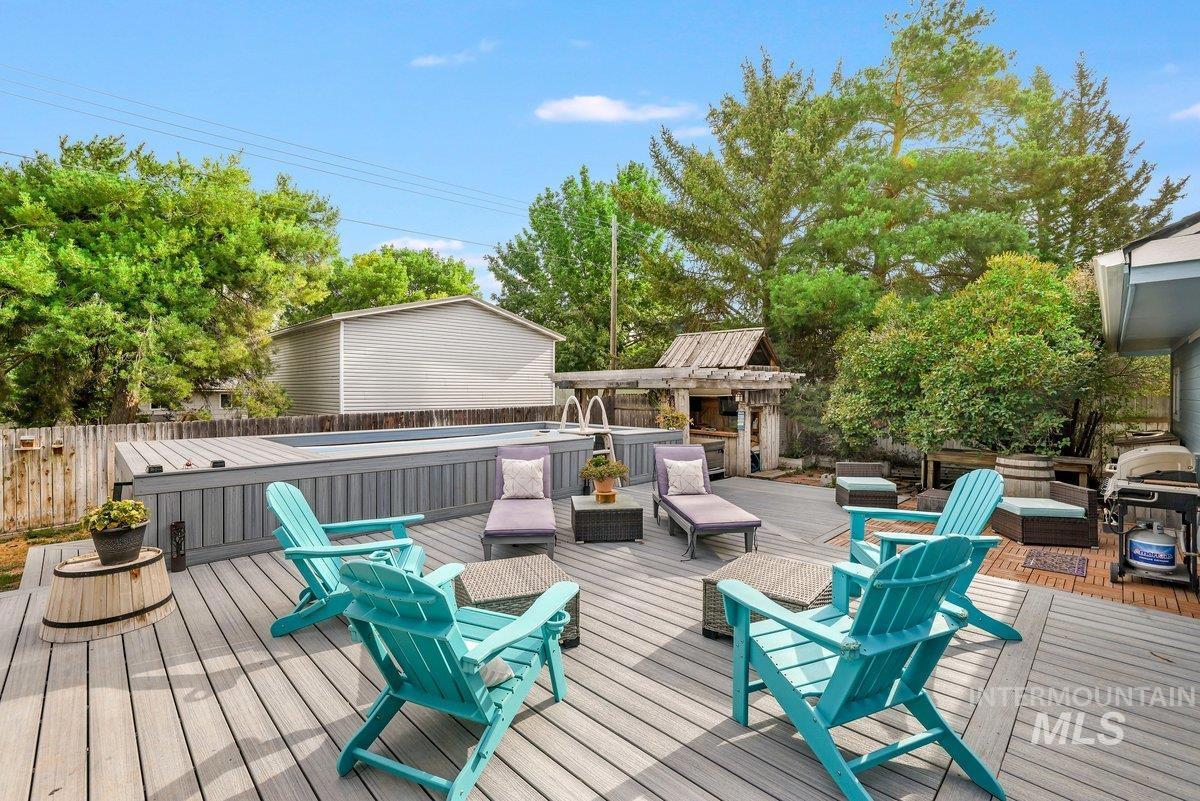 This home offers endless possibilities with space for a future shop, RV parking with power, and two sheds—one with power. The exterior was just freshly painted, and the multi-level deck is perfect for outdoor fun with a built-in pool, hot tub, tiki bar, and garden beds. The main water line was just replaced along with the well pump & pressure tank! Inside, the farmhouse-style kitchen boasts GE Café appliances (dual fuel oven/range) and amazing natural light. The entire second story is a private primary suite featuring a gas fireplace, walk-in shower, heated floor, closet, and whimsical bonus room. The basement is an entertainer’s dream with a rec room, bar, and lounge space. Currently under construction.. you can choose the new flooring and paint! The garage is heated! Plenty of room to live, play, and relax—inside and out! Close to amenities & the canyon rim walking trail!