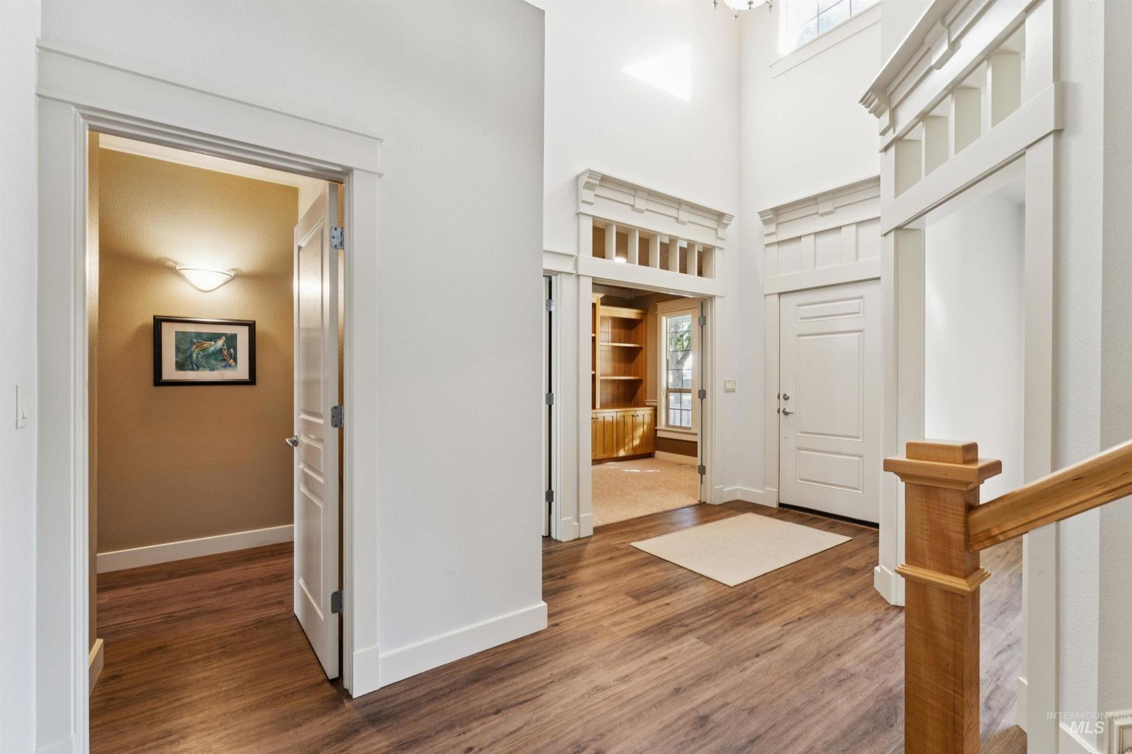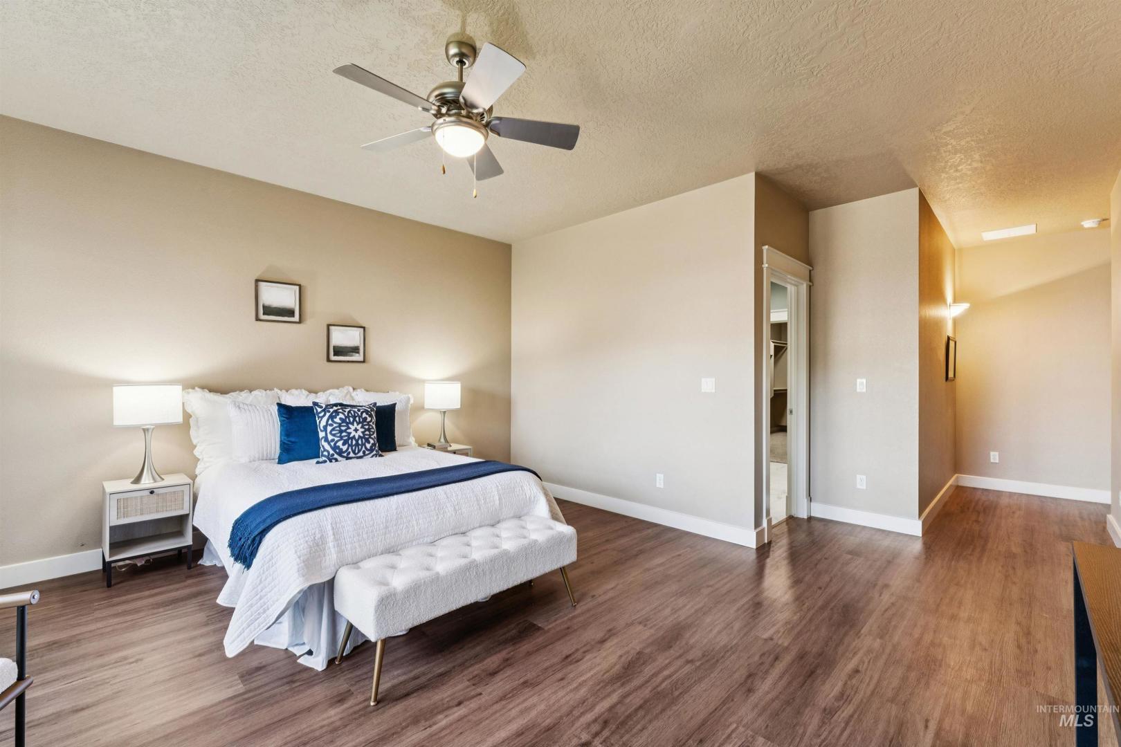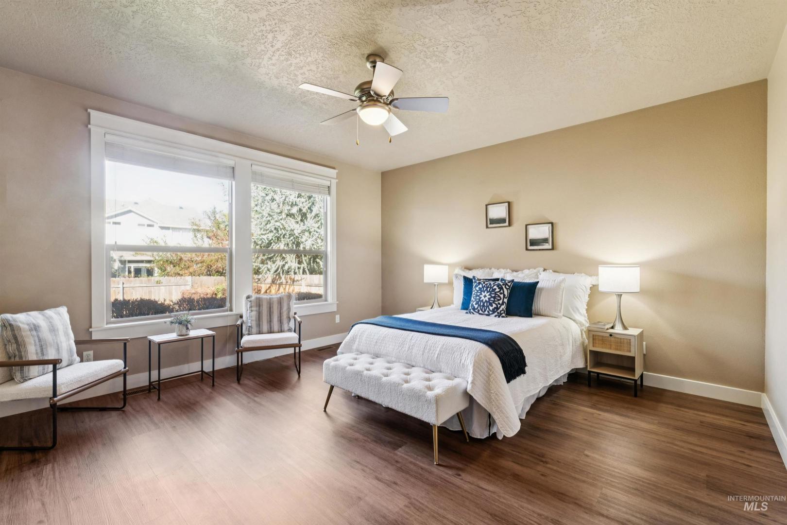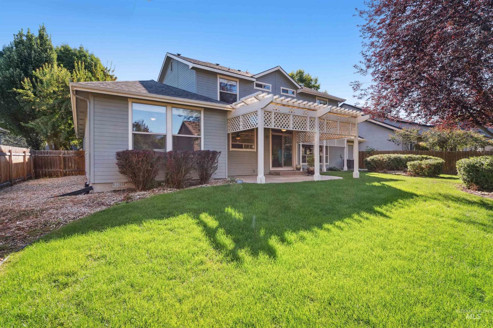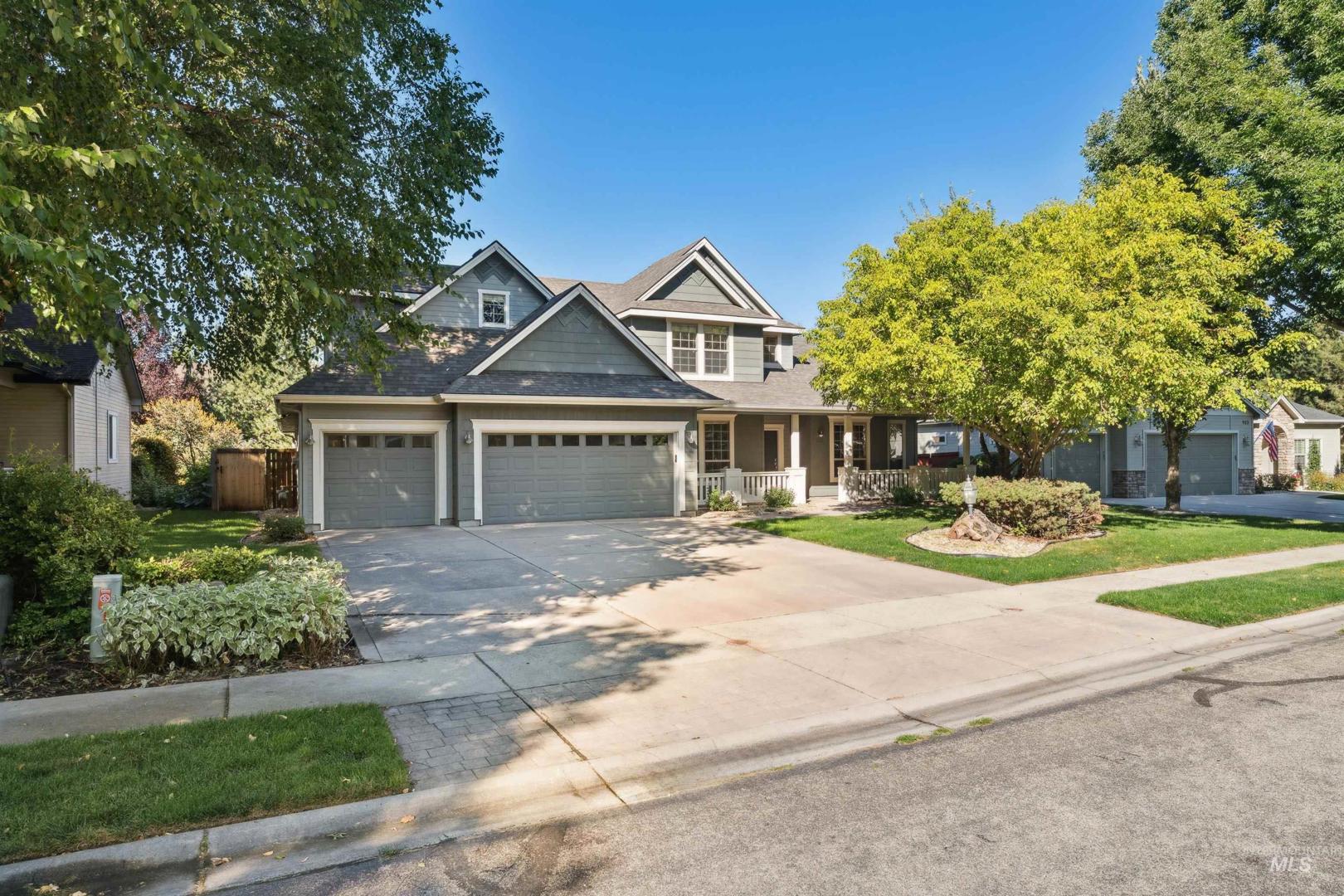 Back on market at no fault of home or seller. Stunning home in one of Eagle’s most desirable neighborhoods! Situated on nearly a ¼-acre lot, this charming home boasts soaring ceilings, primary bedroom on the main level, flexible office space, a cozy library, Jr. Suite, open concept living, bonus room, and a 4 car garage. The updated kitchen features new granite countertops and tile backsplash, reverse osmosis, stainless steel appliances and opens to the dining and great room. The spacious primary suite offers a spa-like retreat with a new freestanding tub, tiled shower, and granite counters, and large walk-in closet. The laundry room is oversized, providing plenty of storage and function. Upstairs you`ll find a Jr Suite with its own bathroom, 2 more bedrooms, 1 bathroom, and a large bonus room. The backyard provides privacy and serenity for those quiet mornings or BBQs with family and friends. This home blends comfort, style, and functionality in a prime Eagle location. Other recent upgrades include LVP flooring in the downstairs main areas, partial interior paint, exterior paint, roof is 10-years old, water heater (2018), JellyFish outdoor lighting for all the holidays. BTVAI