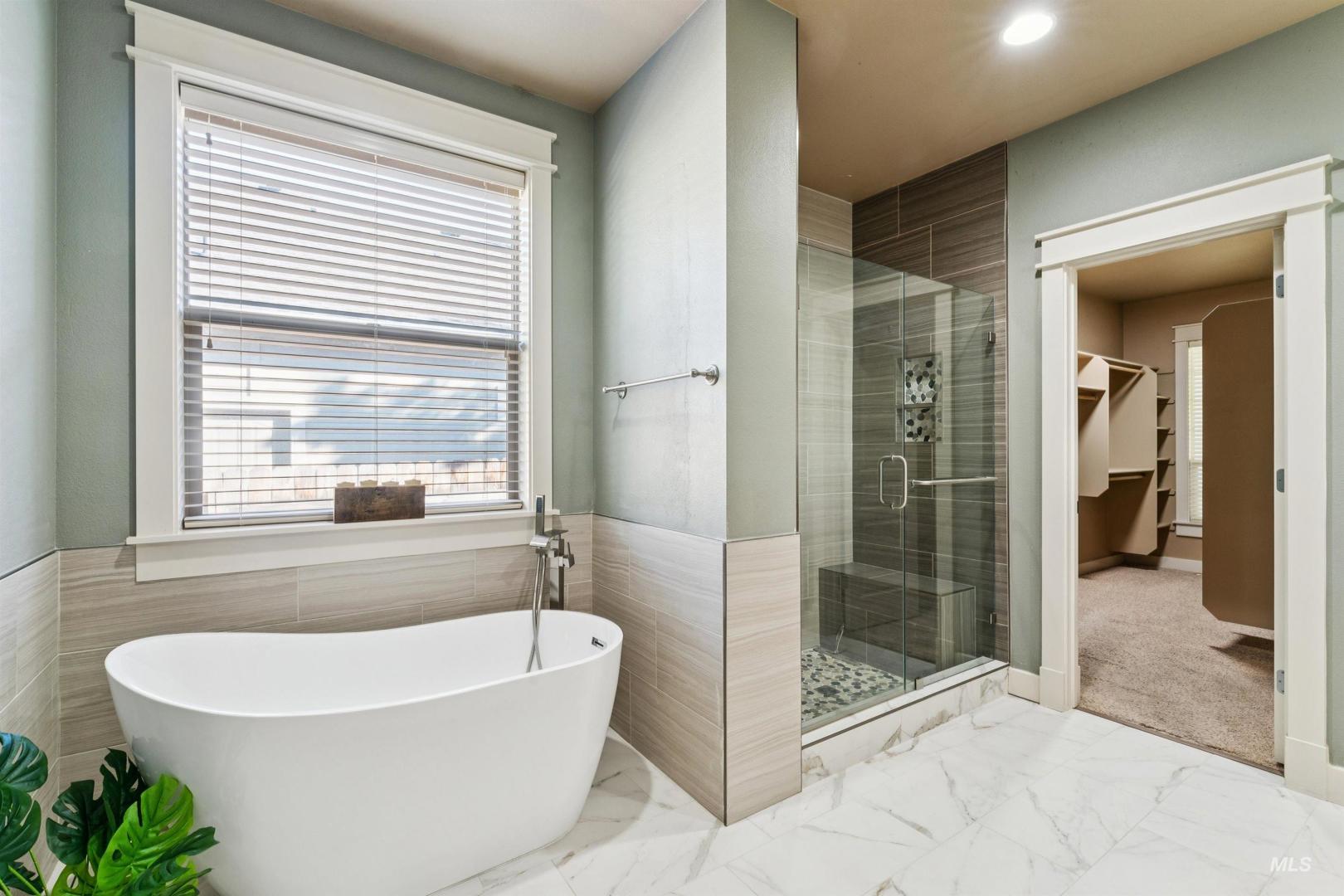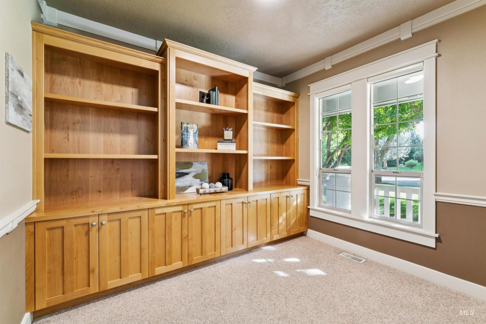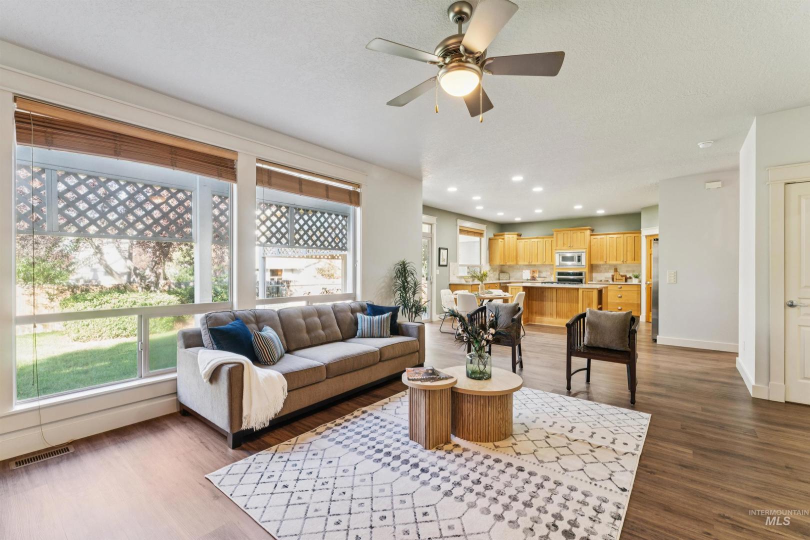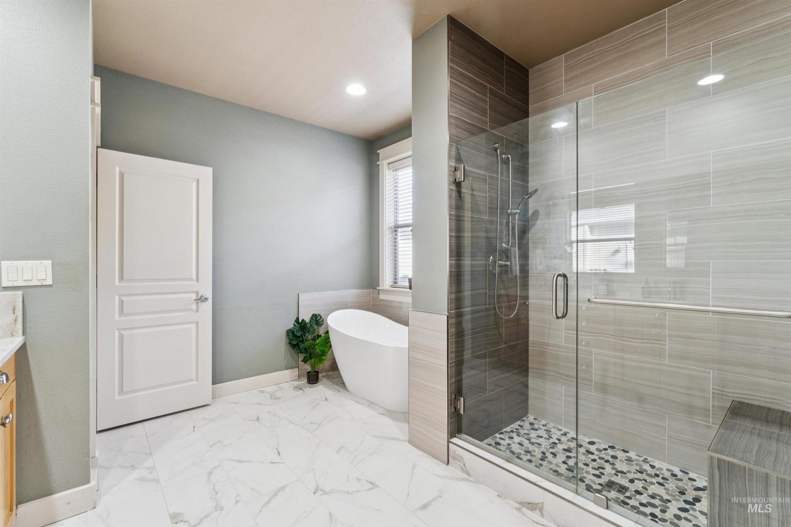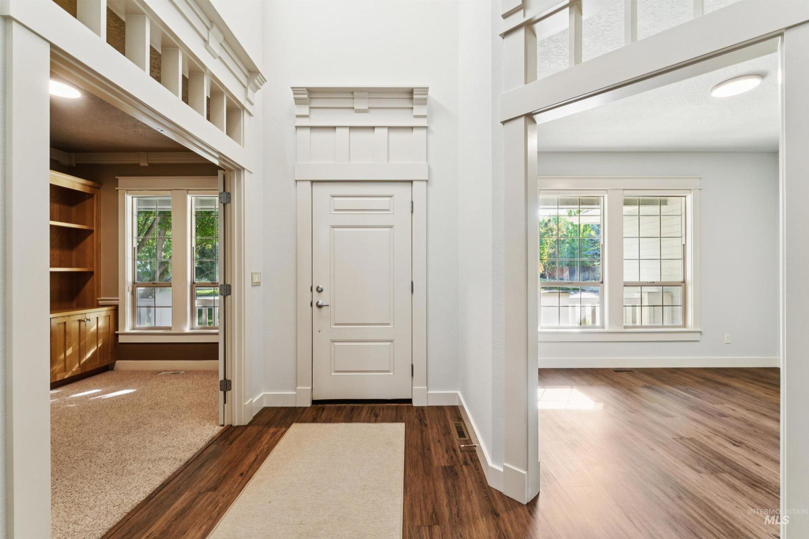 Back on market at no fault of home or seller. Stunning home in one of Eagle’s most desirable neighborhoods! Situated on nearly a ¼-acre lot, this charming home boasts soaring ceilings, primary bedroom on the main level, flexible office space, a cozy library, Jr. Suite, open concept living, bonus room, and a 4 car garage. The updated kitchen features new granite countertops and tile backsplash, reverse osmosis, stainless steel appliances and opens to the dining and great room. The spacious primary suite offers a spa-like retreat with a new freestanding tub, tiled shower, and granite counters, and large walk-in closet. The laundry room is oversized, providing plenty of storage and function. Upstairs you`ll find a Jr Suite with its own bathroom, 2 more bedrooms, 1 bathroom, and a large bonus room. The backyard provides privacy and serenity for those quiet mornings or BBQs with family and friends. This home blends comfort, style, and functionality in a prime Eagle location. Other recent upgrades include LVP flooring in the downstairs main areas, partial interior paint, exterior paint, roof is 10-years old, water heater (2018), JellyFish outdoor lighting for all the holidays. BTVAI