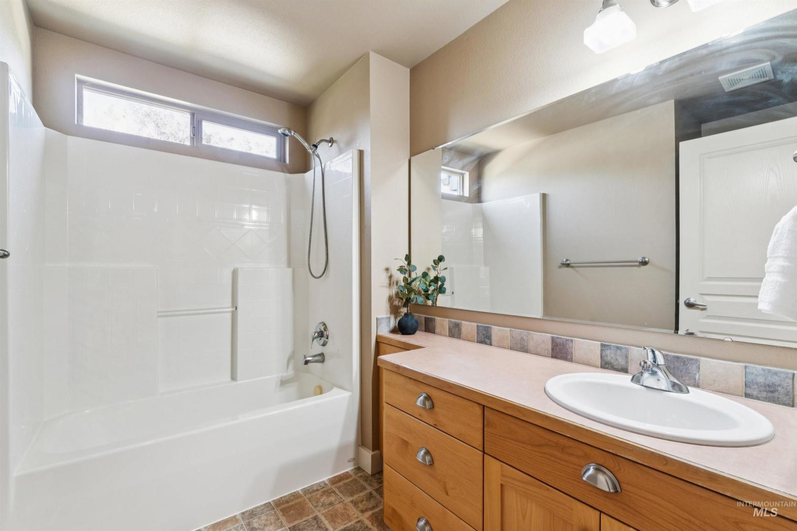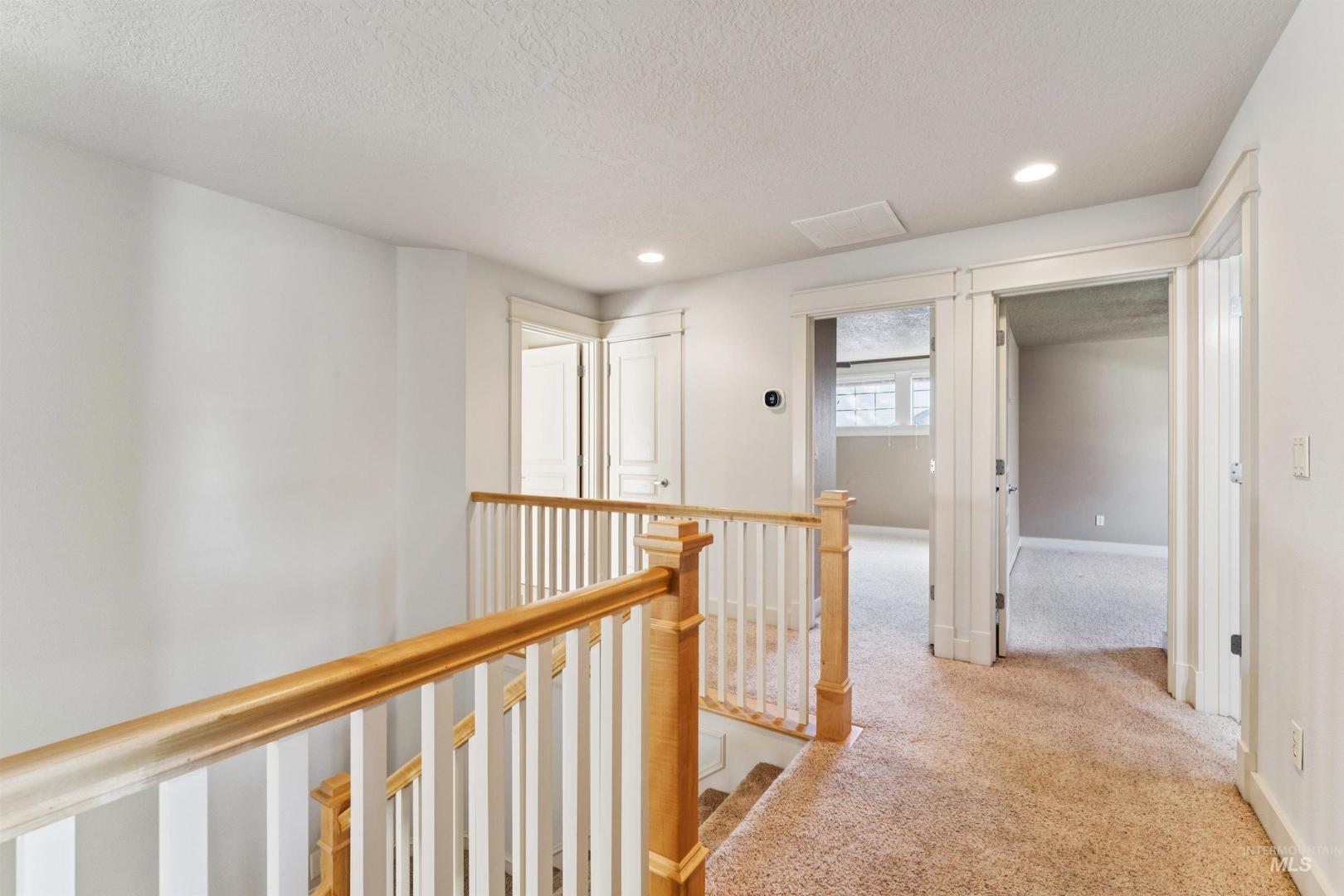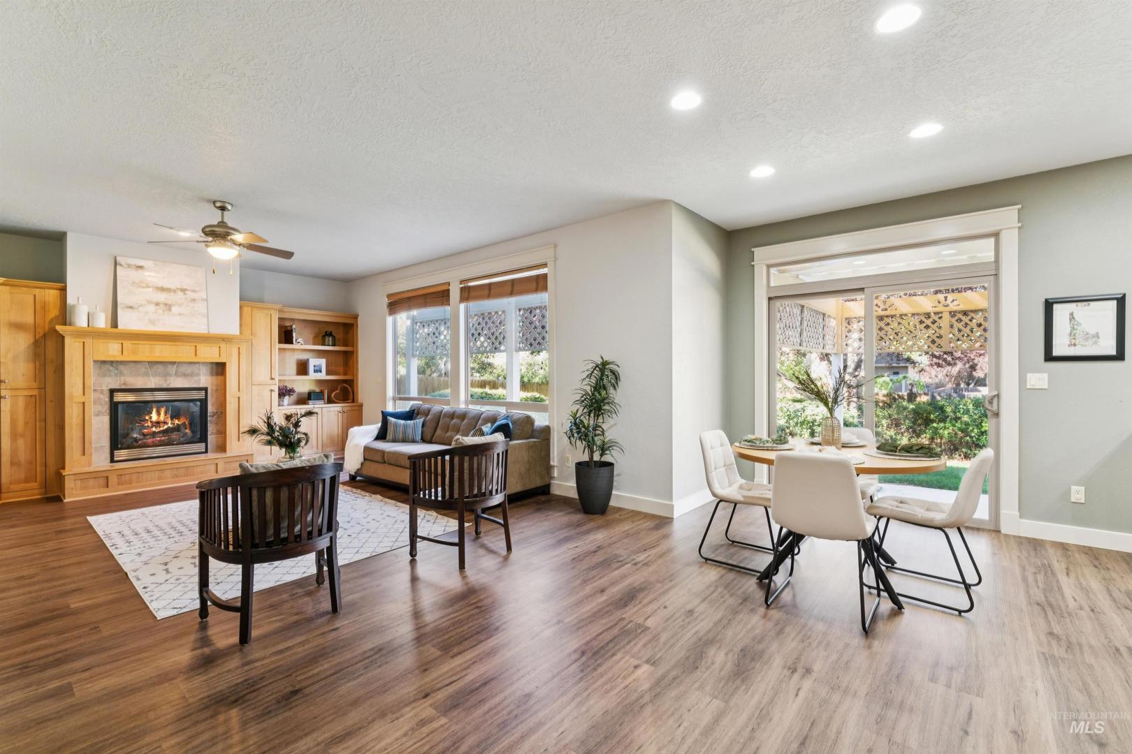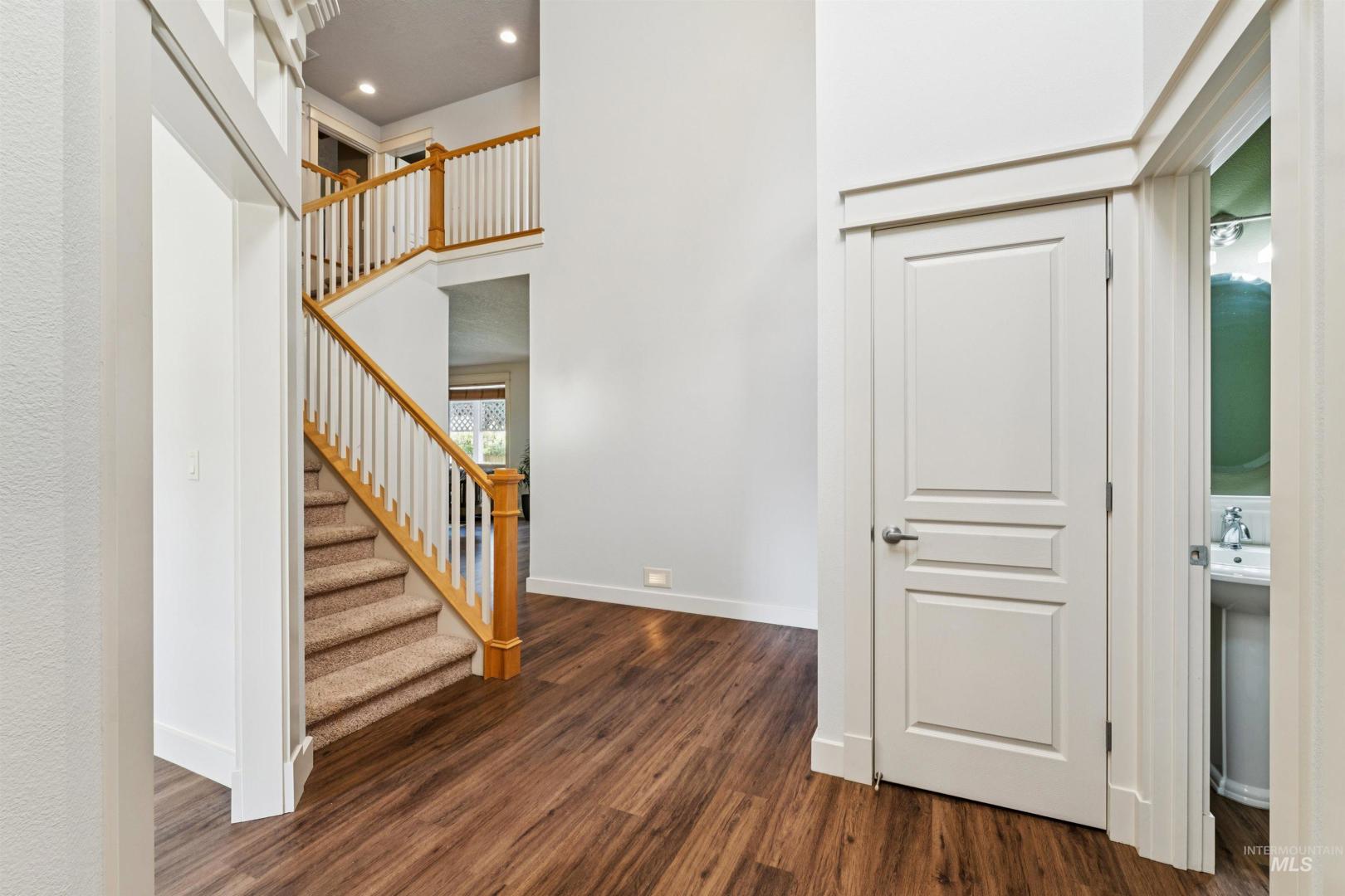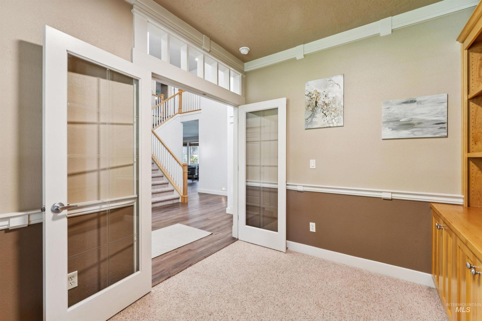 Back on market at no fault of home or seller. Stunning home in one of Eagle’s most desirable neighborhoods! Situated on nearly a ¼-acre lot, this charming home boasts soaring ceilings, primary bedroom on the main level, flexible office space, a cozy library, Jr. Suite, open concept living, bonus room, and a 4 car garage. The updated kitchen features new granite countertops and tile backsplash, reverse osmosis, stainless steel appliances and opens to the dining and great room. The spacious primary suite offers a spa-like retreat with a new freestanding tub, tiled shower, and granite counters, and large walk-in closet. The laundry room is oversized, providing plenty of storage and function. Upstairs you`ll find a Jr Suite with its own bathroom, 2 more bedrooms, 1 bathroom, and a large bonus room. The backyard provides privacy and serenity for those quiet mornings or BBQs with family and friends. This home blends comfort, style, and functionality in a prime Eagle location. Other recent upgrades include LVP flooring in the downstairs main areas, partial interior paint, exterior paint, roof is 10-years old, water heater (2018), JellyFish outdoor lighting for all the holidays. BTVAI