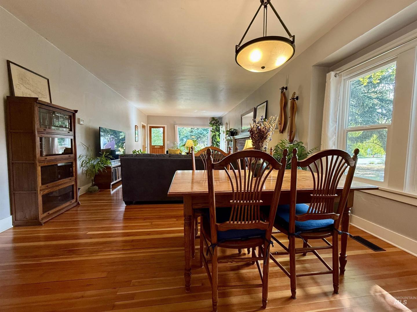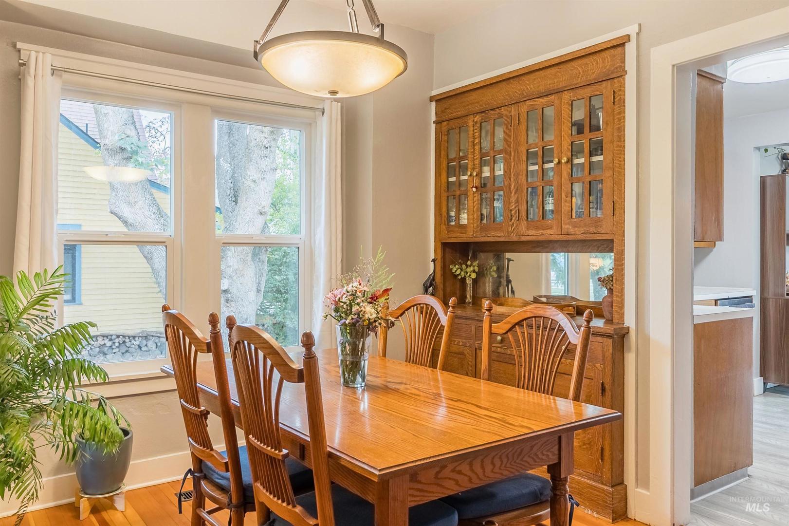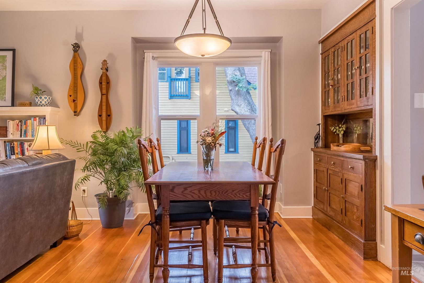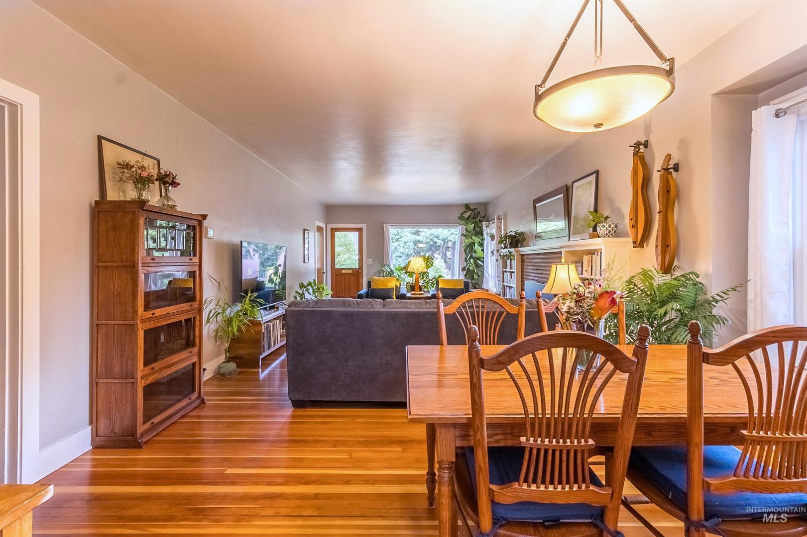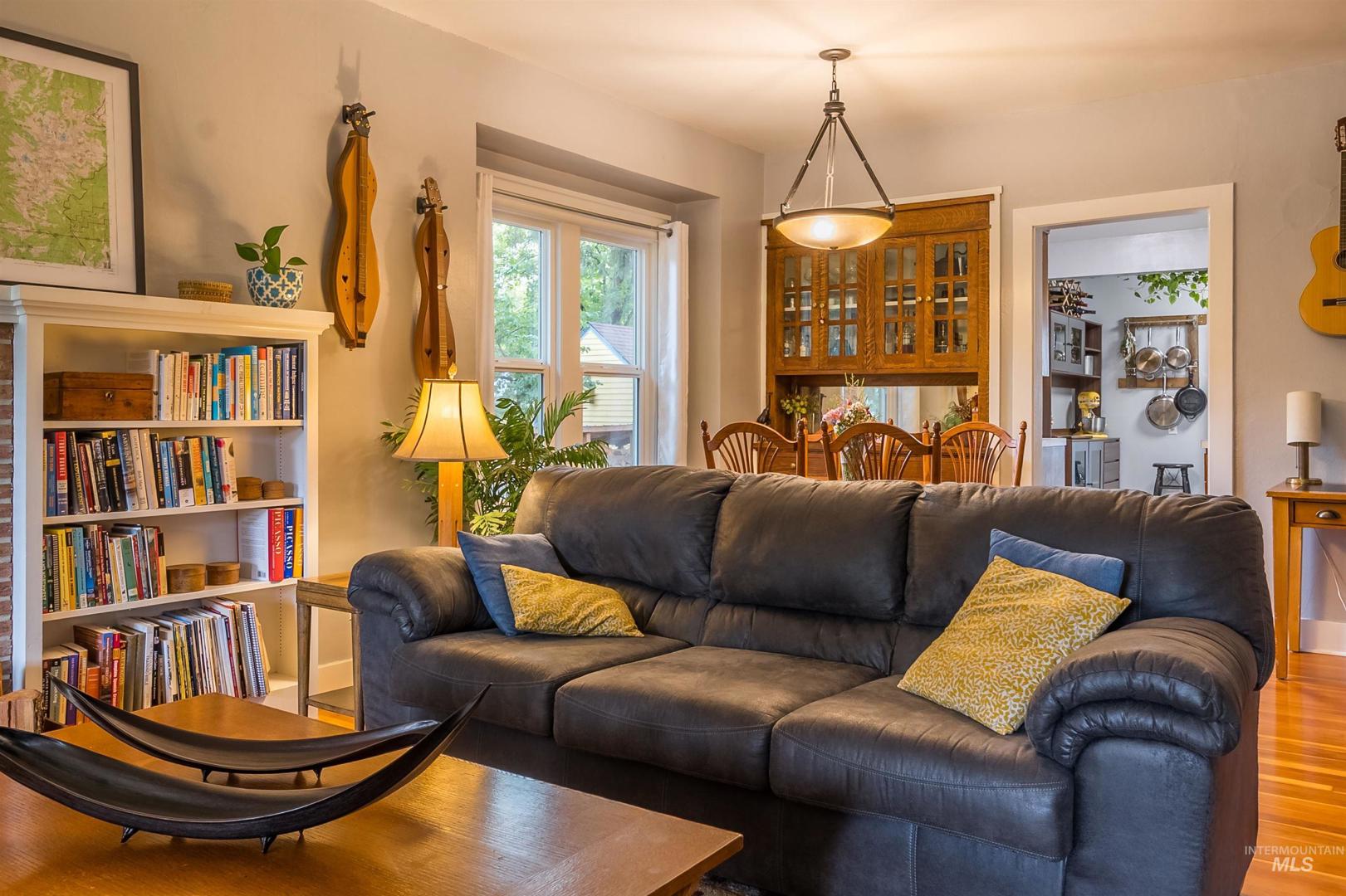 Location, charm, and history all in one! This 2 bedroom, 1 bath home is just around the corner from East City Park and a short jaunt to schools, local shops, and downtown Moscow, this classic 1918 home offers the perfect blend of convenience and character. Inside, you`ll find original features like a built-in hutch that speaks to the craftsmanship of the era, along with beautifully refinished hardwood floors. Major updates bring comfort and peace of mind, including most of the windows updated, a new furnace with heat pump and central AC, new kitchen appliances (2023-24), and recently refreshed exterior paint. With 1,692 square feet of space, the home offers more than meets the eye—including a 600 sqft unfinished basement with several rooms, a laundry area complete with newer washer and dryer (2021) and a utility sink. Step out onto the back deck and enjoy a beautifully fenced backyard featuring mature trees, berry bushes, graveled area for firepit, a garden area, and a detached one-car garage. Easy access and parking is available using the alley at the back of the home. Whether you`re looking for a starter home or a space that celebrates classic charm, this versatile home delivers both comfort and potential. Come see why this piece of Moscow’s history might just be the perfect next chapter in your own story.