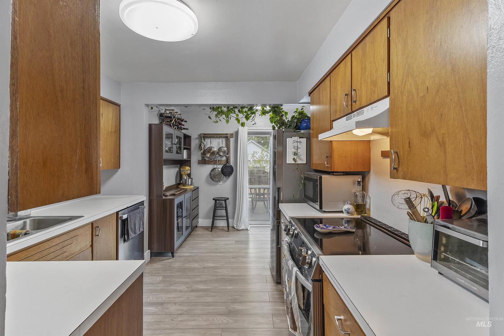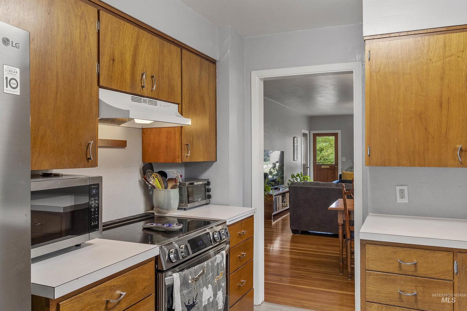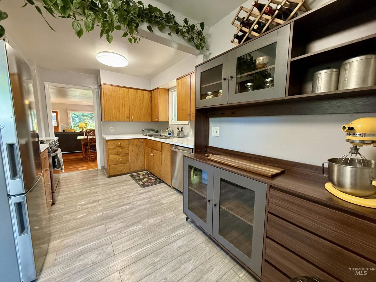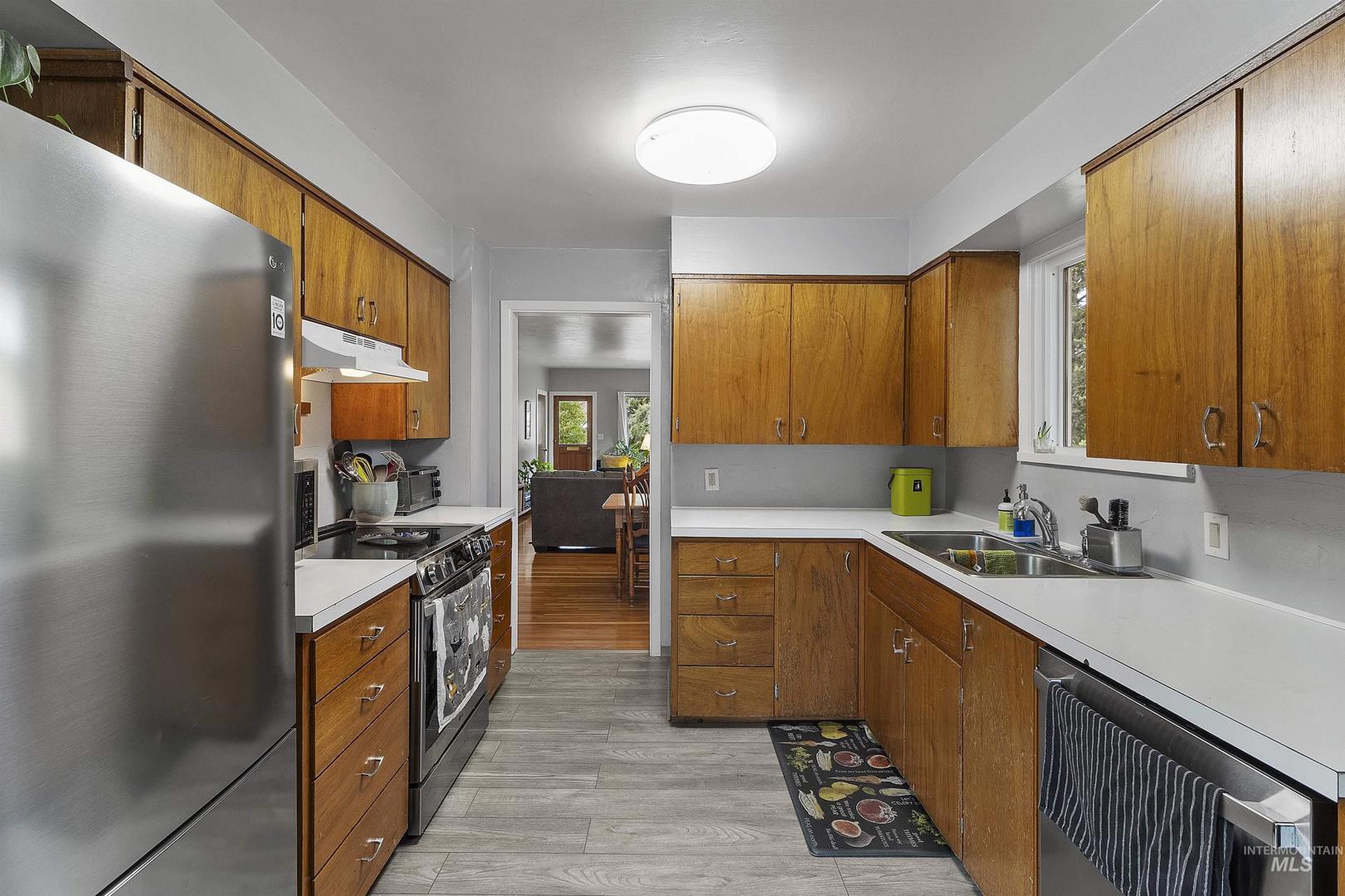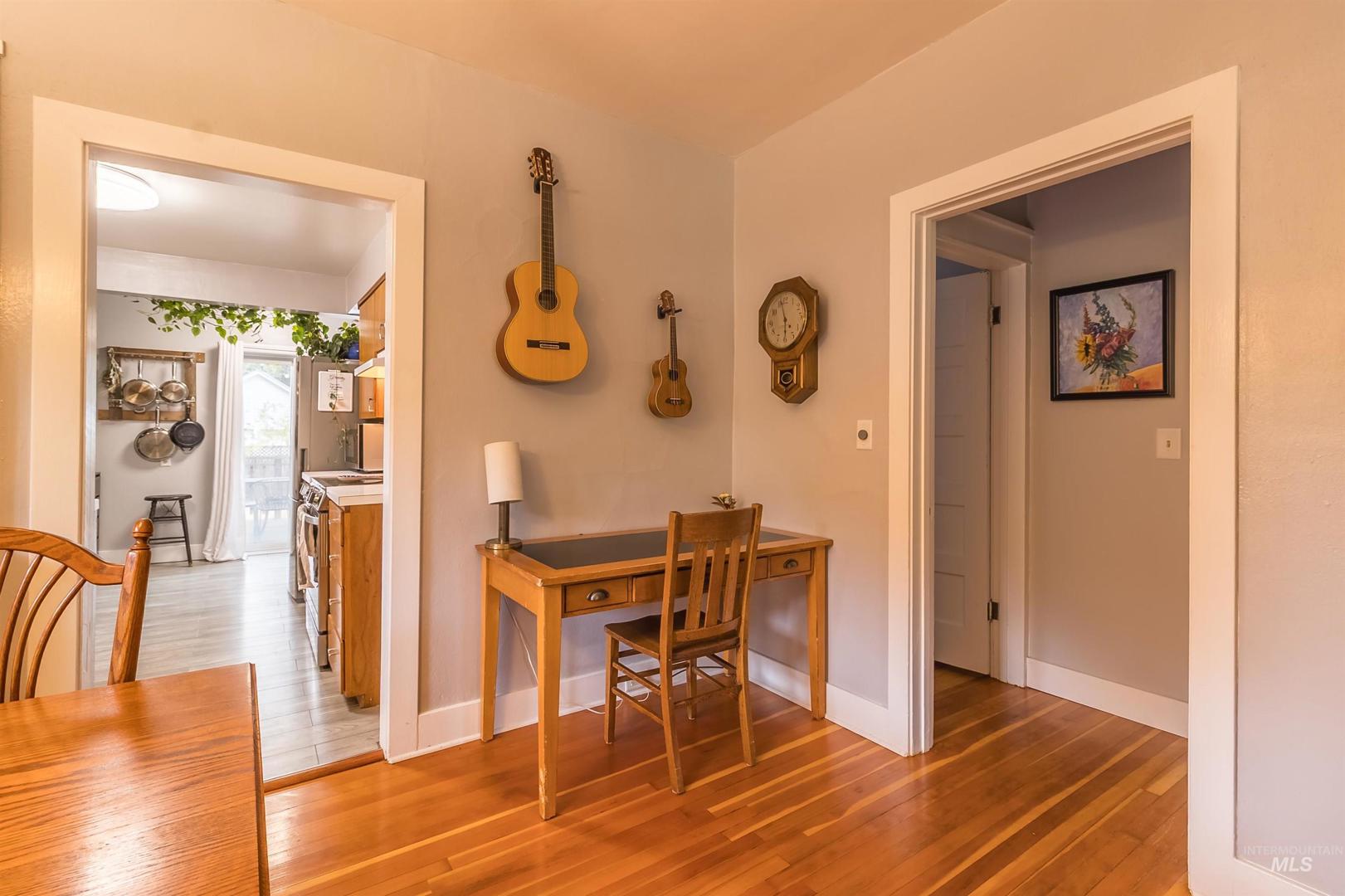 Location, charm, and history all in one! This 2 bedroom, 1 bath home is just around the corner from East City Park and a short jaunt to schools, local shops, and downtown Moscow, this classic 1918 home offers the perfect blend of convenience and character. Inside, you`ll find original features like a built-in hutch that speaks to the craftsmanship of the era, along with beautifully refinished hardwood floors. Major updates bring comfort and peace of mind, including most of the windows updated, a new furnace with heat pump and central AC, new kitchen appliances (2023-24), and recently refreshed exterior paint. With 1,692 square feet of space, the home offers more than meets the eye—including a 600 sqft unfinished basement with several rooms, a laundry area complete with newer washer and dryer (2021) and a utility sink. Step out onto the back deck and enjoy a beautifully fenced backyard featuring mature trees, berry bushes, graveled area for firepit, a garden area, and a detached one-car garage. Easy access and parking is available using the alley at the back of the home. Whether you`re looking for a starter home or a space that celebrates classic charm, this versatile home delivers both comfort and potential. Come see why this piece of Moscow’s history might just be the perfect next chapter in your own story.