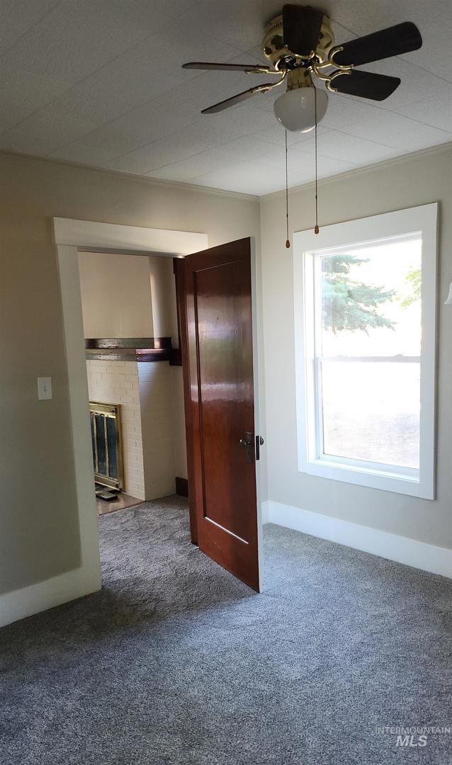 Built in 1920, this home features original woodwork and a brick fireplace. Recent updates include new carpet, paint, countertops, and a new stove/oven. The bathroom has also been updated. The exterior has fresh paint. Includes a covered front porch and an extra large two-car garage. A small, manageable yard is ideal for low-maintenance living. The unfinished basement provides ample storage. Centrally located.