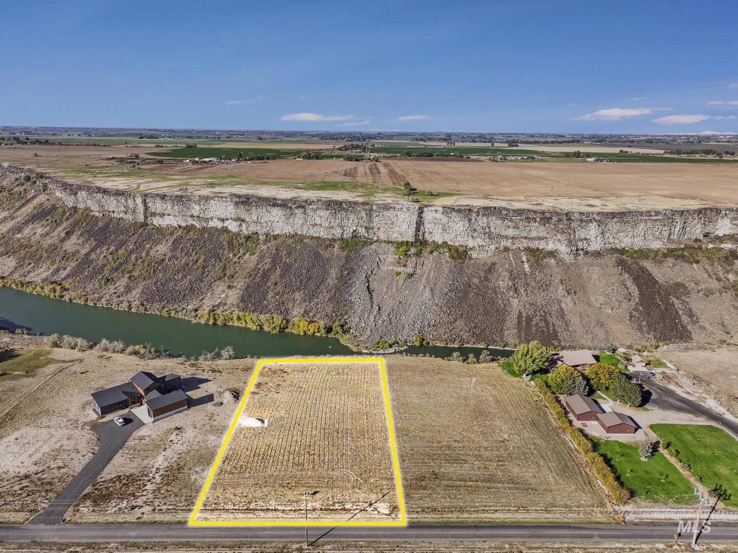 Incredible opportunity to build the home that fits your lifestyle on the incredible Snake River Canyon Rim! With NO CCR`s, water shares and POWER already in place.. this 1.94 acre building lot is prime real estate! Angle your home to have a view of the river and greenery, or face your home at the rim for a rugged landscape. The choice is yours! The county has already approved a 50 ft canyon rim building set back. Permitted building plans are also available for purchase, IF interested!