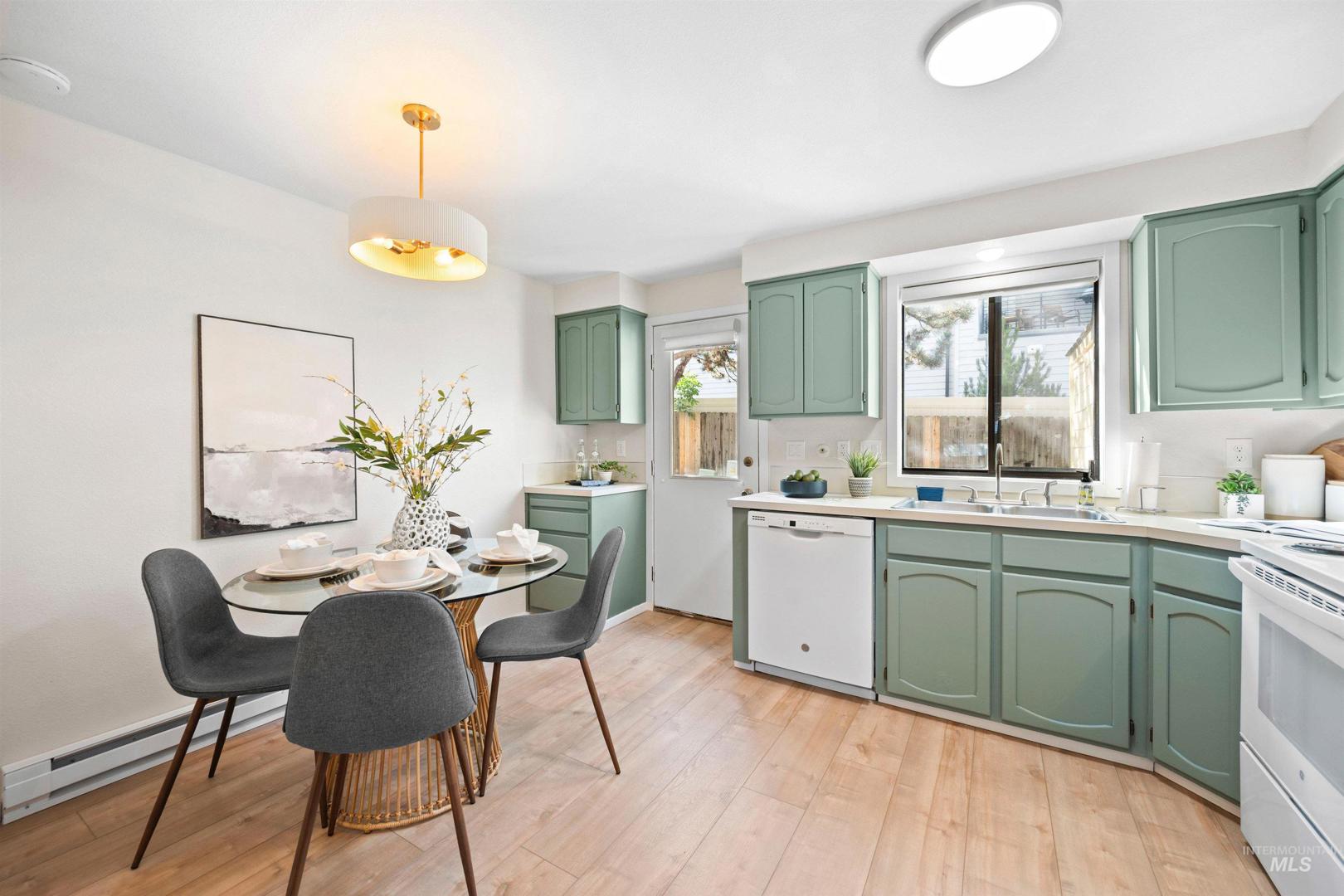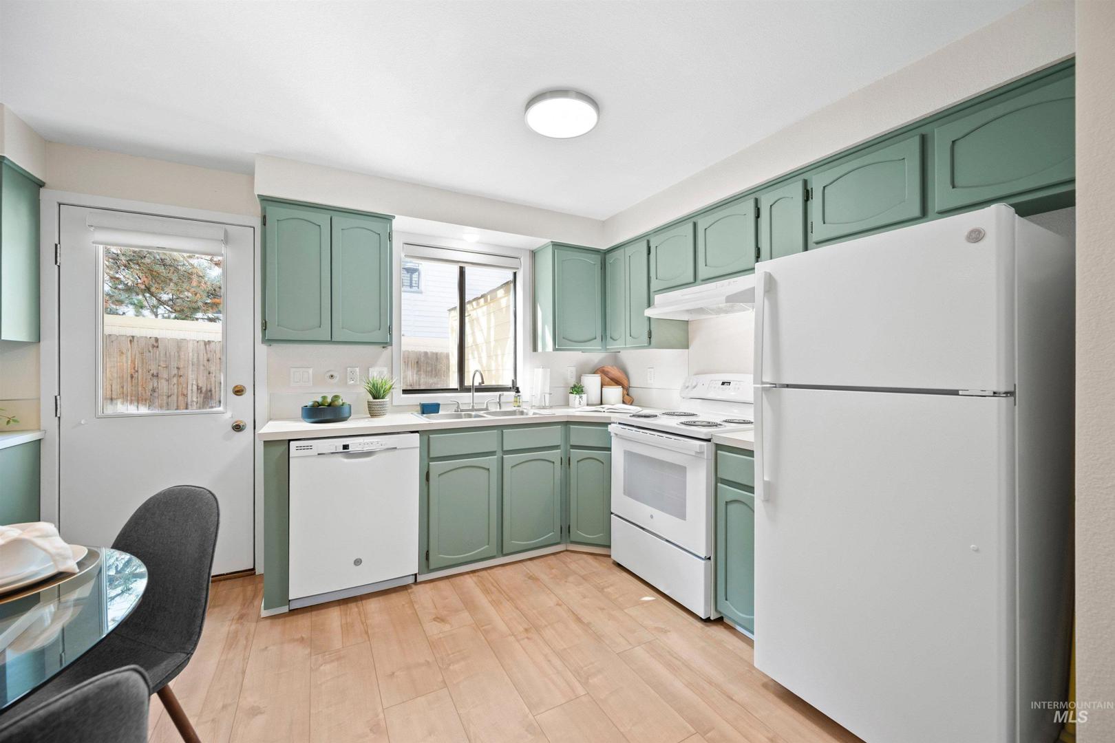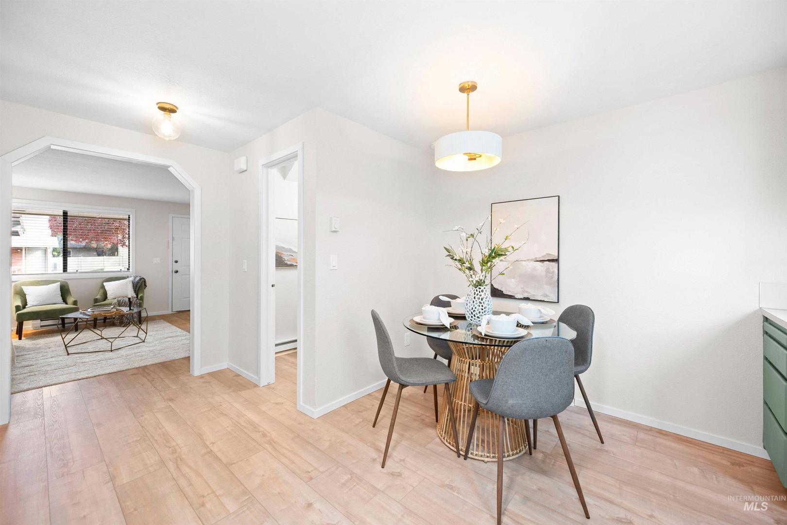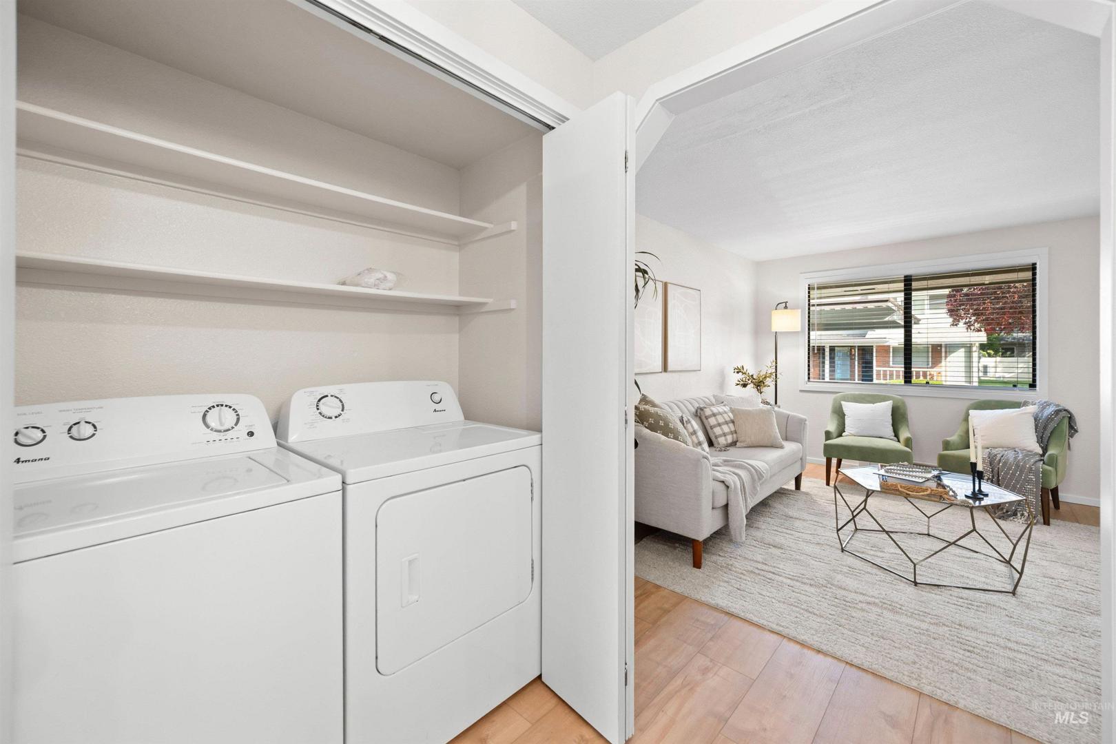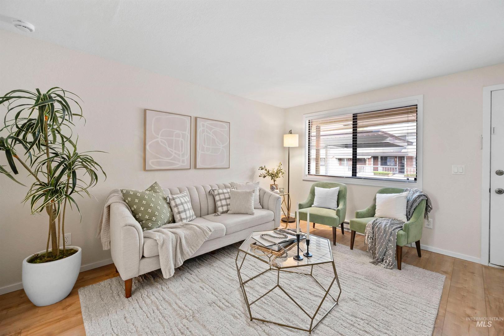 This thoughtfully updated townhome offers stylish, turnkey living in a well-situated Boise neighborhood. Every detail has been carefully curated and professionally completed—from brand-new flooring and fresh interior paint to updated doors, modern light fixtures, new blinds, and renovated bathrooms. The result is a fresh, clean interior that’s both functional and inviting. The home also includes a new refrigerator, washer, and dryer, making it truly move-in ready with all the essentials already in place. Enjoy the convenience of covered parking, plus six months of an additional dedicated parking space—a rare and valuable bonus. Situated near Shoshone Park, this home offers easy access to outdoor recreation and everyday conveniences. Enjoy a quick 7-minute drive to Boise State University, 10 minutes to downtown Boise, and seamless freeway access for commuting around the city. This light-filled home blends comfort, practicality, and value. Whether you`re a first-time buyer, downsizing, or looking for a low-maintenance investment, this home is an exceptional value and ready for its new owner.