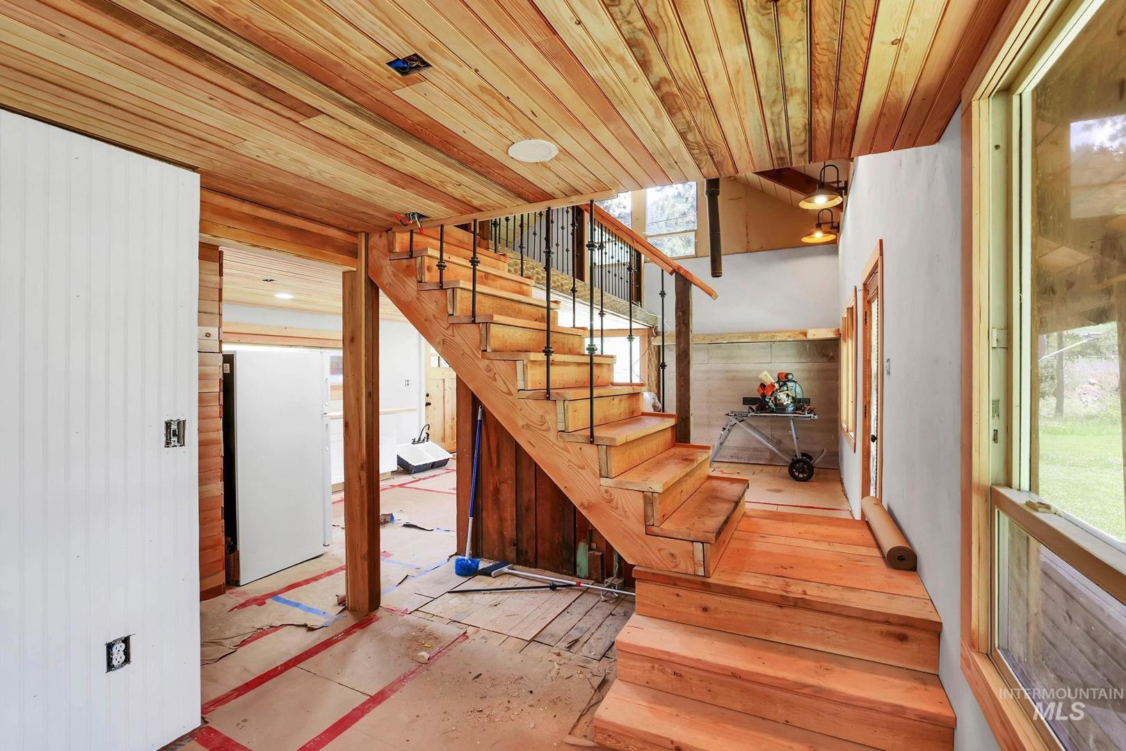 RIVER FRONTAGE-499 Feet of Little Salmon River Frontage! This charming cabin offers a truly unique setting along the pristine banks of the Little Salmon River. The home is partially renovated and ready for your personal finishing touches. The main level features an open-concept living, dining, and kitchen area, along with a full bathroom and an office space. Upstairs, you`ll find a spacious loft and a generously sized bedroom. An additional 1.5 bathrooms and a laundry room are located at the rear of the home with separate exterior access—perfect for guests or flexible use. Step outside to enjoy the expansive deck, complete with an outdoor kitchen and breathtaking river views. Whether you`re looking for a weekend getaway or a year-round residence, this property offers peace, privacy, and unlimited potential. There is also a small trailers with deck located on the property.