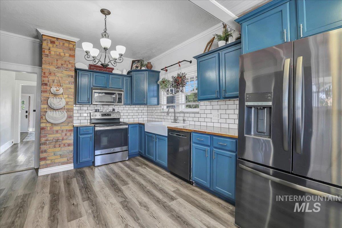 A Timeless Treasure in the heart of Kimberly! Step into a piece of history with this remodeled 1918 Americana Foursquare home where classic charm meets modern luxury. Enjoy the main floor as sunlight pours through large windows, illuminating the beautiful floors. The main level also has an effortless flow, with stunning kitchen, two bedrooms, a full bathroom, and a smart built-in kennel. Upstairs you will find three more bedrooms and full bathroom, while the fully finished basement is sure to impress with recreation room, separate office, laundry and full bathroom. The backyard has a wonderful deck to enjoy relaxing on with hookups for a spa, and fruit trees! Tucked in the backyard corner is a heated shop with electricity! Don`t miss your opportunity to enjoy this classic American home on nearly a half acre!