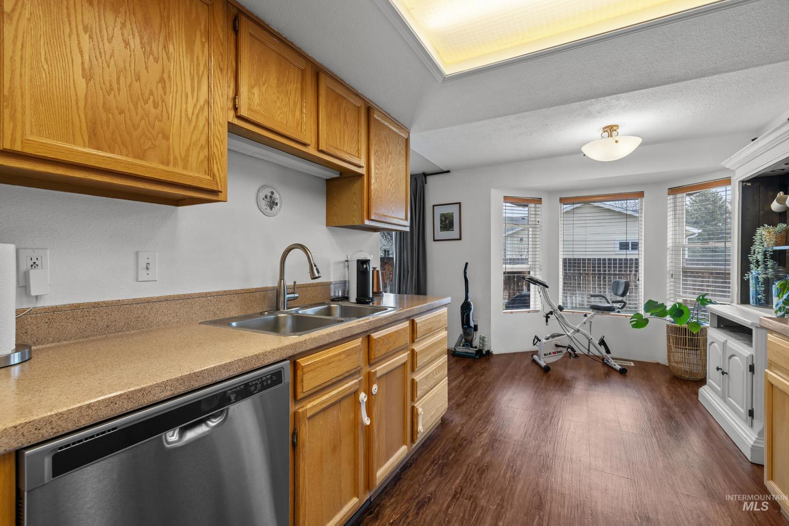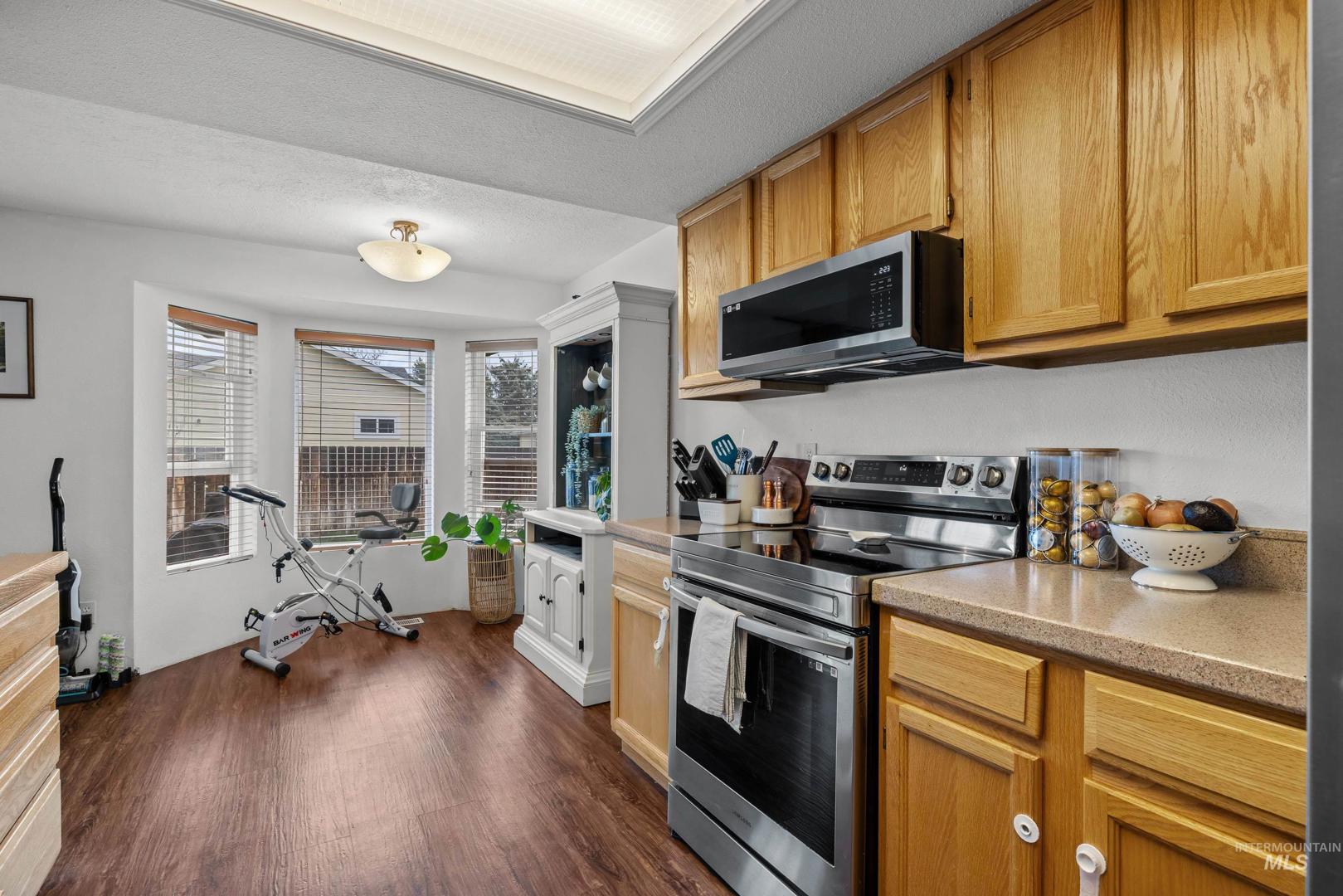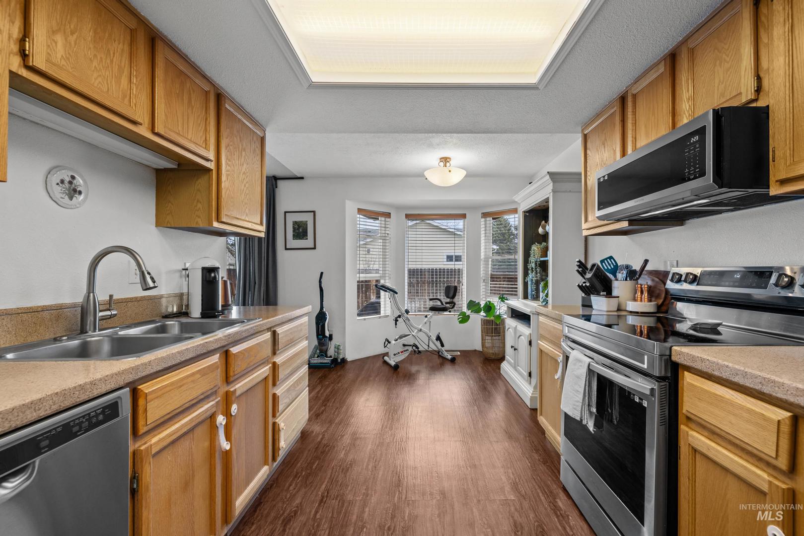 Step inside this beautifully cared for 3 bedroom home located in a quiet neighborhood near Legacy Park. The bright galley kitchen features a pantry, breakfast nook, and brand new appliances installed in November 2023. The comfortable layout flows into a versatile dining area that can double as a family room, office, or creative space. Recent updates include a new HVAC system, furnace, AC, and ductwork completed in June 2023, along with a new garage system and garbage disposal added in October 2025, and updated toilets in January 2025. Laminate flooring runs throughout for a clean, modern feel. Outside, enjoy a private fenced backyard with a patio, storage shed, and space for gardening or outdoor projects of your choice! This home combines comfort, value, and thoughtful upgrades in one inviting package. This is the home you’ve been waiting for, spacious, private, and ready to move in!