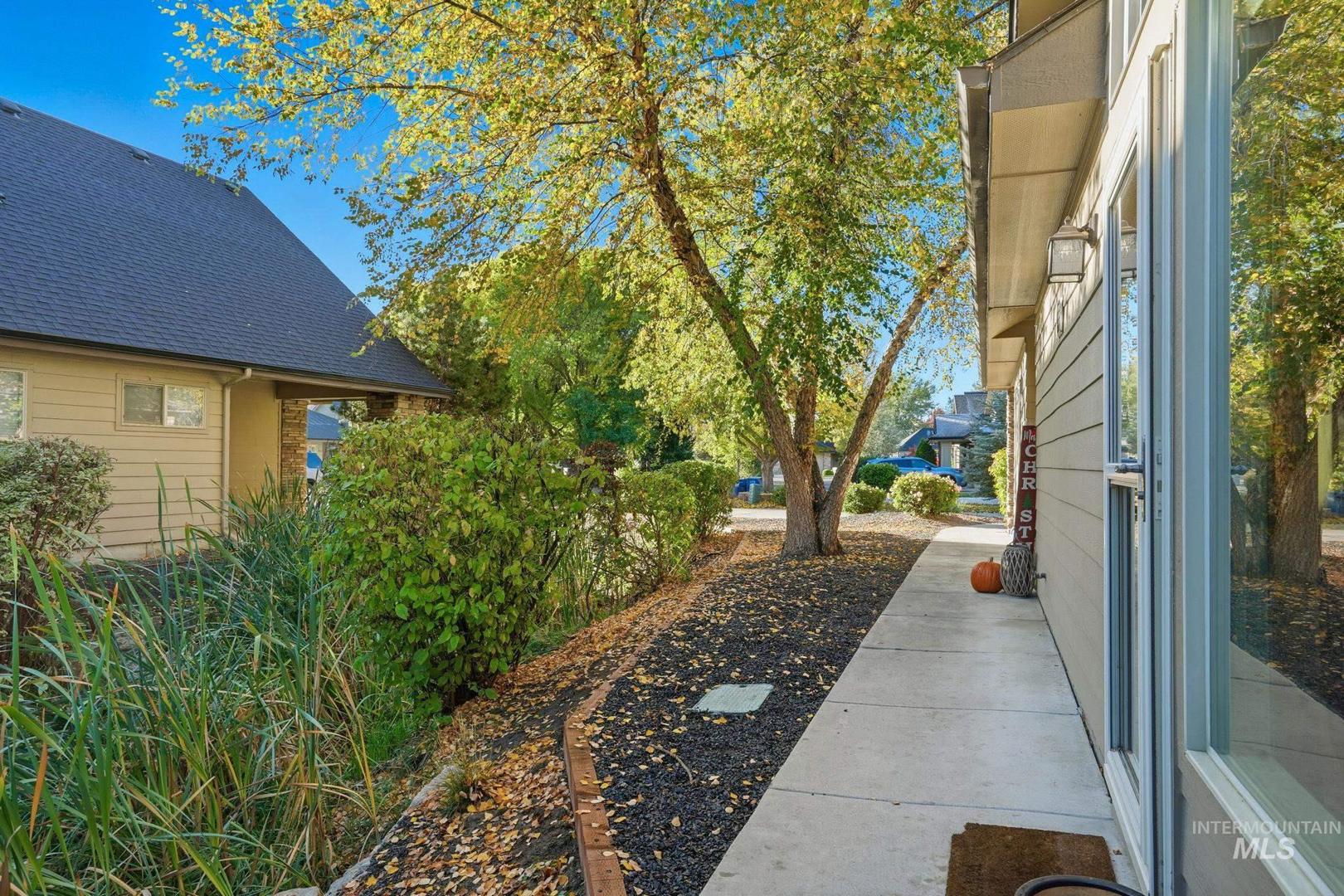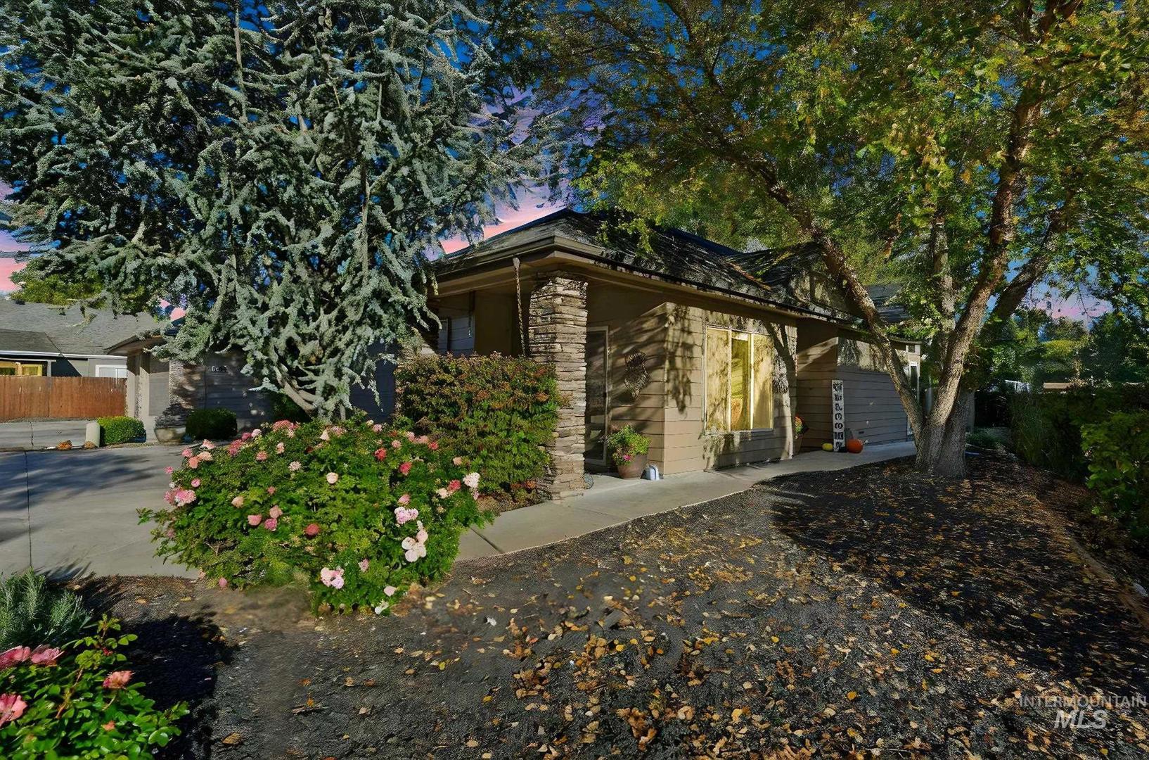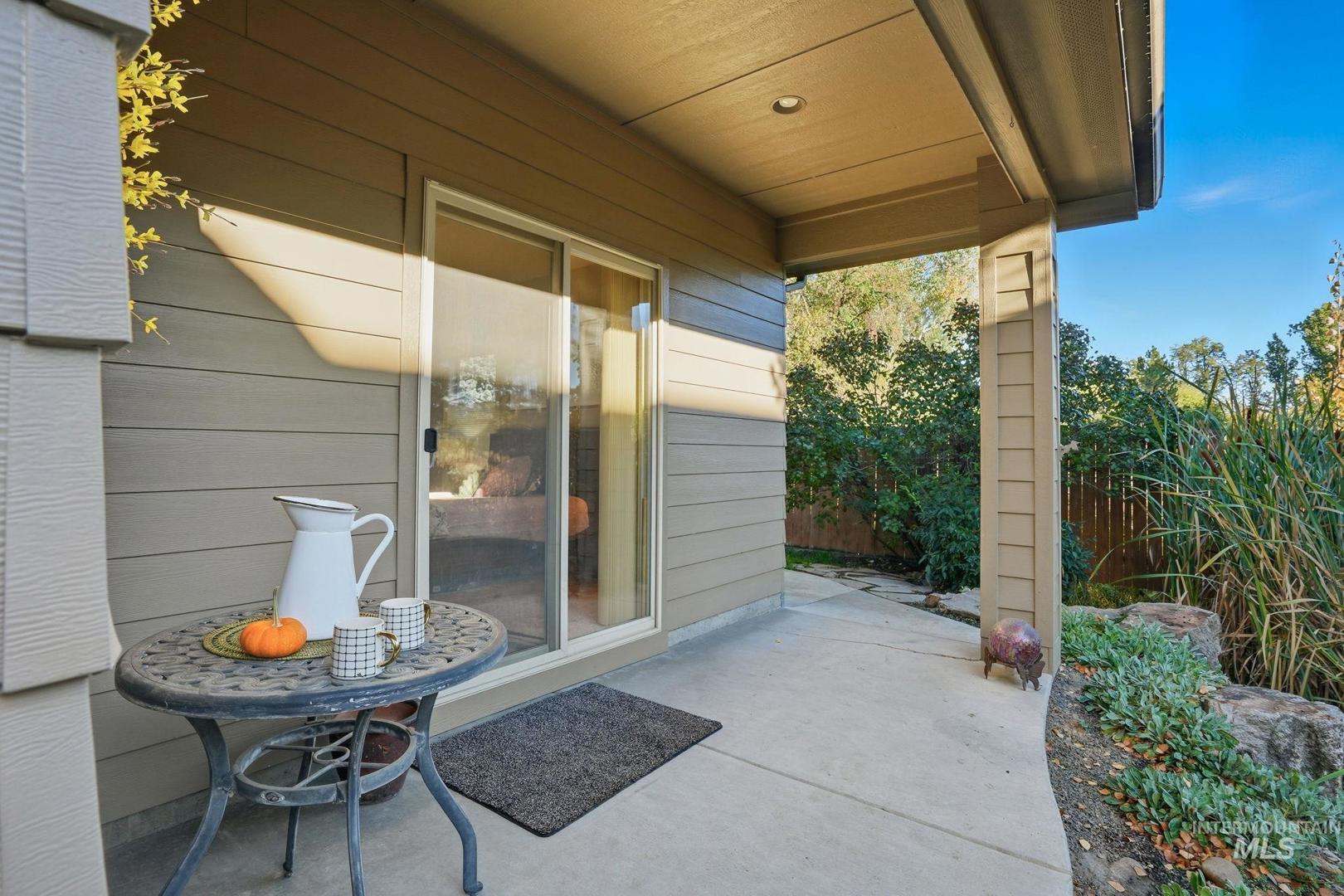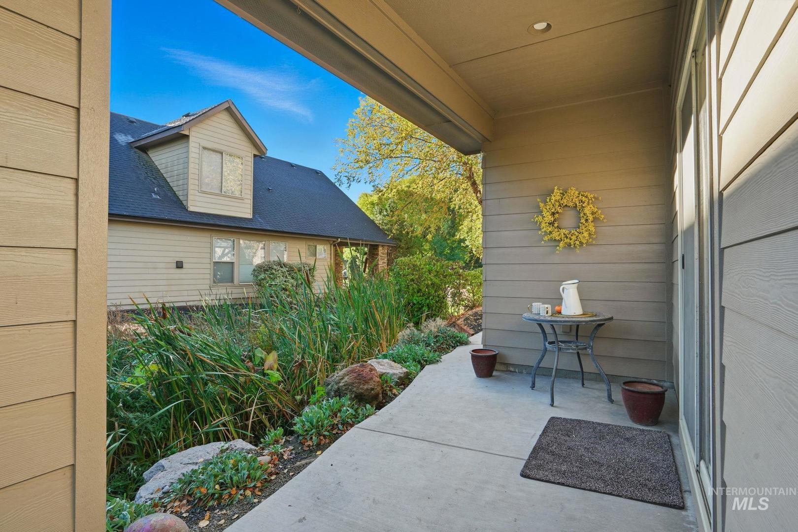 Discover the perfect balance of comfort, convenience, and craftsmanship in one of Boise’s most desirable pocket neighborhoods—Hazelbrook. Tucked away on a private road in a quiet cul-de-sac, this beautiful patio home offers the perfect blend of quality craftsmanship, thoughtful design, and easy living. Built by prestigious builder, Zach Evans, enjoy quick access to the Boise Greenbelt, Boise River, Garden City Library, shopping, dining, and is minutes from the foothills. This low-maintenance home features three inviting outdoor patios for morning coffee, entertaining, or quiet reflection. Inside, 9-foot ceilings and a vaulted great room create an open, airy atmosphere. The kitchen boasts a large island, granite countertops, tile backsplash, and stainless appliances, with tile floors extending through the kitchen, dining, hall, and main bath. The primary suite offers patio access, dual vanities, a soaking tub, separate shower, and 5`x10` walk-in closet. The third bedroom doubles as an office or den with its own private outdoor patio sitting area. Upgrades include Hunter Douglas top-down/bottom-up blinds, wood-wrapped windows, ceiling surround sound speakers, central vacuum, water softener plumbing, ceiling fans, LeafFilter gutters, and a finished garage with 8-foot door. With minimal lawn care and a peaceful common area backdrop, this home offers easy living without compromise.