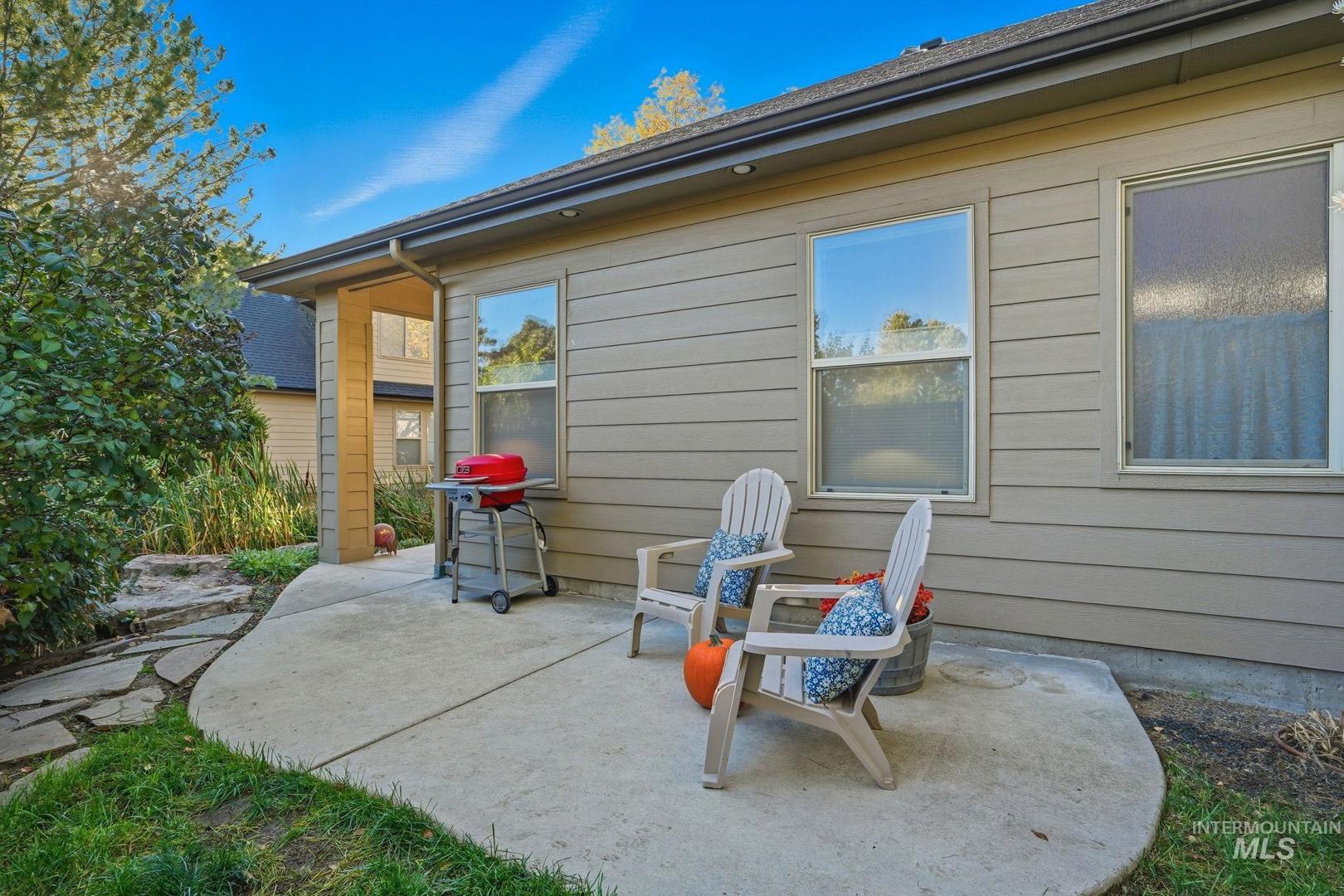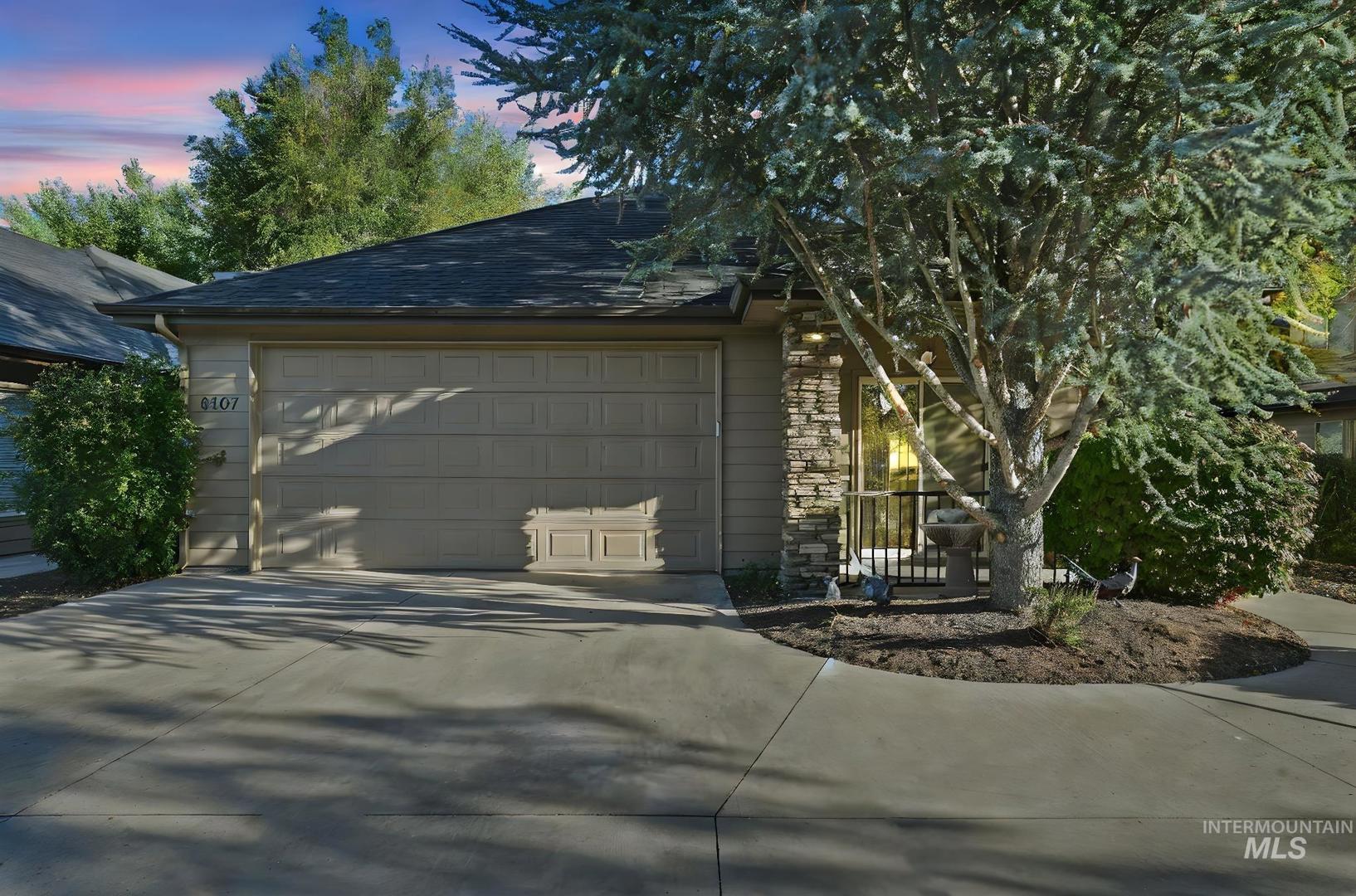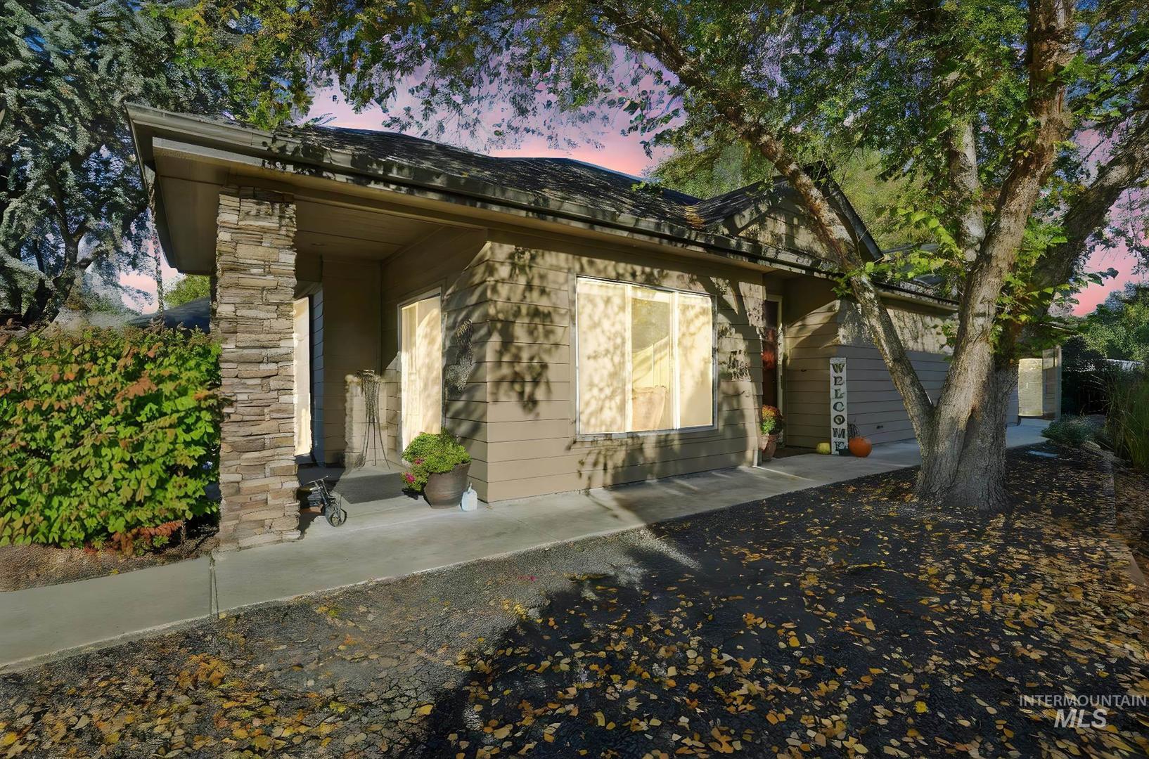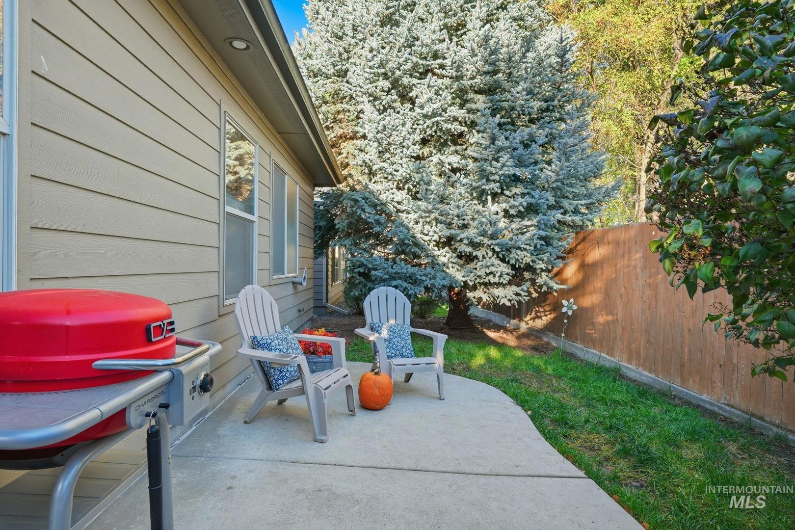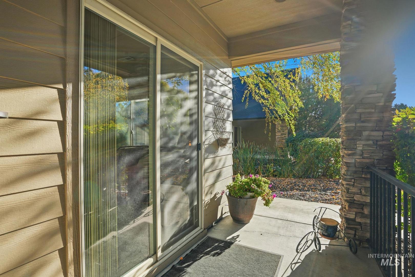 Discover the perfect balance of comfort, convenience, and craftsmanship in one of Boise’s most desirable pocket neighborhoods—Hazelbrook. Tucked away on a private road in a quiet cul-de-sac, this beautiful patio home offers the perfect blend of quality craftsmanship, thoughtful design, and easy living. Built by prestigious builder, Zach Evans, enjoy quick access to the Boise Greenbelt, Boise River, Garden City Library, shopping, dining, and is minutes from the foothills. This low-maintenance home features three inviting outdoor patios for morning coffee, entertaining, or quiet reflection. Inside, 9-foot ceilings and a vaulted great room create an open, airy atmosphere. The kitchen boasts a large island, granite countertops, tile backsplash, and stainless appliances, with tile floors extending through the kitchen, dining, hall, and main bath. The primary suite offers patio access, dual vanities, a soaking tub, separate shower, and 5`x10` walk-in closet. The third bedroom doubles as an office or den with its own private outdoor patio sitting area. Upgrades include Hunter Douglas top-down/bottom-up blinds, wood-wrapped windows, ceiling surround sound speakers, central vacuum, water softener plumbing, ceiling fans, LeafFilter gutters, and a finished garage with 8-foot door. With minimal lawn care and a peaceful common area backdrop, this home offers easy living without compromise.