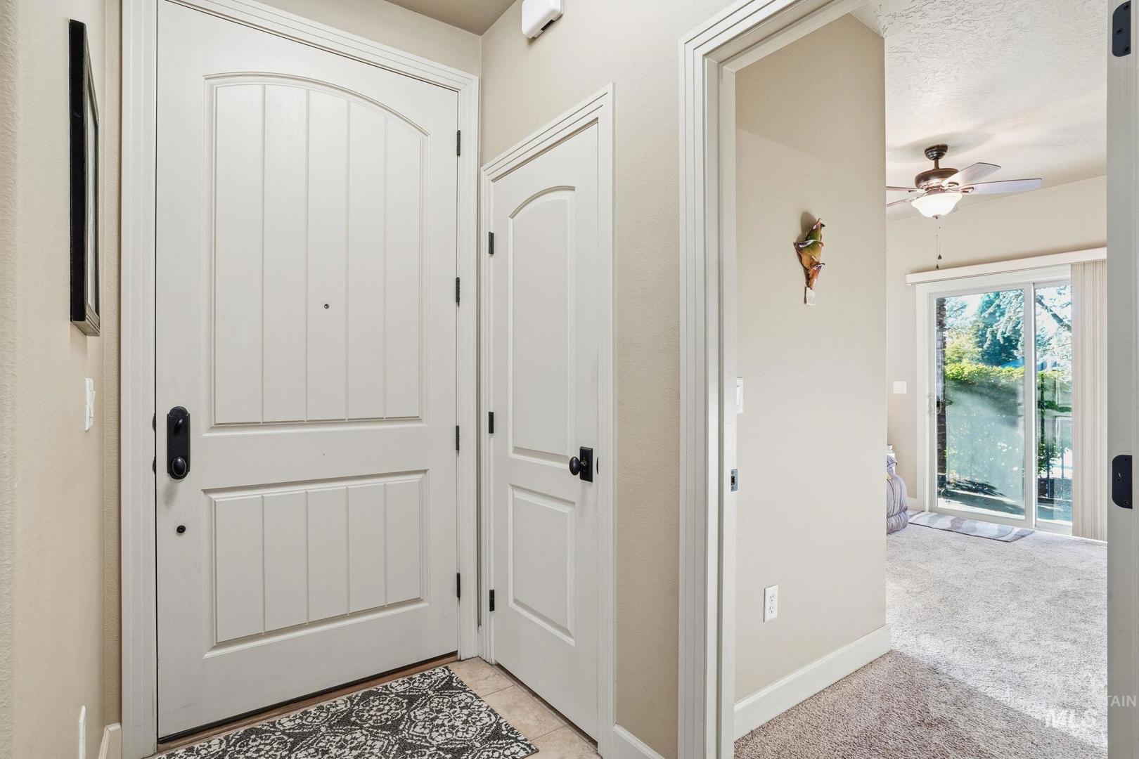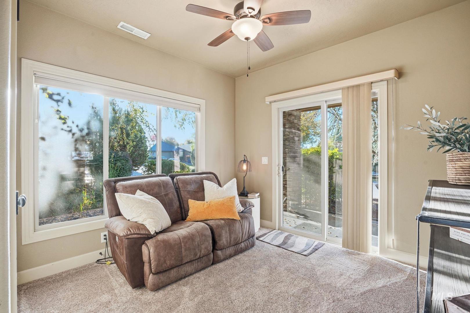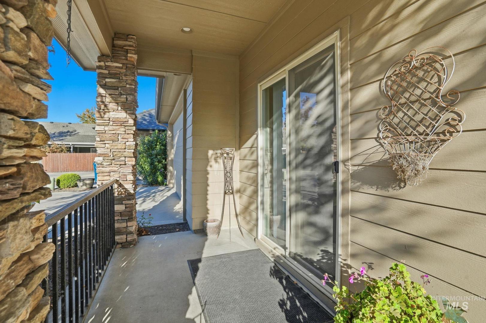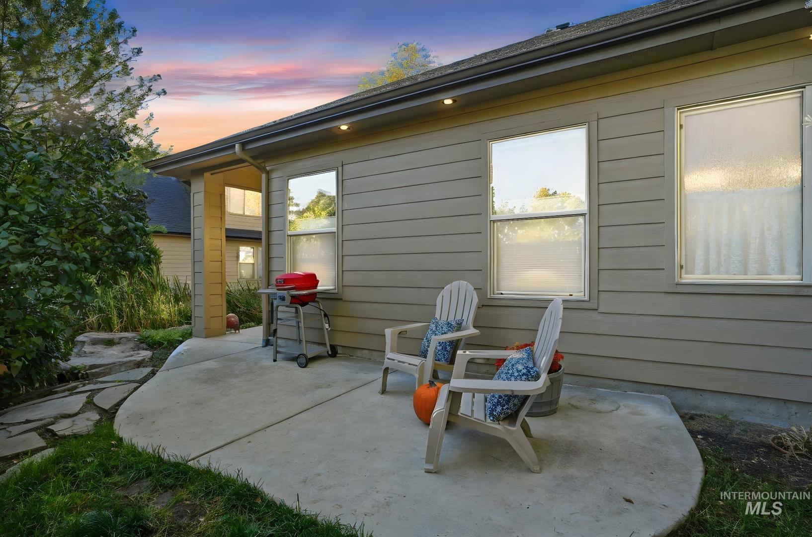 Discover the perfect balance of comfort, convenience, and craftsmanship in one of Boise’s most desirable pocket neighborhoods—Hazelbrook. Tucked away on a private road in a quiet cul-de-sac, this beautiful patio home offers the perfect blend of quality craftsmanship, thoughtful design, and easy living. Built by prestigious builder, Zach Evans, enjoy quick access to the Boise Greenbelt, Boise River, Garden City Library, shopping, dining, and is minutes from the foothills. This low-maintenance home features three inviting outdoor patios for morning coffee, entertaining, or quiet reflection. Inside, 9-foot ceilings and a vaulted great room create an open, airy atmosphere. The kitchen boasts a large island, granite countertops, tile backsplash, and stainless appliances, with tile floors extending through the kitchen, dining, hall, and main bath. The primary suite offers patio access, dual vanities, a soaking tub, separate shower, and 5`x10` walk-in closet. The third bedroom doubles as an office or den with its own private outdoor patio sitting area. Upgrades include Hunter Douglas top-down/bottom-up blinds, wood-wrapped windows, ceiling surround sound speakers, central vacuum, water softener plumbing, ceiling fans, LeafFilter gutters, and a finished garage with 8-foot door. With minimal lawn care and a peaceful common area backdrop, this home offers easy living without compromise.