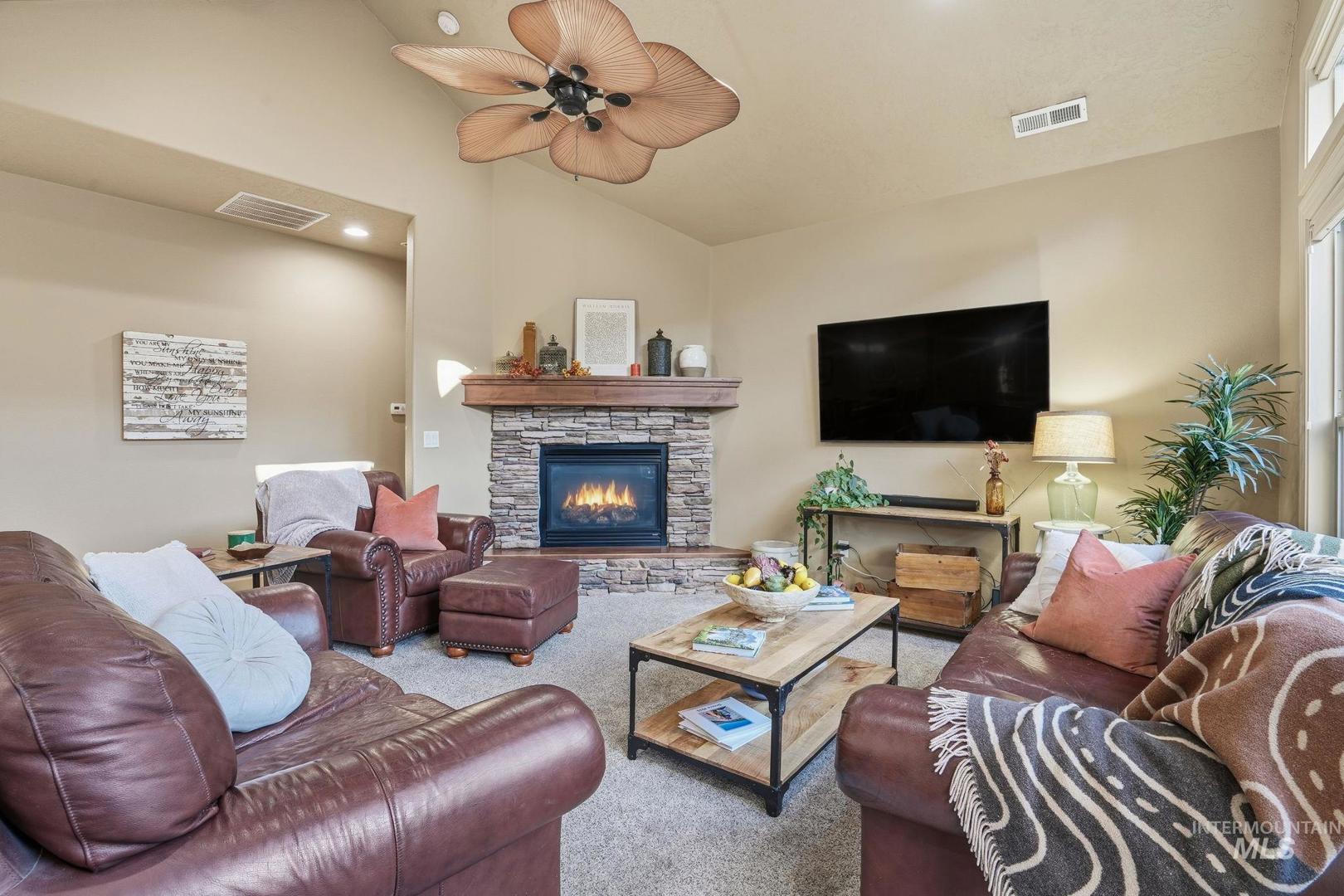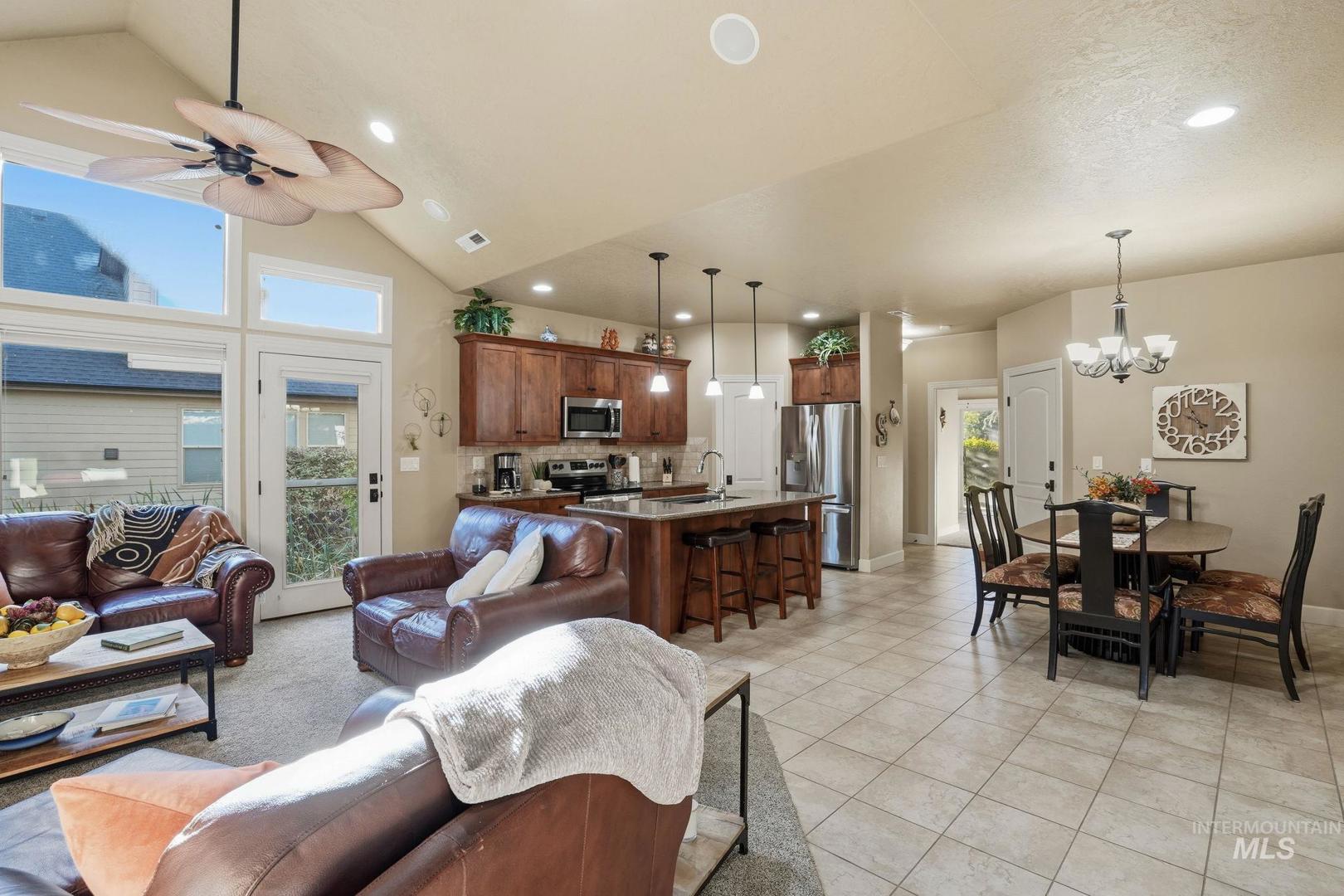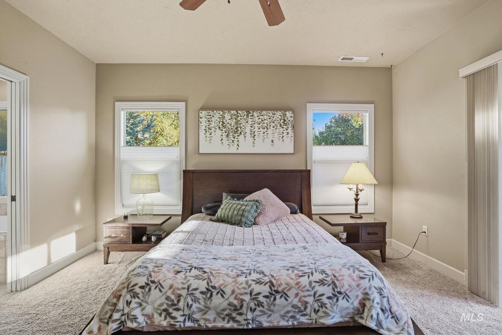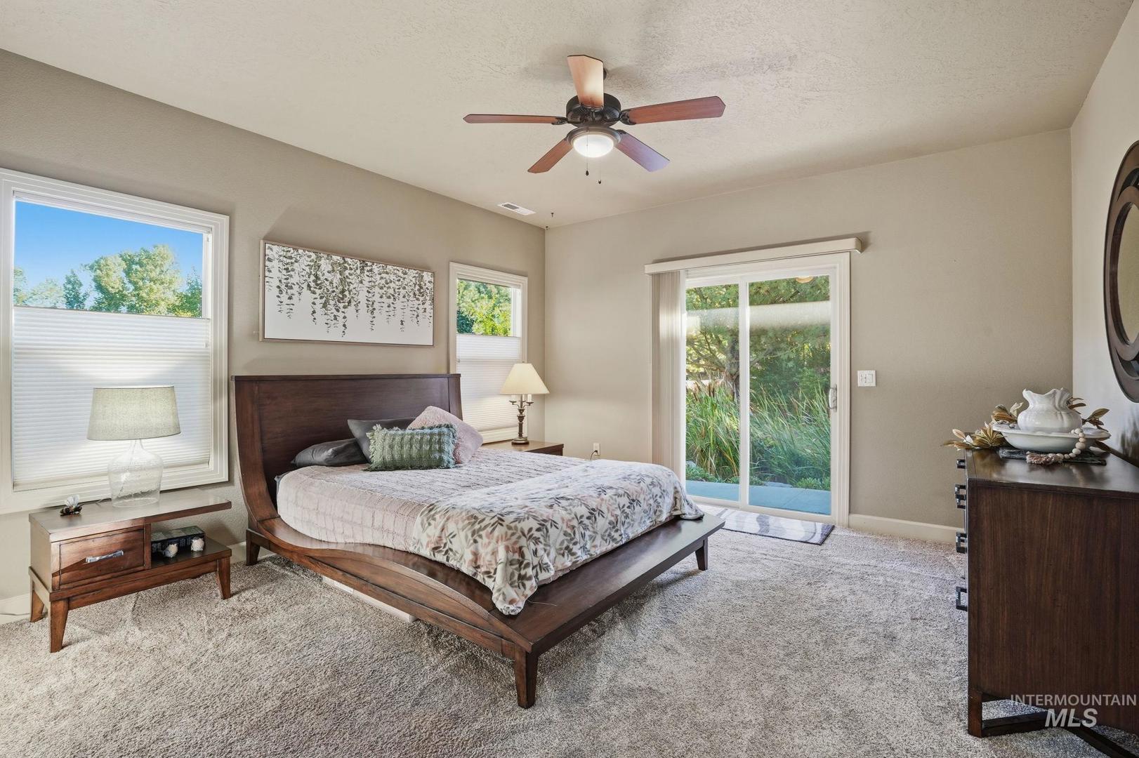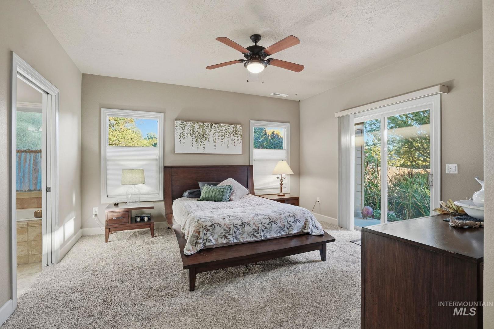 Discover the perfect balance of comfort, convenience, and craftsmanship in one of Boise’s most desirable pocket neighborhoods—Hazelbrook. Tucked away on a private road in a quiet cul-de-sac, this beautiful patio home offers the perfect blend of quality craftsmanship, thoughtful design, and easy living. Built by prestigious builder, Zach Evans, enjoy quick access to the Boise Greenbelt, Boise River, Garden City Library, shopping, dining, and is minutes from the foothills. This low-maintenance home features three inviting outdoor patios for morning coffee, entertaining, or quiet reflection. Inside, 9-foot ceilings and a vaulted great room create an open, airy atmosphere. The kitchen boasts a large island, granite countertops, tile backsplash, and stainless appliances, with tile floors extending through the kitchen, dining, hall, and main bath. The primary suite offers patio access, dual vanities, a soaking tub, separate shower, and 5`x10` walk-in closet. The third bedroom doubles as an office or den with its own private outdoor patio sitting area. Upgrades include Hunter Douglas top-down/bottom-up blinds, wood-wrapped windows, ceiling surround sound speakers, central vacuum, water softener plumbing, ceiling fans, LeafFilter gutters, and a finished garage with 8-foot door. With minimal lawn care and a peaceful common area backdrop, this home offers easy living without compromise.