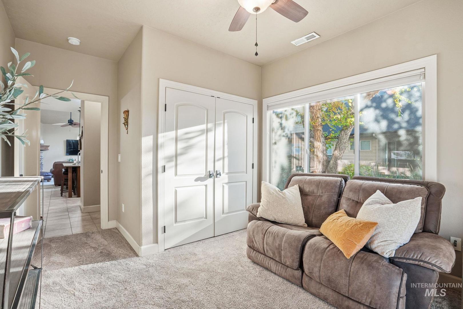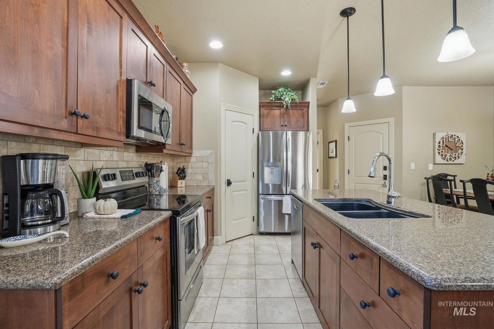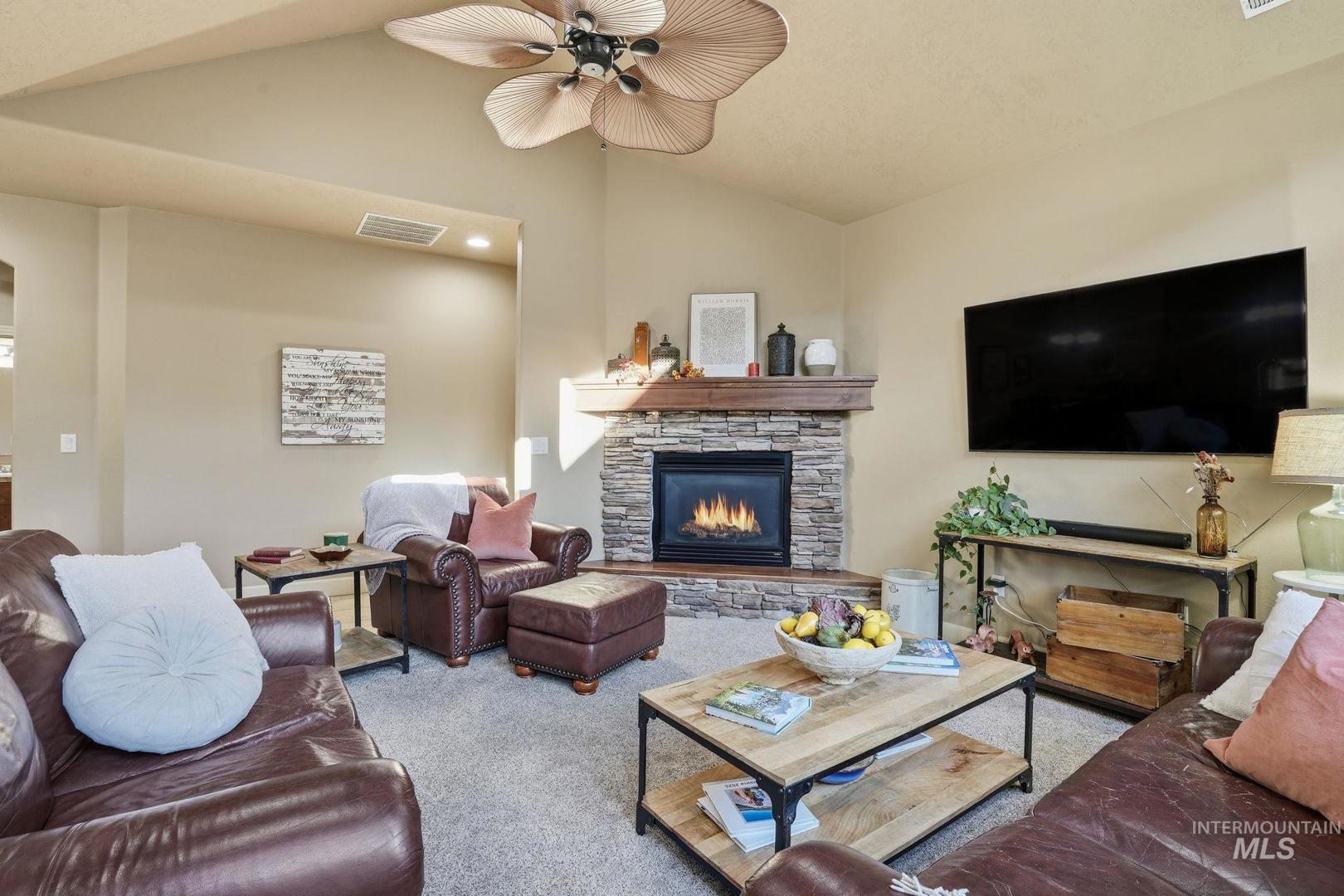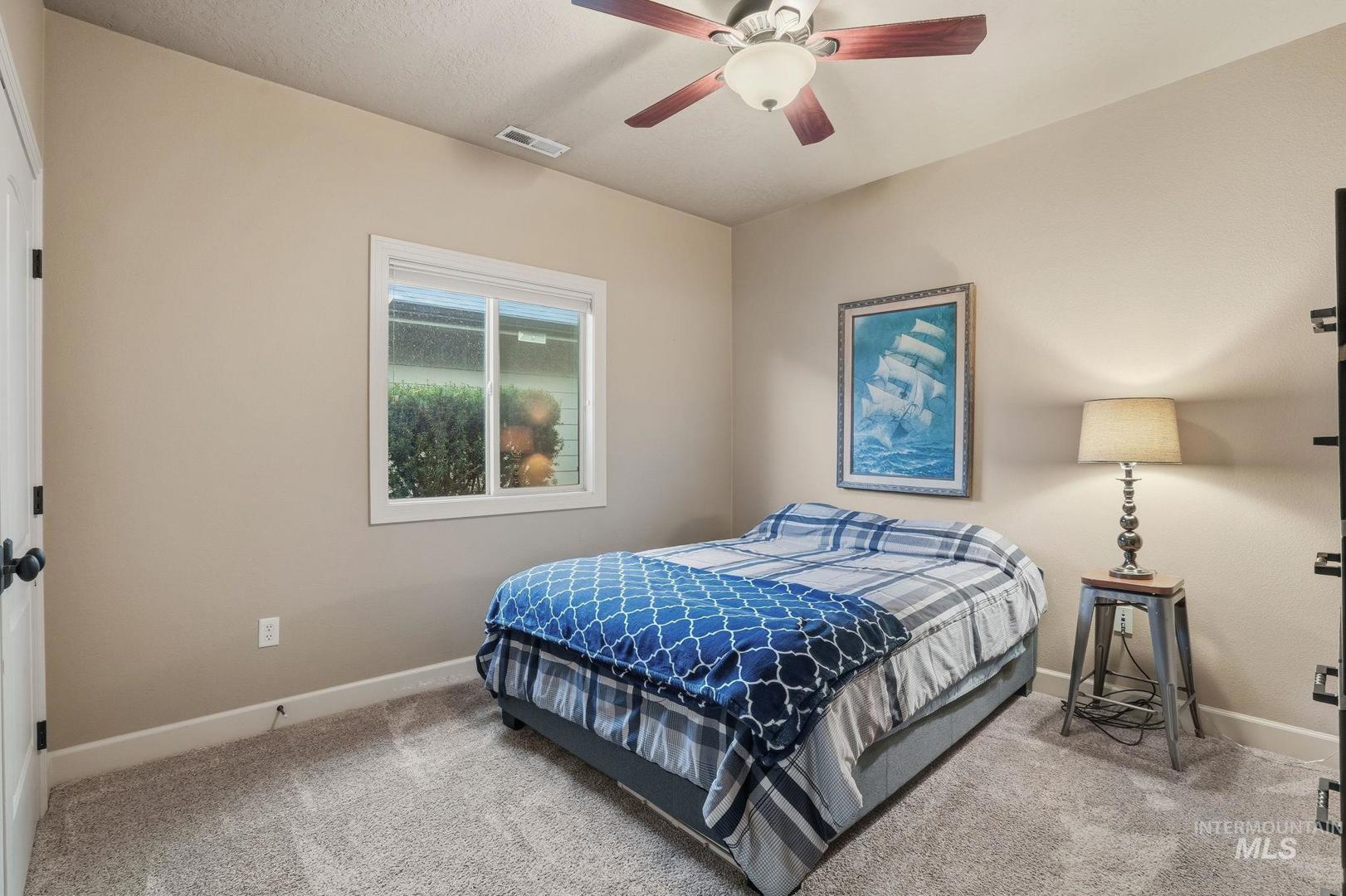Discover the perfect balance of comfort, convenience, and craftsmanship in one of Boise’s most desirable pocket neighborhoods—Hazelbrook. Tucked away on a private road in a quiet cul-de-sac, this beautiful patio home offers the perfect blend of quality craftsmanship, thoughtful design, and easy living. Built by prestigious builder, Zach Evans, enjoy quick access to the Boise Greenbelt, Boise River, Garden City Library, shopping, dining, and is minutes from the foothills. This low-maintenance home features three inviting outdoor patios for morning coffee, entertaining, or quiet reflection. Inside, 9-foot ceilings and a vaulted great room create an open, airy atmosphere. The kitchen boasts a large island, granite countertops, tile backsplash, and stainless appliances, with tile floors extending through the kitchen, dining, hall, and main bath. The primary suite offers patio access, dual vanities, a soaking tub, separate shower, and 5`x10` walk-in closet. The third bedroom doubles as an office or den with its own private outdoor patio sitting area. Upgrades include Hunter Douglas top-down/bottom-up blinds, wood-wrapped windows, ceiling surround sound speakers, central vacuum, water softener plumbing, ceiling fans, LeafFilter gutters, and a finished garage with 8-foot door. With minimal lawn care and a peaceful common area backdrop, this home offers easy living without compromise.