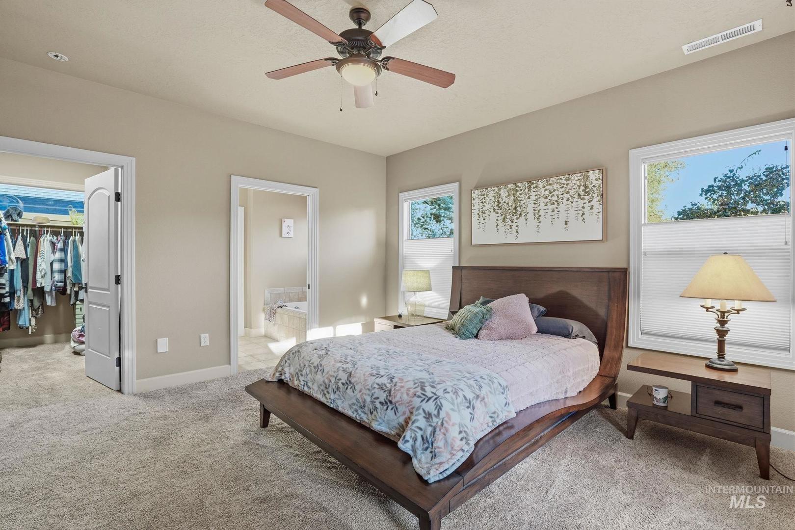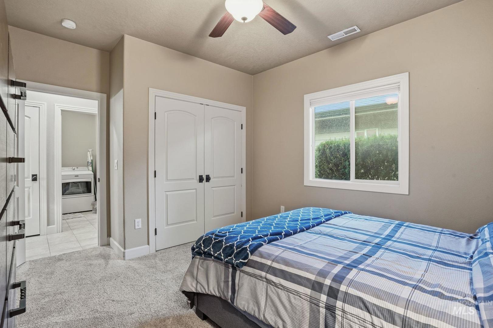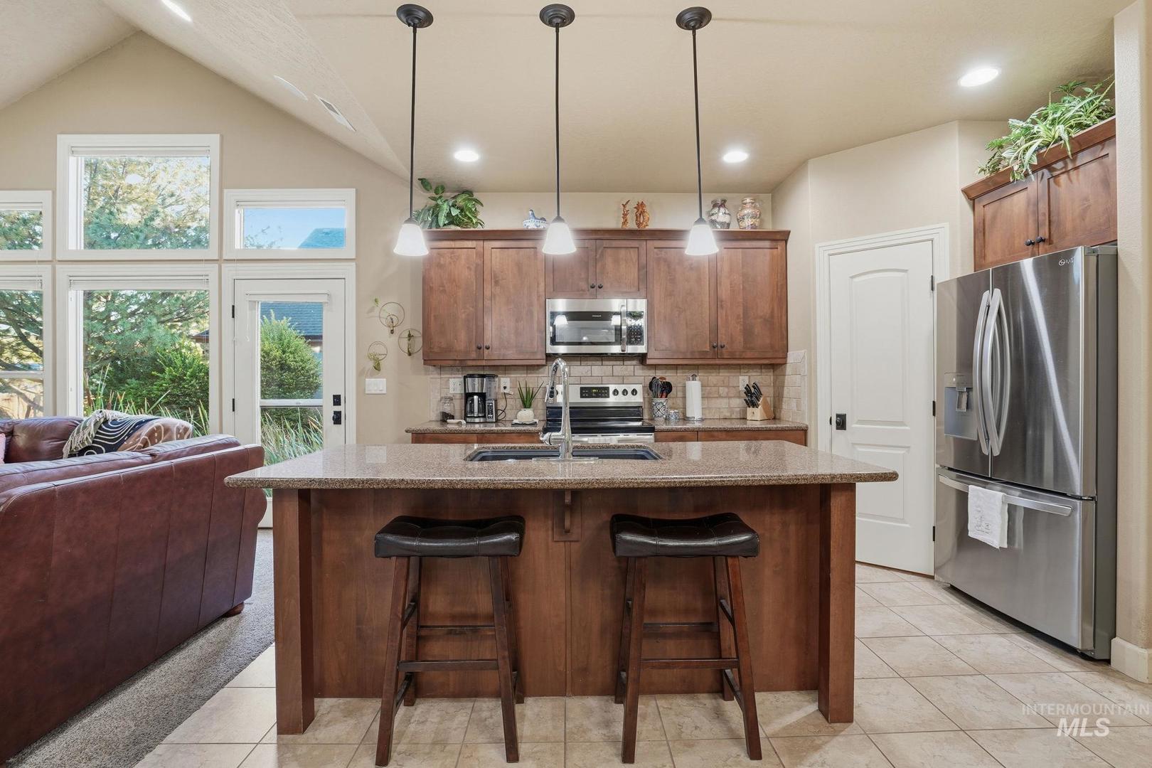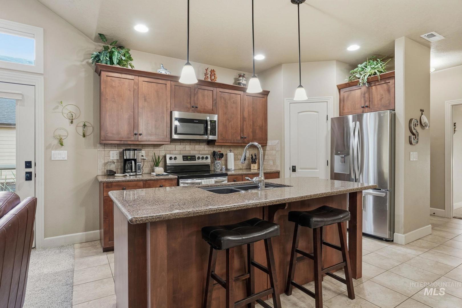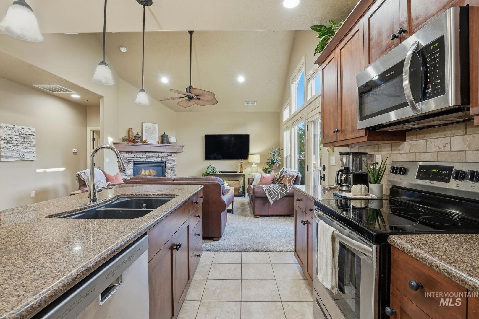 Discover the perfect balance of comfort, convenience, and craftsmanship in one of Boise’s most desirable pocket neighborhoods—Hazelbrook. Tucked away on a private road in a quiet cul-de-sac, this beautiful patio home offers the perfect blend of quality craftsmanship, thoughtful design, and easy living. Built by prestigious builder, Zach Evans, enjoy quick access to the Boise Greenbelt, Boise River, Garden City Library, shopping, dining, and is minutes from the foothills. This low-maintenance home features three inviting outdoor patios for morning coffee, entertaining, or quiet reflection. Inside, 9-foot ceilings and a vaulted great room create an open, airy atmosphere. The kitchen boasts a large island, granite countertops, tile backsplash, and stainless appliances, with tile floors extending through the kitchen, dining, hall, and main bath. The primary suite offers patio access, dual vanities, a soaking tub, separate shower, and 5`x10` walk-in closet. The third bedroom doubles as an office or den with its own private outdoor patio sitting area. Upgrades include Hunter Douglas top-down/bottom-up blinds, wood-wrapped windows, ceiling surround sound speakers, central vacuum, water softener plumbing, ceiling fans, LeafFilter gutters, and a finished garage with 8-foot door. With minimal lawn care and a peaceful common area backdrop, this home offers easy living without compromise.