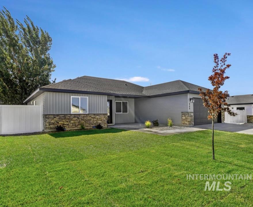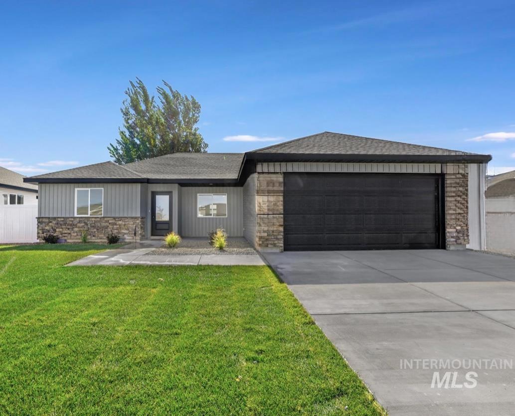 This beautifully designed home, built by CA Homes, Parade Winner, Magic Valley Builder`s Parade of Homes, 2023, 2024, 2025 and offers an open-concept design with vaulted ceilings, 4 bedrooms, 2 baths, and 1482 sqft., of living space. The home is thoughtfully appointed with quartz countertops, locally made soft-close cabinets, luxury vinyl plank flooring, and plush carpeting. The kitchen features a four-burner gas cooktop with a griddle and there is plenty of storage throughout the home. In addition, enjoy modern elegance from Pfister matte black plumbing fixtures throughout. The property is light and bright, and the 2-car garage is finished with baseboards! Bonus, front & rear sprinkler & Sod and vinyl fencing included. Discover your dream home in Stoney Ridge Subdivision, Jerome, Idaho! **Images reflect a similar past build** BTVAI