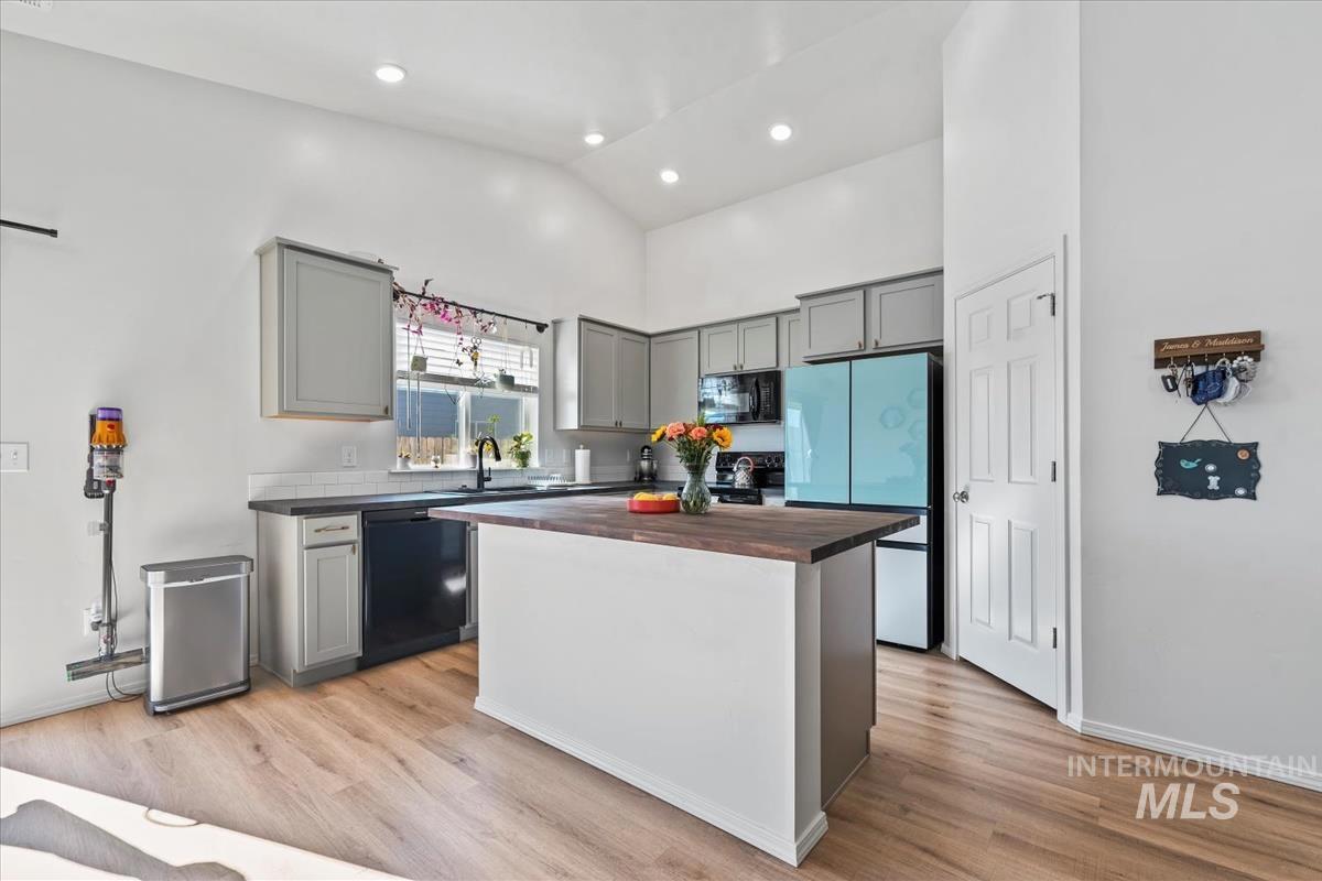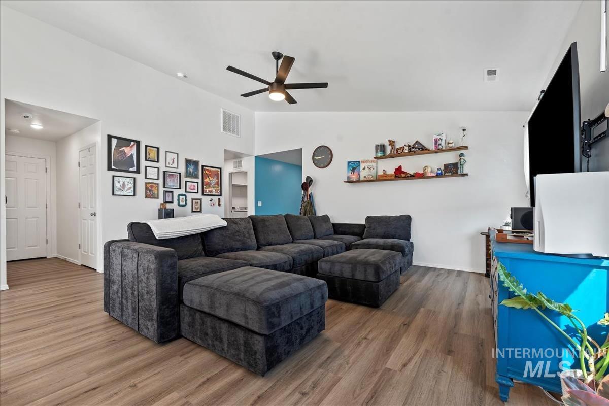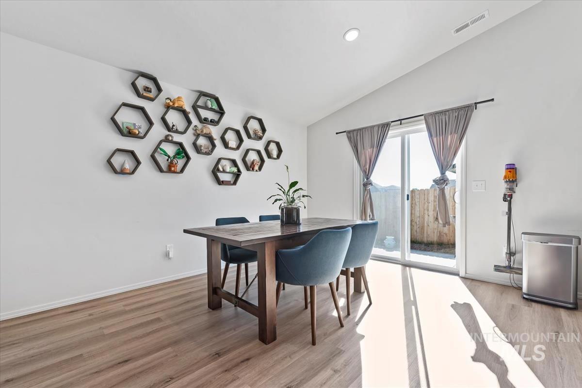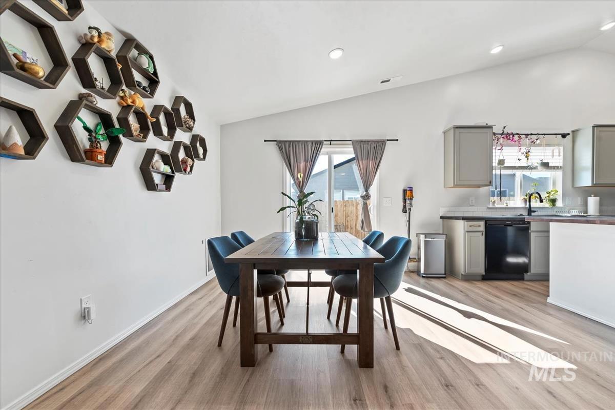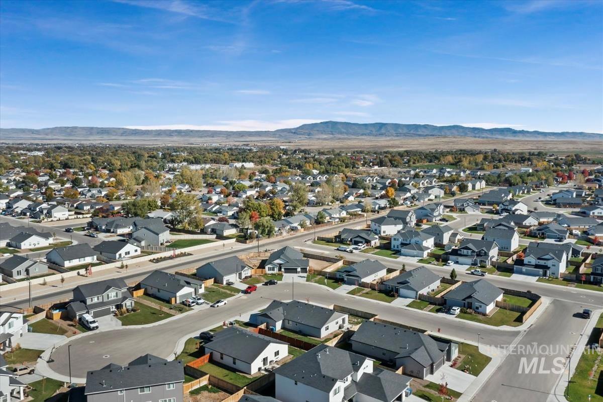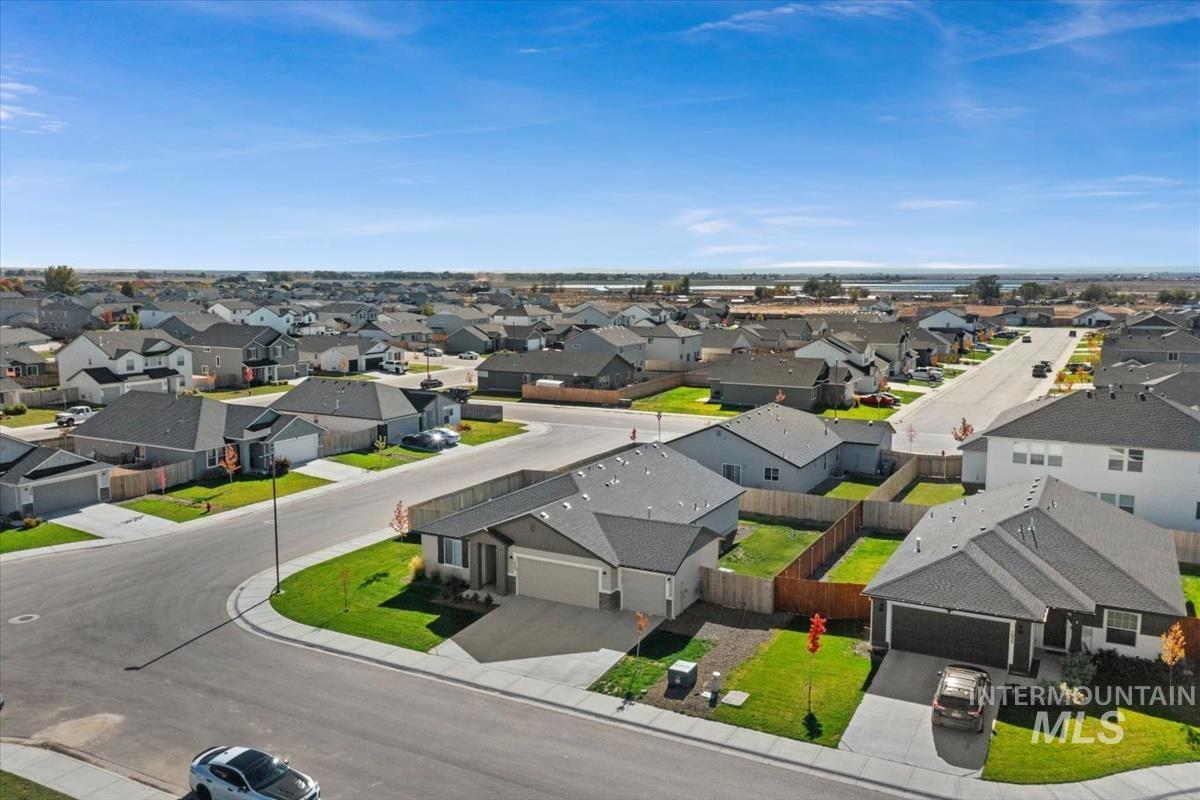 Welcome to this stunning 4-bedroom, 2-bath home perfectly situated on a corner lot near a cul-de-sac. Featuring vaulted ceilings and an open-concept floor plan, this home offers both comfort and style. The kitchen boasts a beautifully accented upgraded wooden countertop island, upgraded light fixtures throughout, upgraded kitchen pulls and plenty of space for entertaining. The primary suite includes a large walk-in closet with built-in shelving, and the ensuite bathroom offers dual sinks and a spacious vanity. Enjoy the outdoors in your fully fenced backyard, perfect for gatherings, pets, or simply relaxing in privacy. Additional features include a three-car garage and breathtaking mountain views—all while being tucked away from highway noise. Conveniently located within city limits, this home is just a quick 15-minute drive to MHAFB, close to shopping, and only 10 minutes from I-84. Don’t miss your chance to call this gorgeous property home!