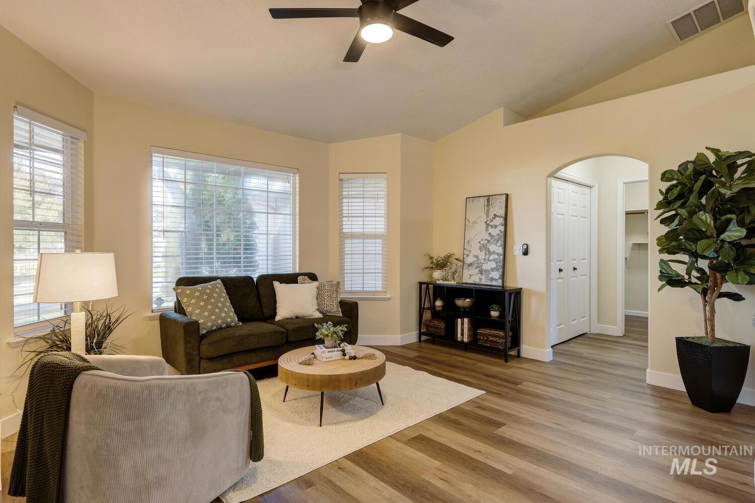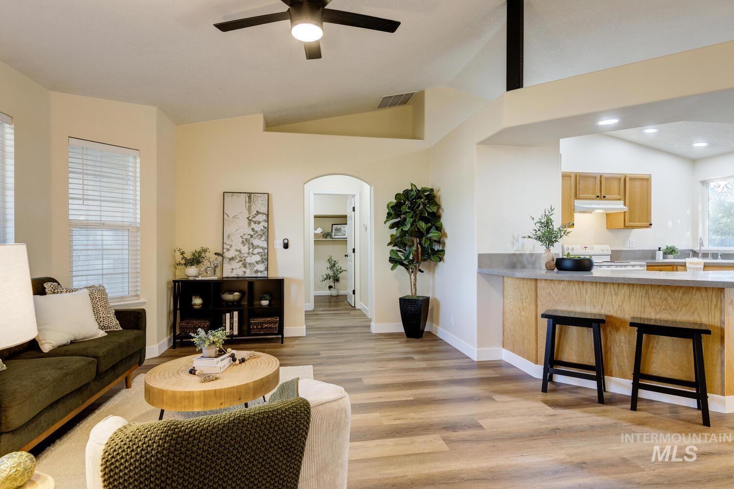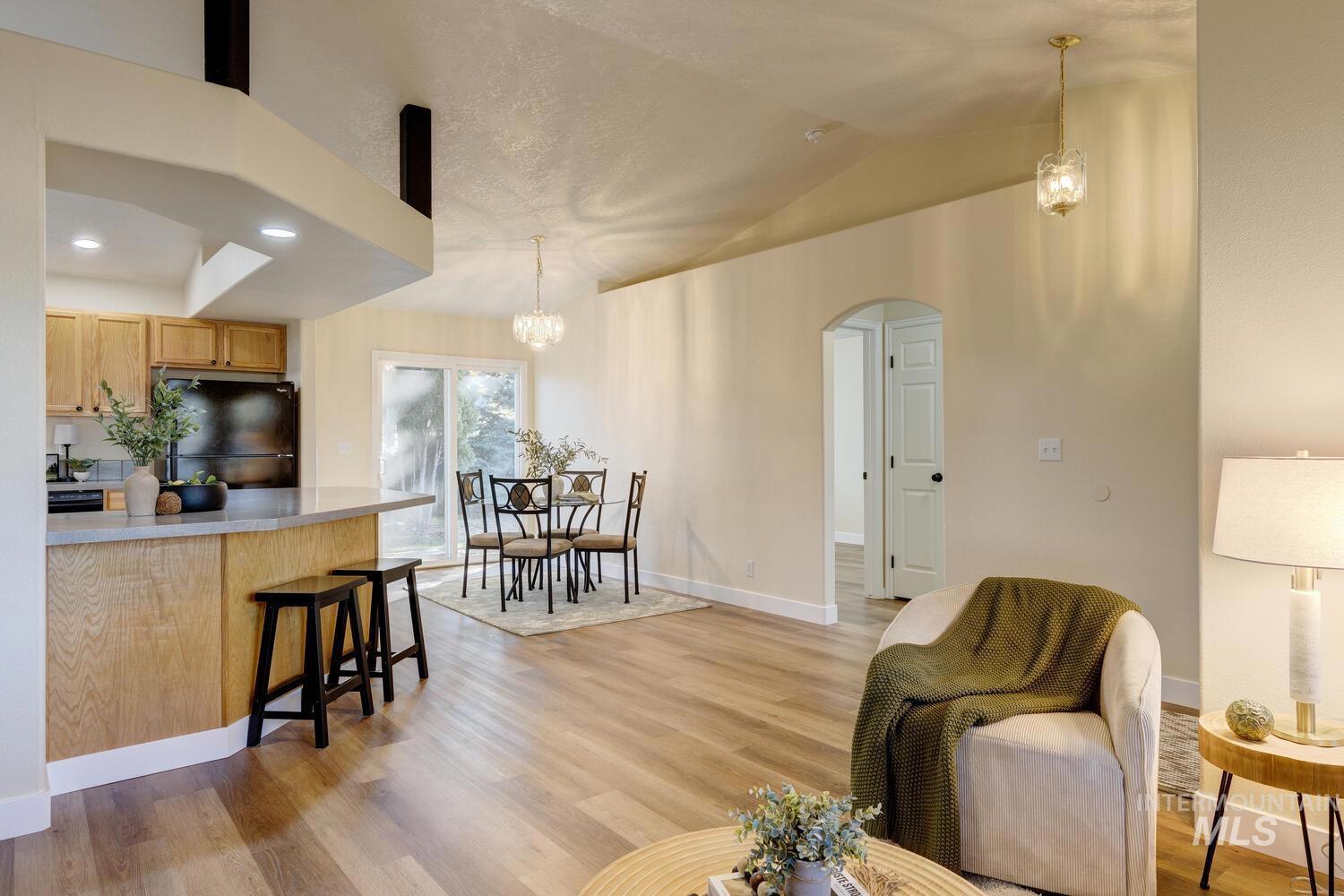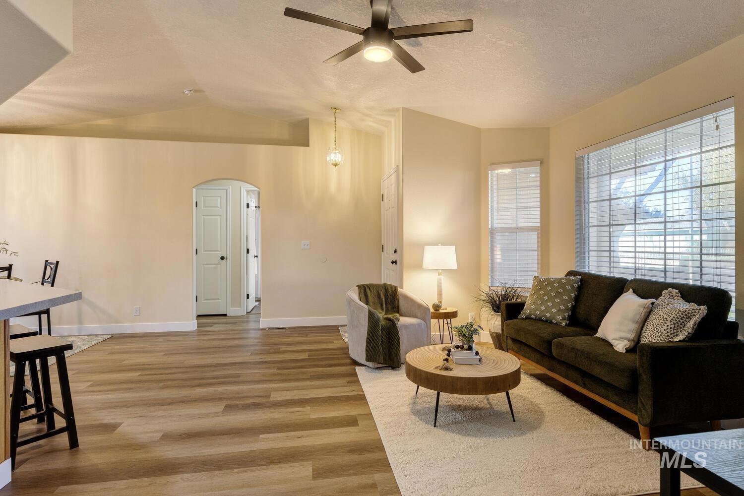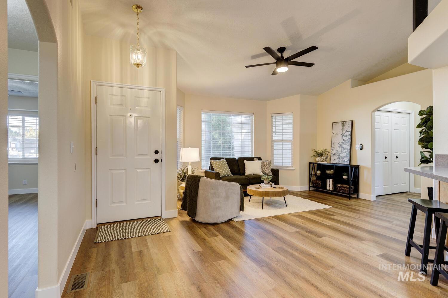 This home is so adorable and clean!! It feels so warm and open the minute you walk through the front door! Home has all new flooring, interior and exterior paint, toilets, some lights, hardware, new HVAC in 2024, newer dishwasher, & all new trim work. The living room/kitchen area has vaulted ceilings giving it a big open feeling. Lots and lots of storage in this home. Master has a big walk-in closet. Kitchen has a walk-in pantry & a nice little breakfast bar plus comes with a newer fridge. You will love the mature trees in the back yard which is so secluded & quiet. Great location for schools and all shopping needs. Great little parks all around this area. Do not miss out on this little GEM!!