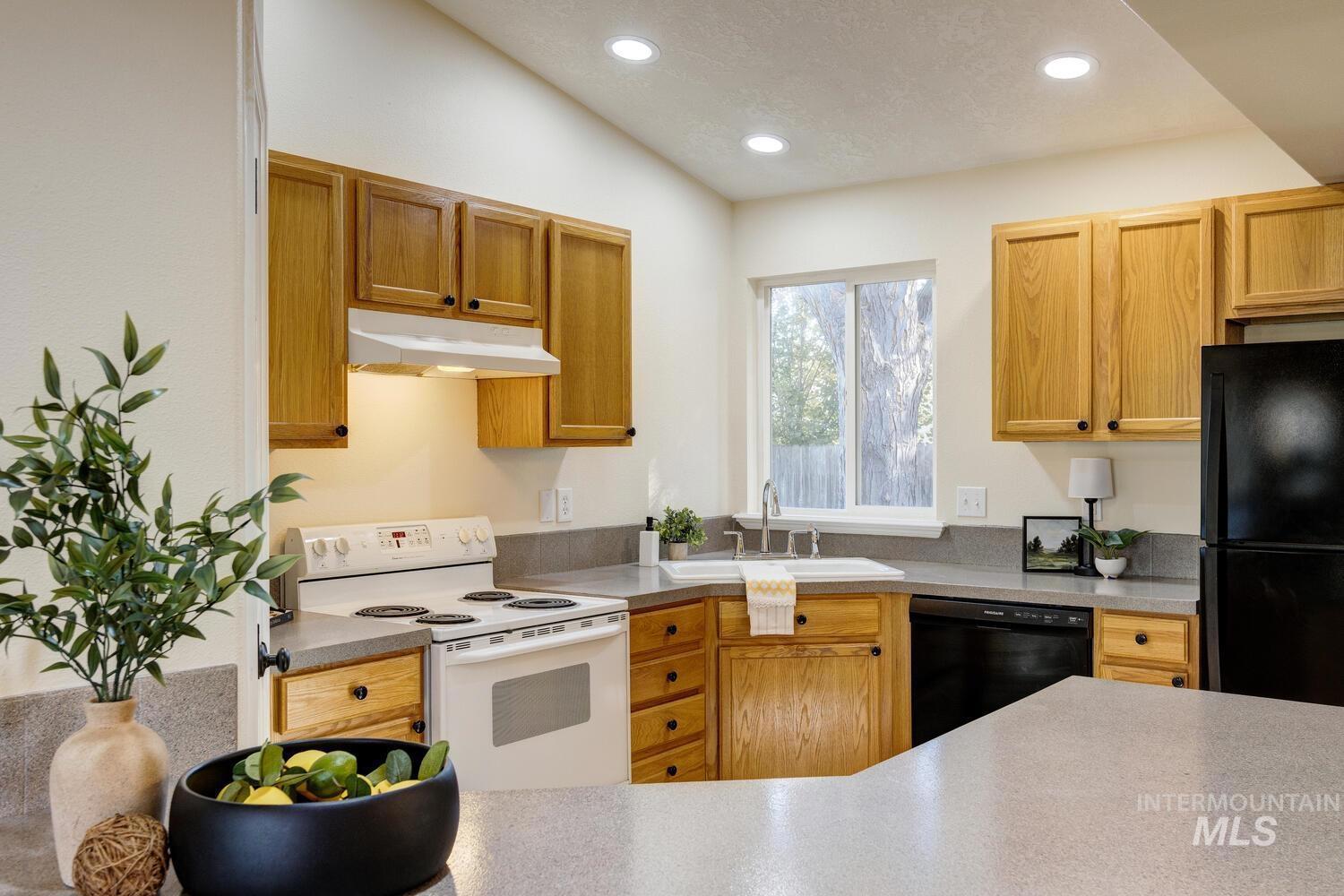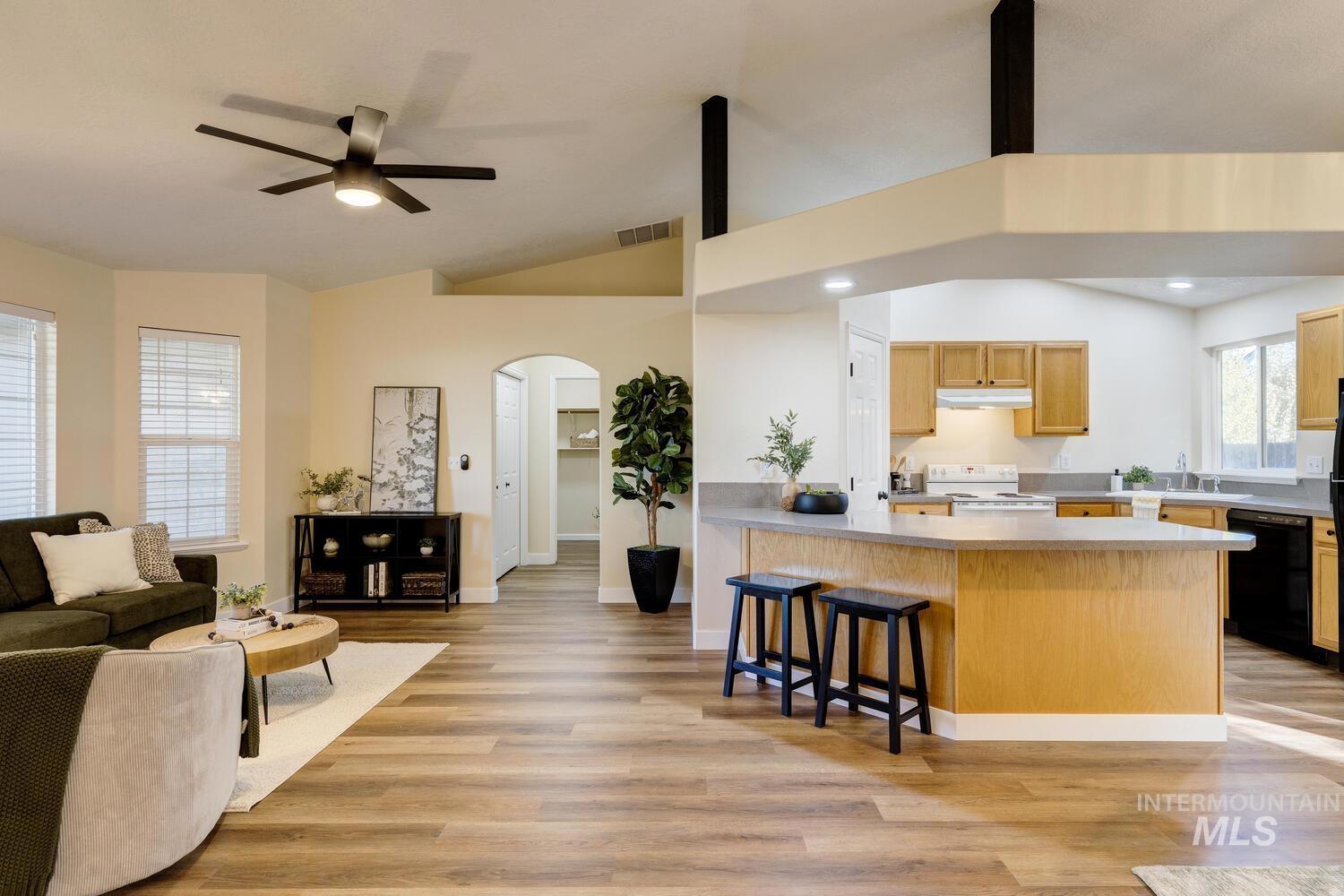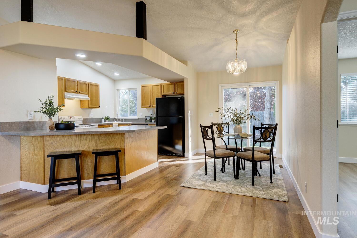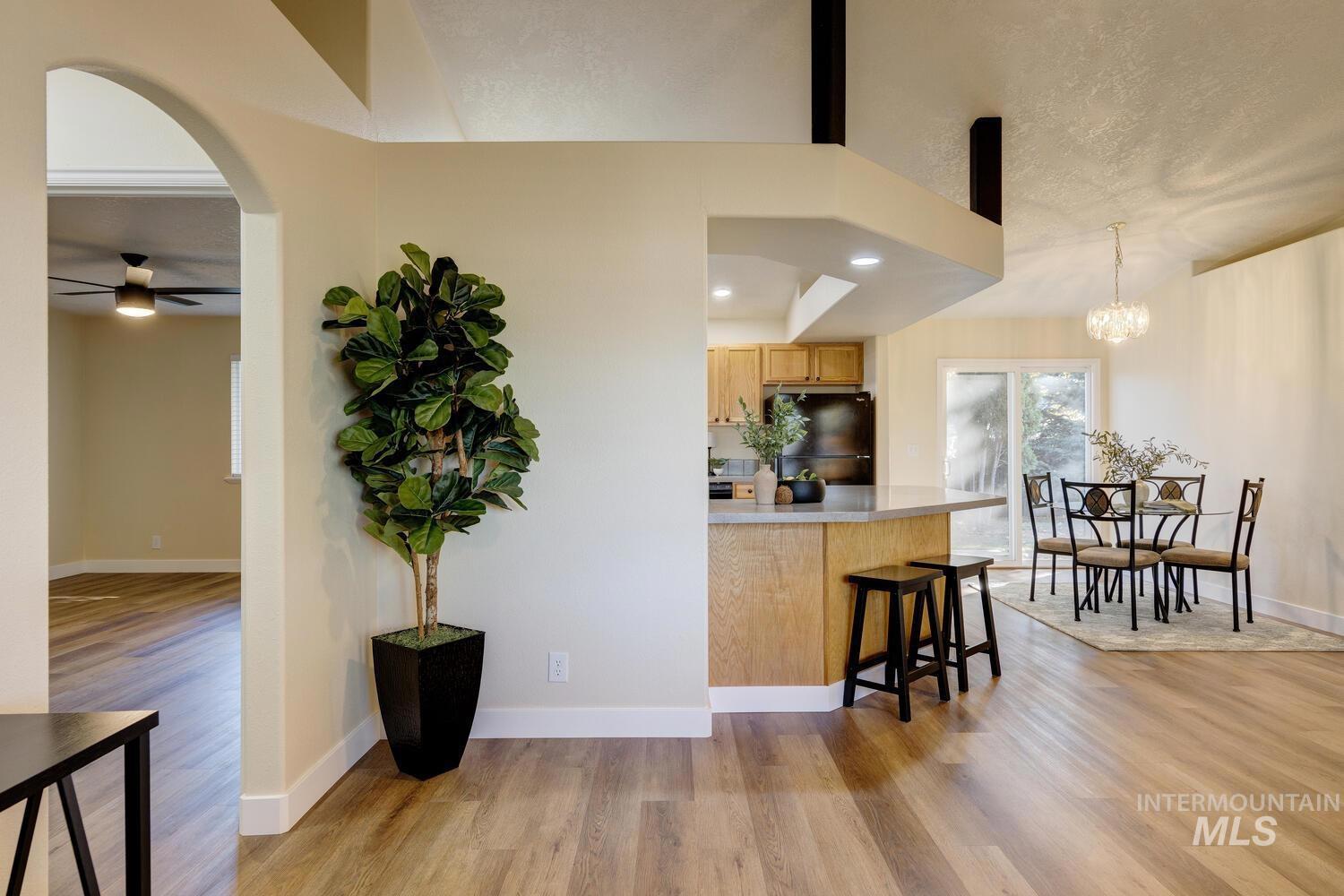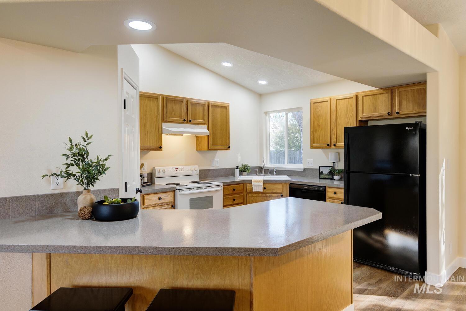 This home is so adorable and clean!! It feels so warm and open the minute you walk through the front door! Home has all new flooring, interior and exterior paint, toilets, some lights, hardware, new HVAC in 2024, newer dishwasher, & all new trim work. The living room/kitchen area has vaulted ceilings giving it a big open feeling. Lots and lots of storage in this home. Master has a big walk-in closet. Kitchen has a walk-in pantry & a nice little breakfast bar plus comes with a newer fridge. You will love the mature trees in the back yard which is so secluded & quiet. Great location for schools and all shopping needs. Great little parks all around this area. Do not miss out on this little GEM!!