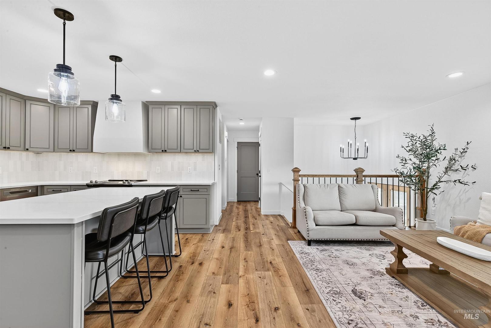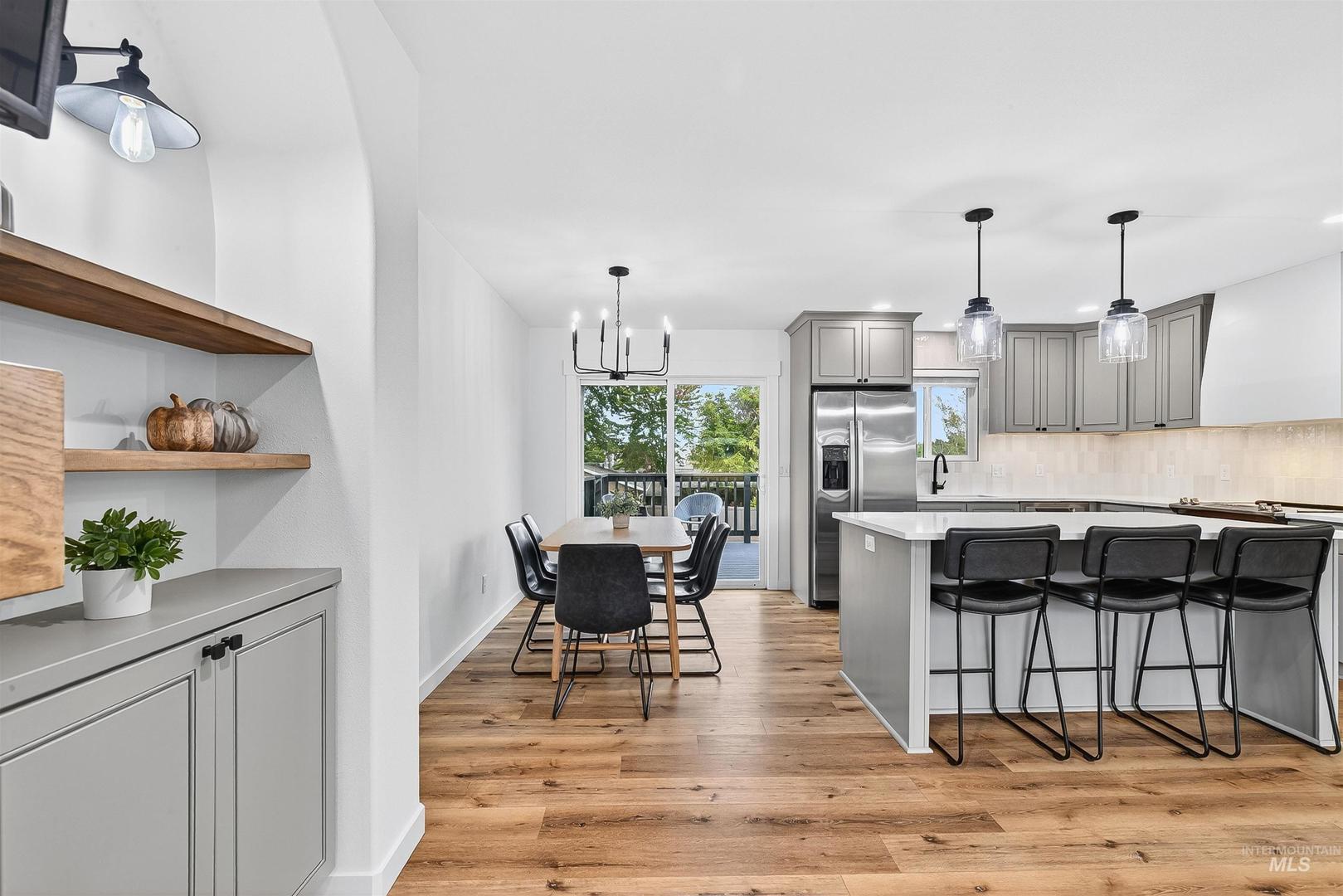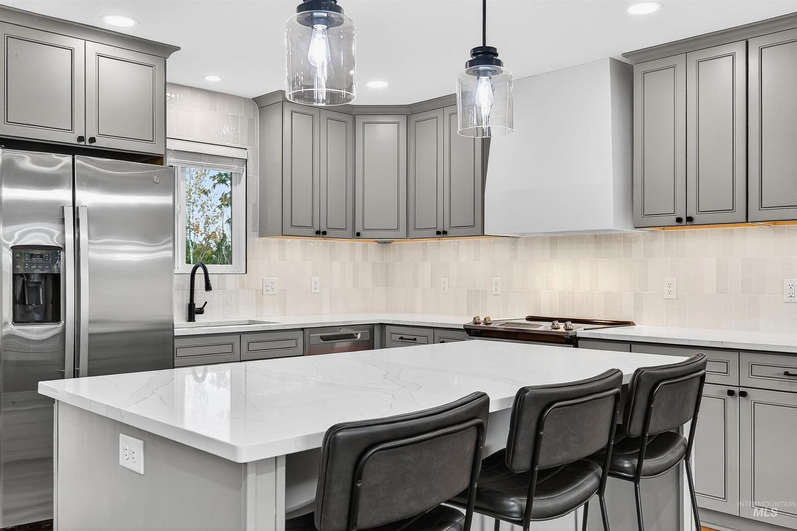 Tucked away on a quiet cul-de-sac, this four-bedroom, two-bath home has been completely reimagined from top to bottom. Every detail reflects thoughtful design, from the quartz countertops and custom tile backsplash to the rich plank flooring and stacked-stone gas fireplace framed by arched built-in bookshelves. The open living space balances modern finishes with warmth and character, creating a setting that feels both fresh and inviting. Downstairs, the fully finished basement expands your living options with a spacious family room, office or flex space, plus a convenient laundry room with direct access to the backyard. A dedicated two-car garage, BRAND NEW SPRINKLER SYSTEM, and extra space for a future shop. Outside, the quiet setting offers room to relax, unwind, and enjoy life at your own pace! Proof that when style meets vision, the results speak for themselves. Agent/Owner