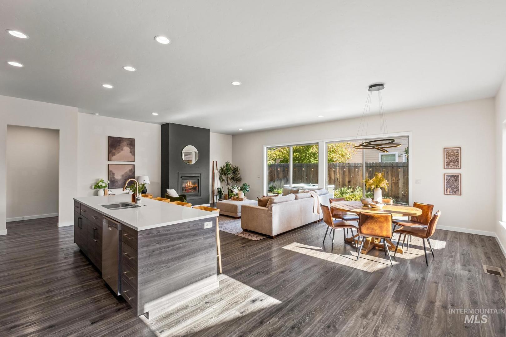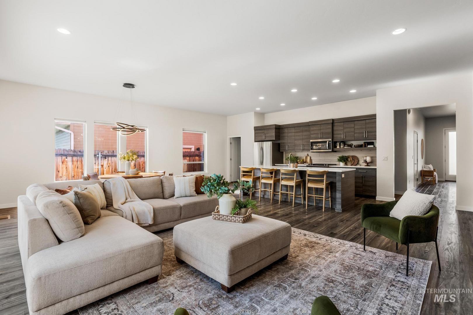 Welcome to your dream home in Boise’s coveted Bench neighborhood! This newer construction single-level design offers an ideal layout with high ceilings, oversized windows, and abundant natural light that make the home feel open and expansive. The kitchen is a showpiece with quartz countertops, a stunning tile backsplash, stainless appliances, and a large island that invites guests to gather. Entertain effortlessly with the formal dining room, perfect for holidays or football Sundays. The spacious primary suite includes a gorgeous ensuite bath with dual vanities and a large walk-in shower. Designer lighting, beautiful flooring, and modern finishes elevate every detail. Outside, the backyard is ready for relaxing or entertaining with a covered patio, hot tub, and lush, low-maintenance landscaping. The roomy garage offers fantastic storage and workspace. This home captures the best of Boise living—modern comfort, timeless style, and unbeatable location.