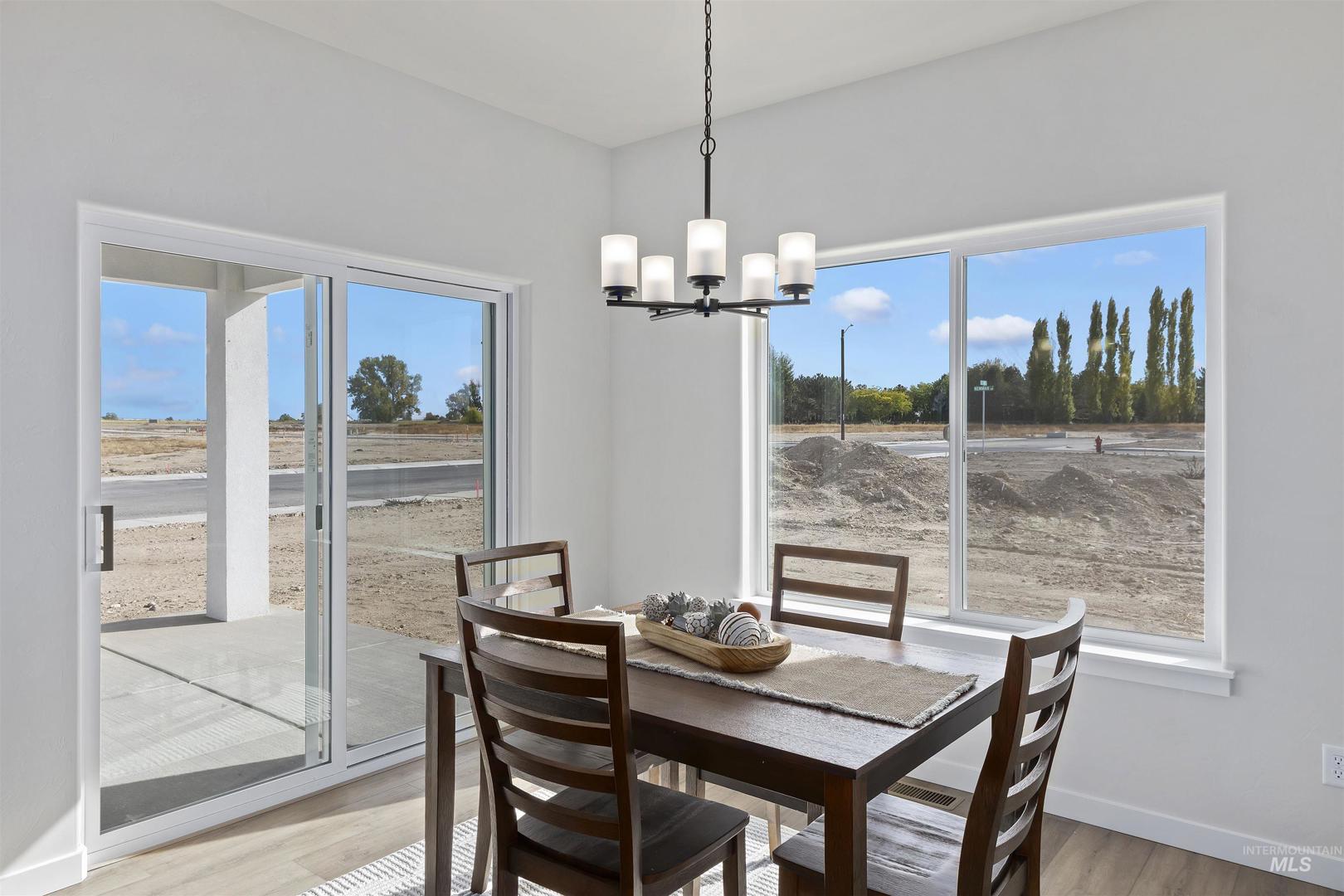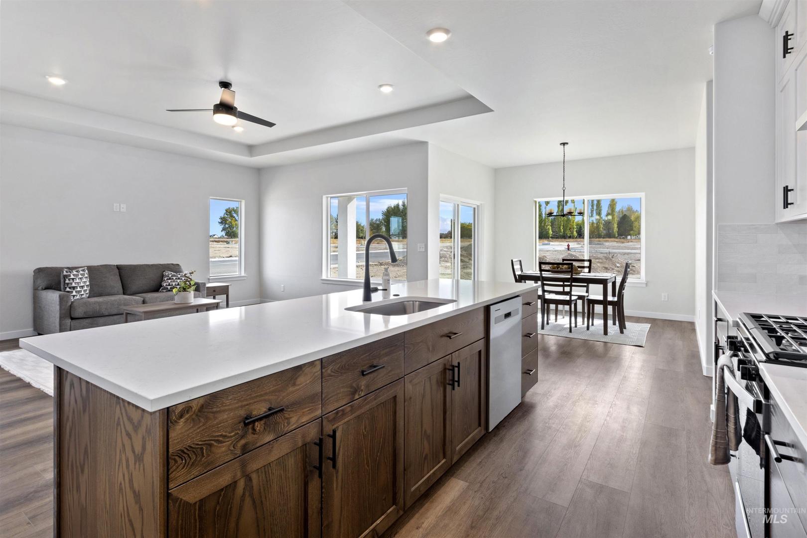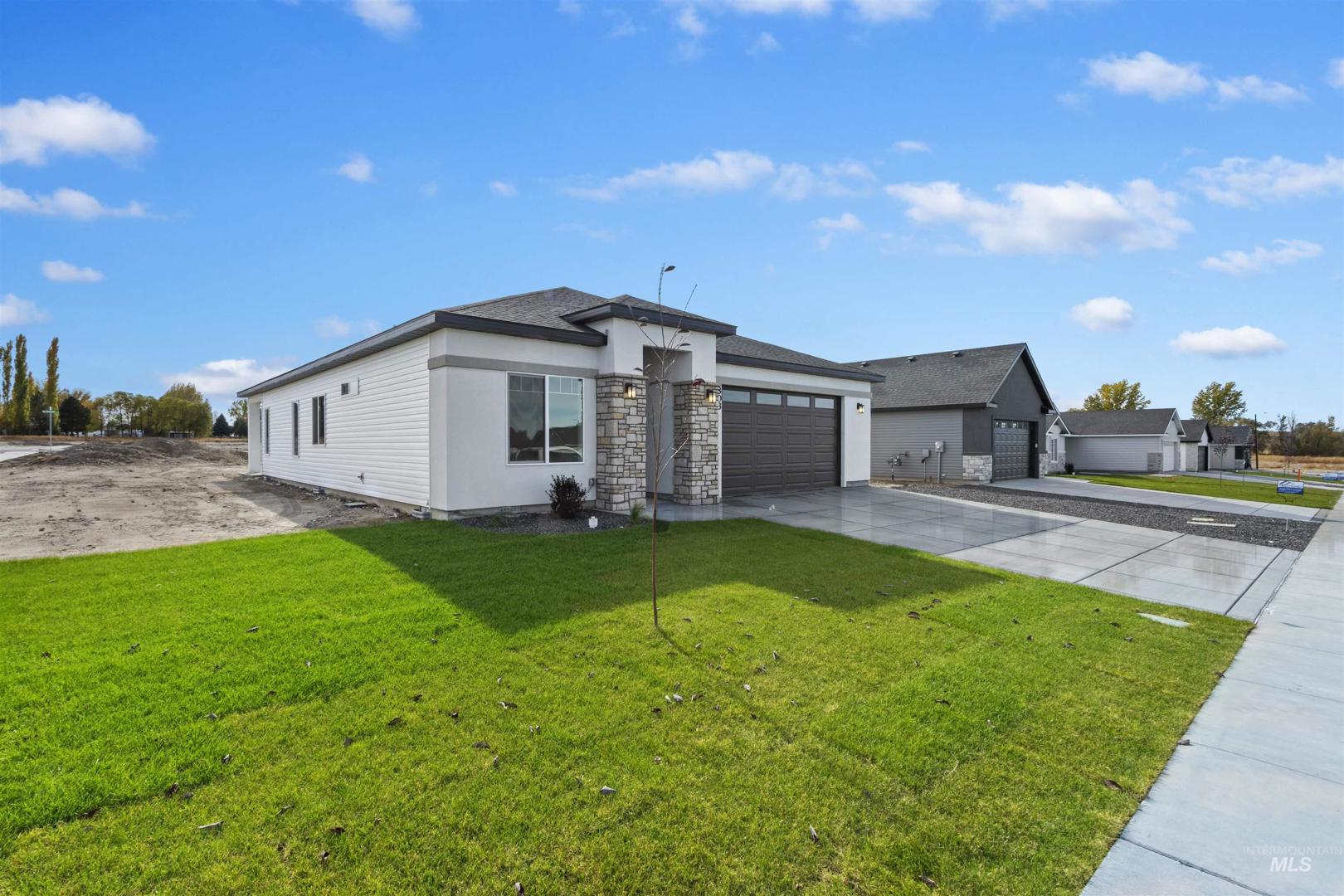 Brand New & Ready for you! Welcome to this stunning 3-bed, 2-bath home located in a desirable neighborhood. This single-level home offers a spacious layout that boosts approx. 1565 sq ft of living space. Amenities include an open-concept layout, luxury vinyl plank flooring, high ceilings with a tray inset in living room. A covered patio extends your living space year-round, so you can entertain with ease. The kitchen showcases 2 tone cabinets, an island with a granite countertop & integrated sink, plus a spacious pantry, tile backsplash, & tile backsplash, for easy everyday use. The primary suite impresses with a tray ceiling, & large walk-in closet while the primary bath features a generous walk-in shower. Enjoy the attached 2-car garage with direct entry into a stylish mudroom featuring a washer/dryer hookup & a built-in coat-&-shoe organizer for effortless everyday living. Low-maintenance siding with stucco & rock accents wraps the exterior. Newly built & thoughtfully finished, this home is moving in ready. Call to schedule your private showing today!