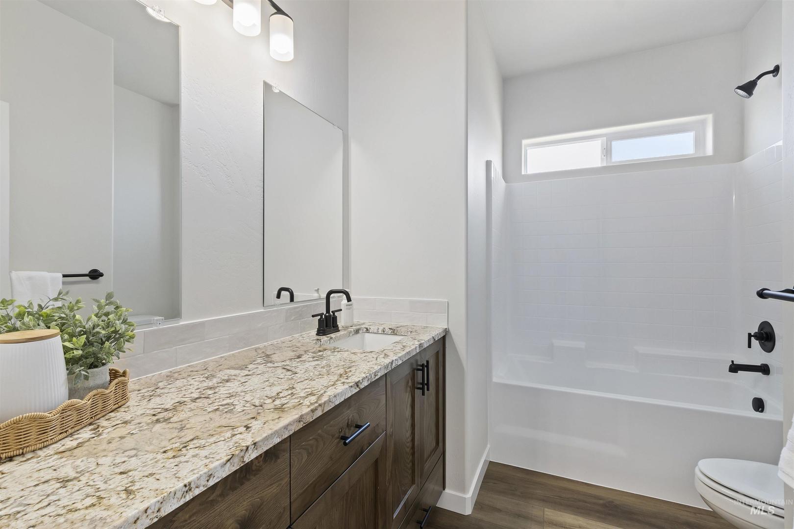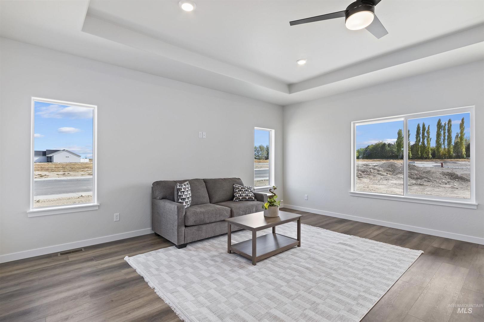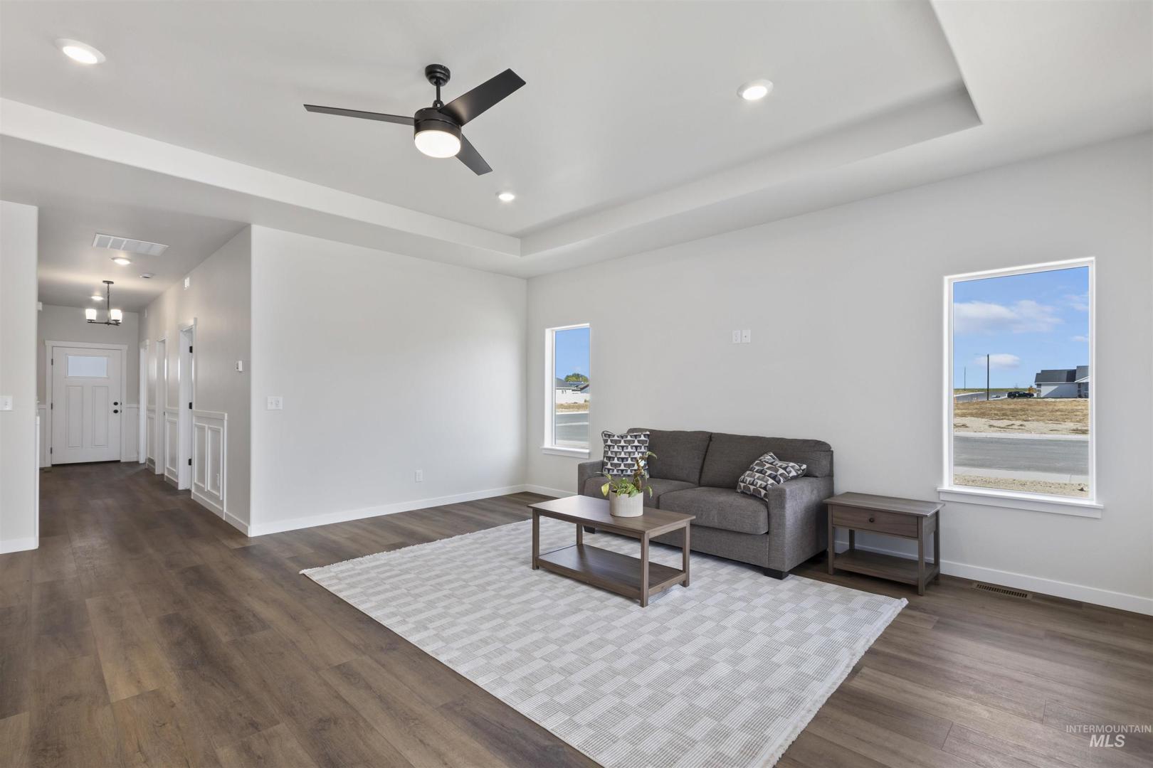 Brand New & Ready for you! Welcome to this stunning 3-bed, 2-bath home located in a desirable neighborhood. This single-level home offers a spacious layout that boosts approx. 1565 sq ft of living space. Amenities include an open-concept layout, luxury vinyl plank flooring, high ceilings with a tray inset in living room. A covered patio extends your living space year-round, so you can entertain with ease. The kitchen showcases 2 tone cabinets, an island with a granite countertop & integrated sink, plus a spacious pantry, tile backsplash, & tile backsplash, for easy everyday use. The primary suite impresses with a tray ceiling, & large walk-in closet while the primary bath features a generous walk-in shower. Enjoy the attached 2-car garage with direct entry into a stylish mudroom featuring a washer/dryer hookup & a built-in coat-&-shoe organizer for effortless everyday living. Low-maintenance siding with stucco & rock accents wraps the exterior. Newly built & thoughtfully finished, this home is moving in ready. Call to schedule your private showing today!
