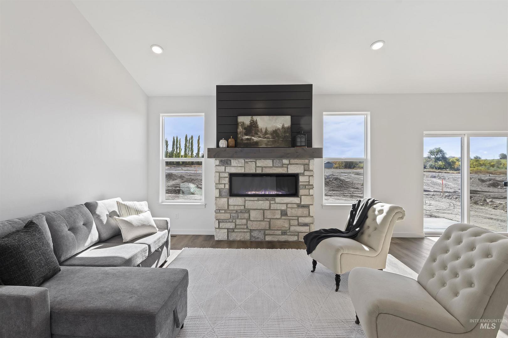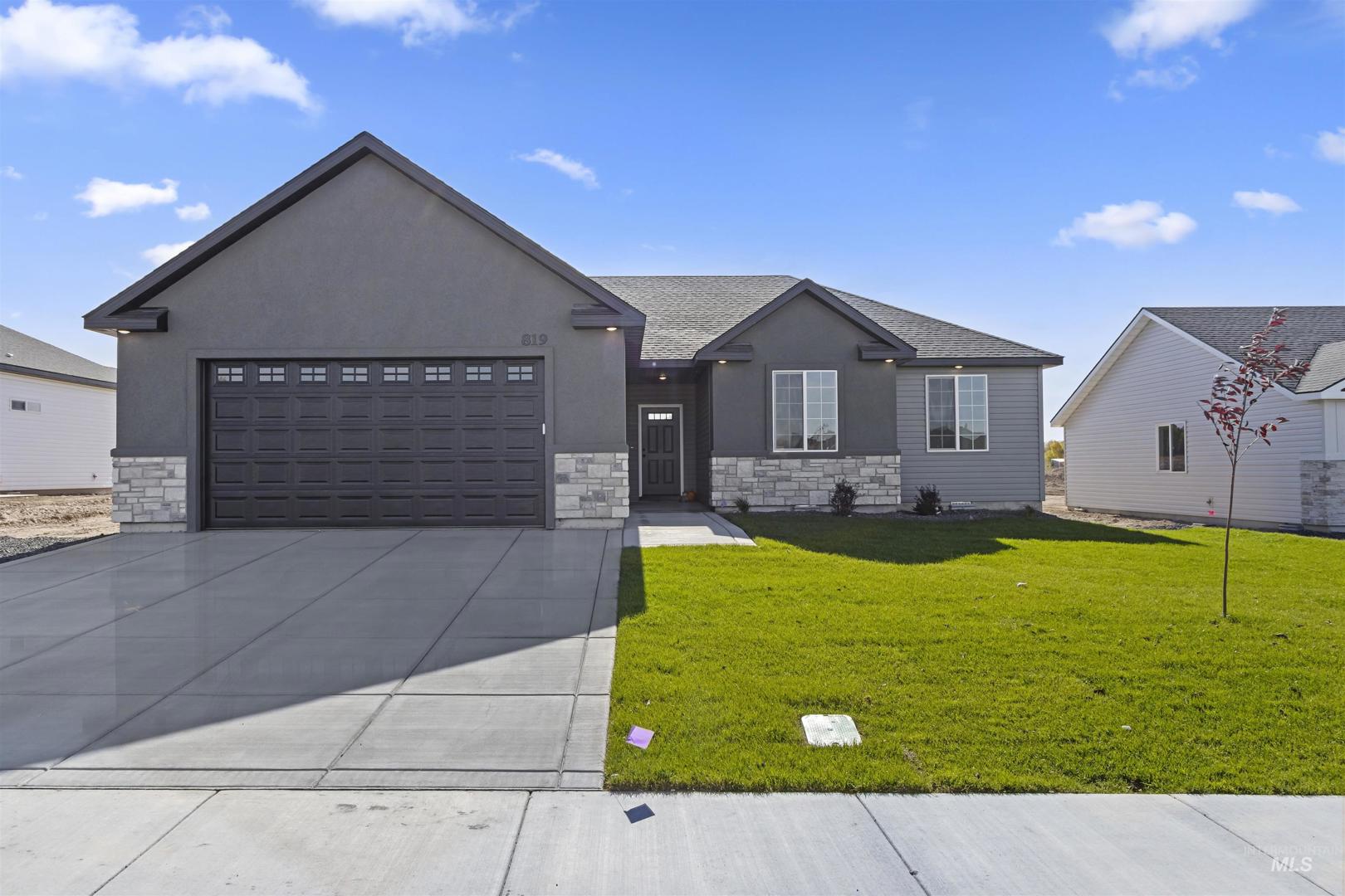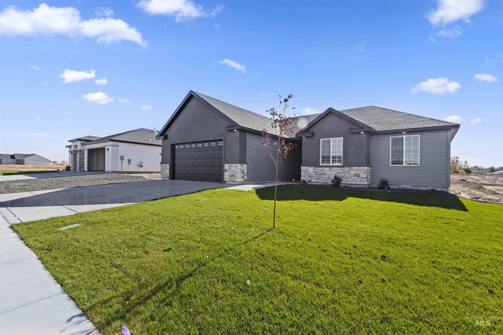 Brand New and Ready for you! Welcome to this stunning 3-bed, 2-bath home located in a desirable neighborhood. This single-level home offers a spacious layout that boosts approx. 1528 sq ft of living space. Amenities include an open-concept layout, luxury vinyl plank flooring, vaulted ceilings, an inviting fireplace in living room, & oversized windows, enhancing its modern appeal while letting natural light flow seamlessly throughout the home. The kitchen showcases, an island, granite countertops, plus a spacious pantry, & tile backsplash, for easy everyday use. The primary suite impresses with a tray ceiling, while the primary bath features a double vanity, a generous walk-in shower & walk-in closet. Enjoy the attached 2-car garage with direct entry into a stylish mudroom featuring a washer/dryer hookup & a built-in coat-and-shoe organizer for effortless everyday living. Low-maintenance siding with stucco and rock accents wraps the exterior. Newly built and thoughtfully finished, this home is moving in ready. Call to schedule your private showing today!