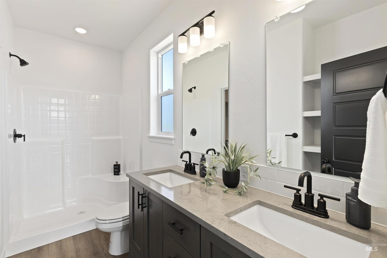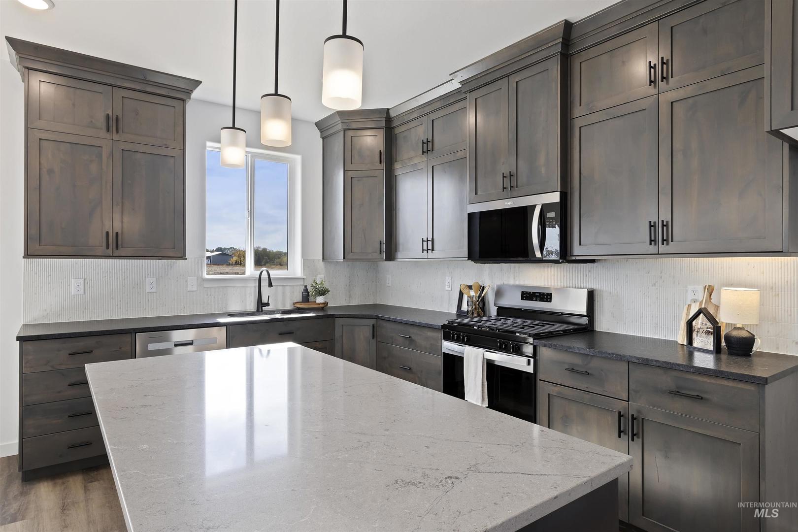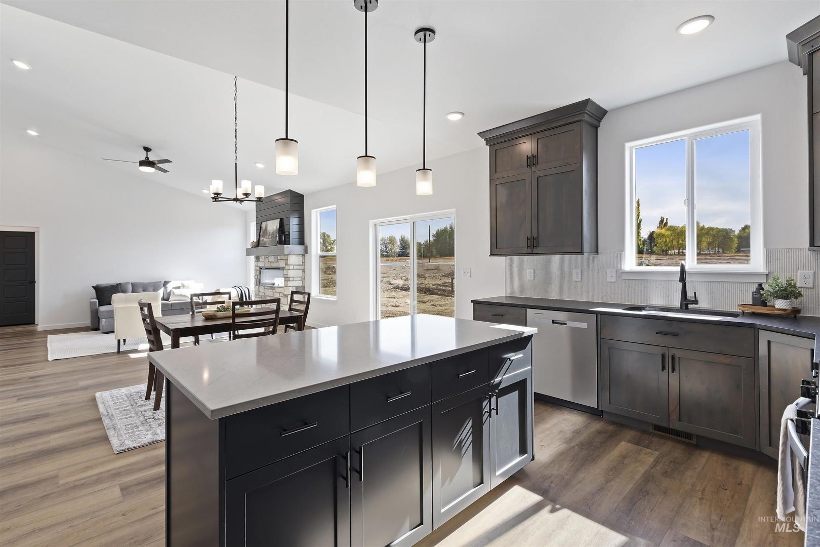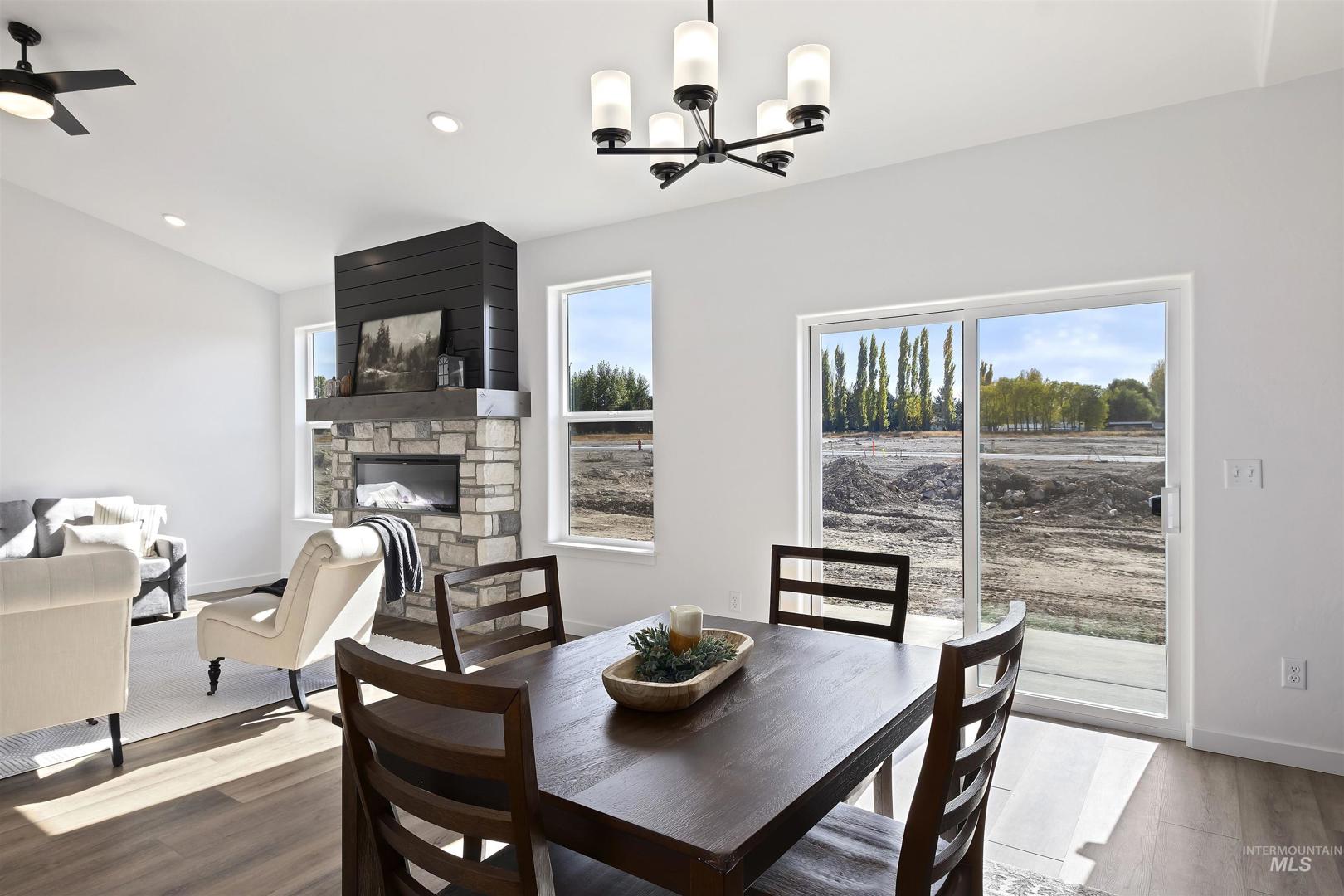 Brand New and Ready for you! Welcome to this stunning 3-bed, 2-bath home located in a desirable neighborhood. This single-level home offers a spacious layout that boosts approx. 1528 sq ft of living space. Amenities include an open-concept layout, luxury vinyl plank flooring, vaulted ceilings, an inviting fireplace in living room, & oversized windows, enhancing its modern appeal while letting natural light flow seamlessly throughout the home. The kitchen showcases, an island, granite countertops, plus a spacious pantry, & tile backsplash, for easy everyday use. The primary suite impresses with a tray ceiling, while the primary bath features a double vanity, a generous walk-in shower & walk-in closet. Enjoy the attached 2-car garage with direct entry into a stylish mudroom featuring a washer/dryer hookup & a built-in coat-and-shoe organizer for effortless everyday living. Low-maintenance siding with stucco and rock accents wraps the exterior. Newly built and thoughtfully finished, this home is moving in ready. Call to schedule your private showing today!