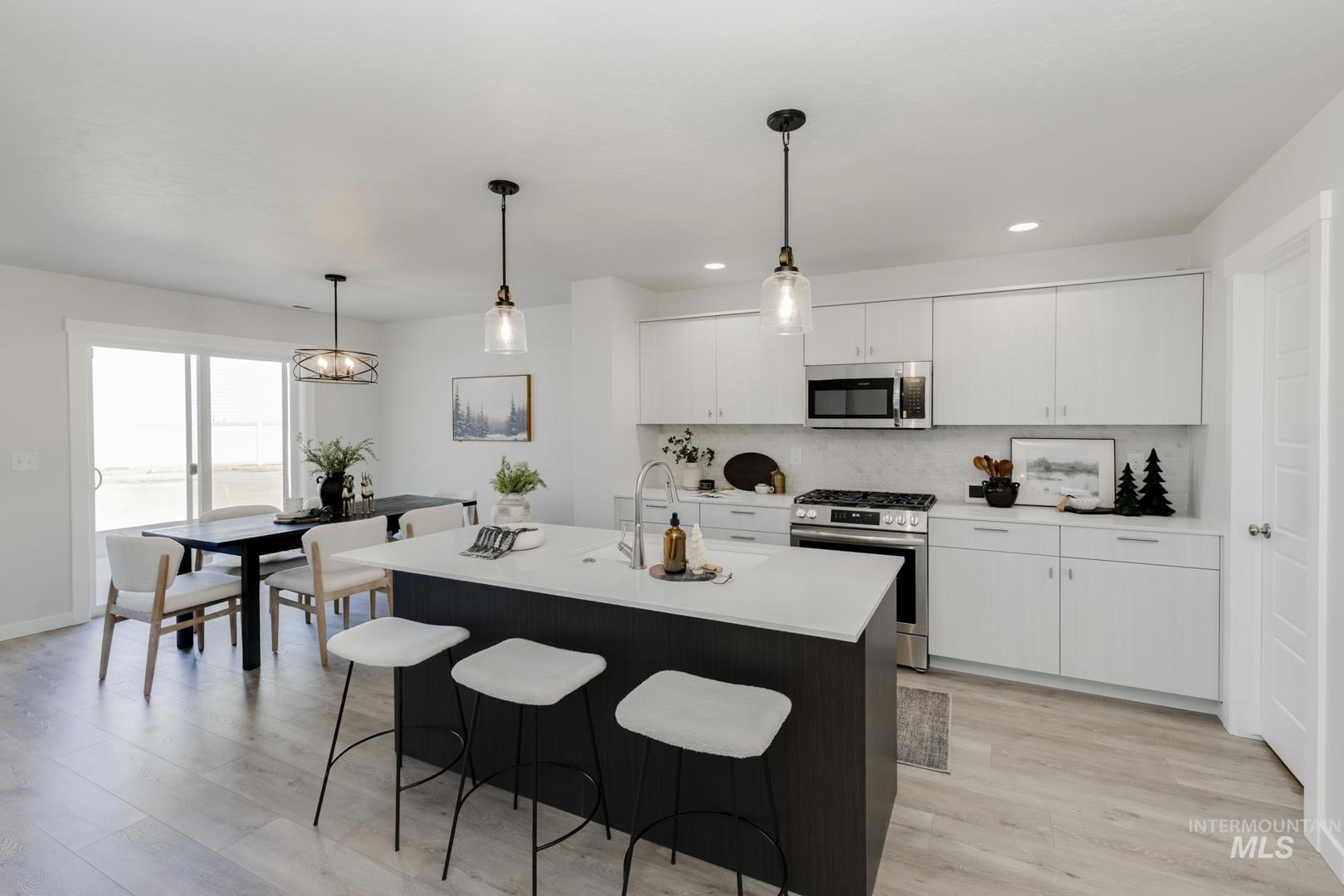 ***OPEN HOUSE 11/8, 12-4pm*** Get up to $40K now thru 11/30/2025 with the Festival of Homes Promo! Enter into a brand new home in Meridian, Idaho and enjoy its benefits and stress free living! The brand new Eliot 2318 is waiting for you! Full landscaping, fencing, and a refrigerator are included with the home! The main level`s open concept flows smoothly through the entryway, kitchen, dining area, and living room. The added bonus of a downstairs den is perfect for an office or can easily be used as a guest space. The kitchen boasts upgraded finishes, including stainless steel appliances, a gas range, and stylish solid surface countertops. Upstairs, all 4 bedrooms await, including the primary suite with a walk-in closet and en suite bathroom. Work, play, or get creative—the upstairs loft is yours to turn into whatever you want. The home also features large windows that invite natural light throughout, making every room feel bright and airy. Enjoy the flexibility of a home designed to fit your lifestyle. Photos are of the actual home! **Closing can occur no sooner than 12.26.25**