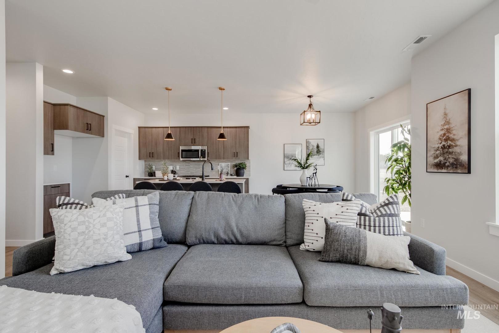 ***OPEN HOUSE 11/8, 12-4pm*** Get up to $30K now thru 11/30/2025 with the Festival of Homes Promo! This brand new home located in vibrant Meridian, Idaho welcomes you with open arms. Live an elevated life in the Dryden 1851. Refrigerator, full fencing, and landscaping are included with the home! On the main floor, you`ll find an open living room, kitchen, and dining area that has plenty of room to move, plus large windows to allow in natural light. The kitchen boasts upgraded finishes, including stainless steel appliances, a gas range, and stylish solid surface countertops. Upstairs is a cozy loft, perfect for a media room or playroom. The upper level primary suite is exquisite, including a walk-in closet, walk-in shower, and double vanity sinks. The secondary bedrooms are generously sized and thoughtfully placed for privacy. Plus, it even comes with an upstairs laundry room for the ultimate in convenience. With its thoughtful layout, this home offers a perfect balance of style and function. Photos are of the actual home! **Closing can occur no sooner than 12.26.25**