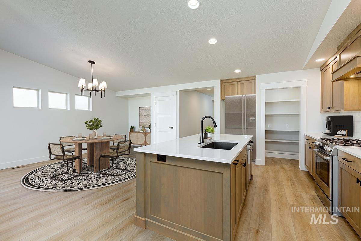 The HAVASU MODEL| Blackrock Homes. SELF GUIDED TOUR HOME (instructions onsite). Enjoy COMMUNITY POOL, pickle ball courts, walking paths, community dog parks & playground. Located in the gated neighborhood: The District at Skybreak Estates w/private pickle ball court, dog park & private streets. Featuring elevated finishes; upgraded cabinets, Bosch appliances, upgraded lighting plumbing & flooring. Baths feature tile floors, tile showers & under mount sinks. Generous sized great room, kitchen & dining room perfect for entertaining. Private guest suite & 3rd bdrm or office space gives you everything you need and nothing you don`t. Oversized garage w/additional 16` x5` shop space in garage- perfect for storage, work bench, home gym, etc. INCLUDES FULL VINYL FENCING & FRONT & REAR YARD SPRINKLERS & LANDSCAPING. Just Blocks away from Discovery park. Easy access to YMCA, the interstate, Meridian, shopping, dining, & entertainment.