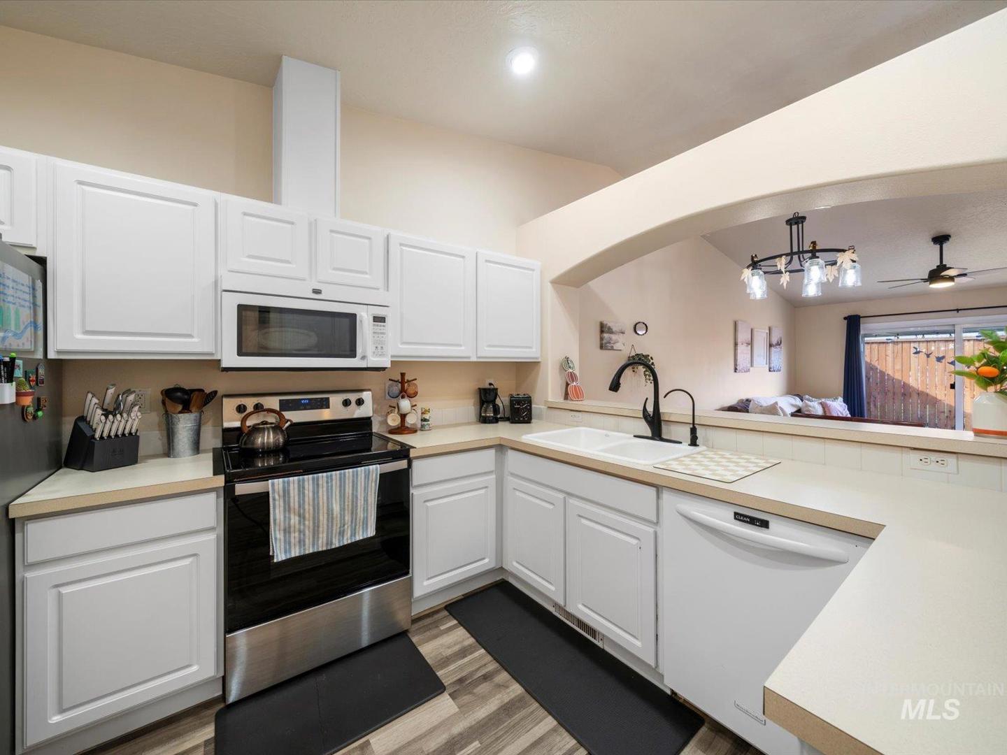 CAREFREE LIVING at its best! This charming townhome offers the perfect blend of comfort, convenience & low-maintenance living. Featuring all-new flooring, fresh paint & brand-new SS appliances, the home lives bright & open w/ thoughtfully refreshed systems—dishwasher, A/C & water heater new in 2020, plus new garage door, disposal. Enjoy year-round comfort w/ an air purifier & efficient layout that lives large. The 2nd bedroom doubles as an ideal guest room or office thanks to a built-in Murphy bed. Step outside to a relaxing backyard oasis—fully fenced for privacy w/ a covered patio & no backyard neighbors! HOA maintains landscaping, exterior & irrigation so you can simply move in & enjoy. Stroll to nearby amenities: grocery, gas, banks, restaurants, vet, optometrist, salons & primary medical care all within walking distance. Perfectly situated near the W Overland & S Five Mile corridor for shopping, dining & parks. Truly turnkey.