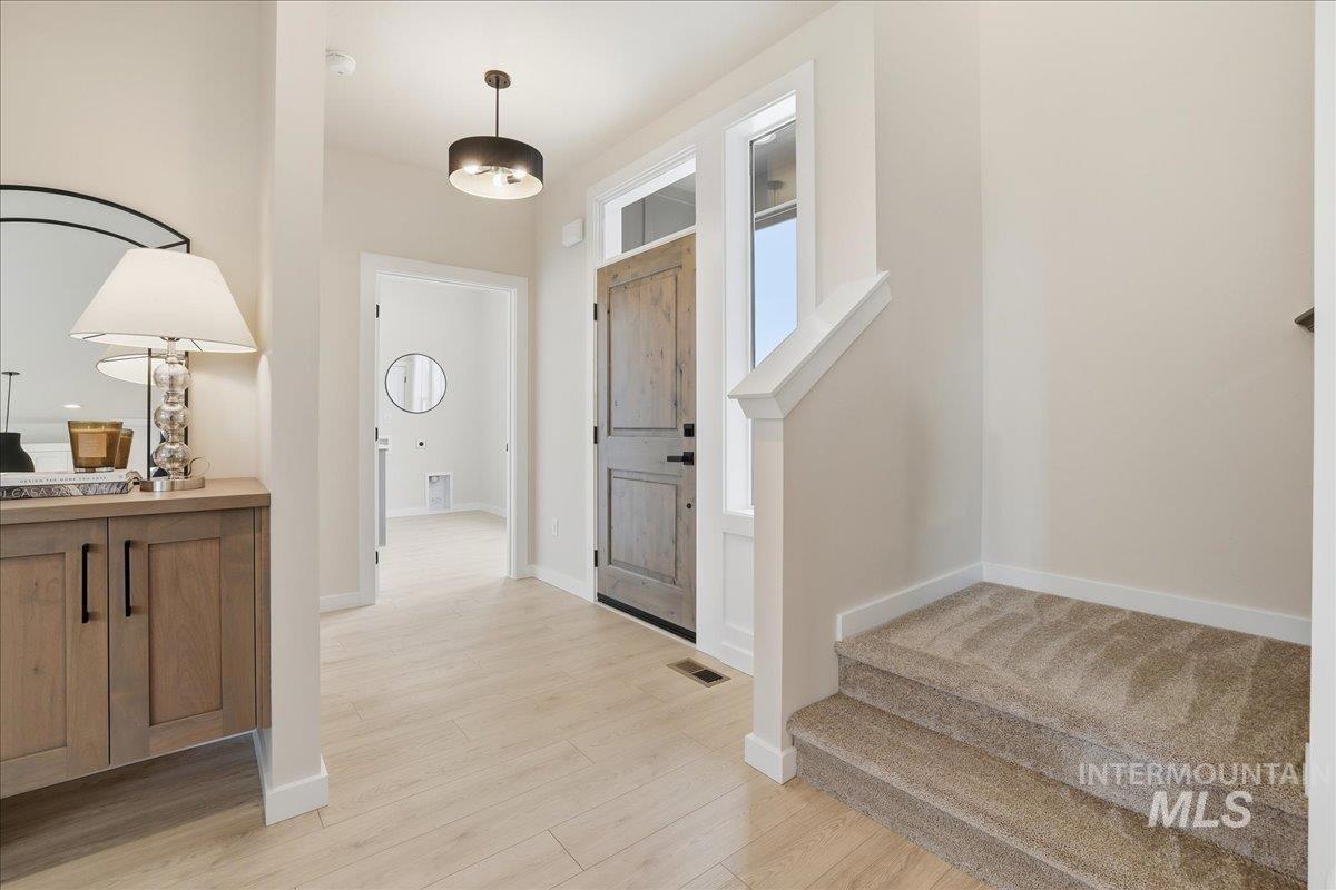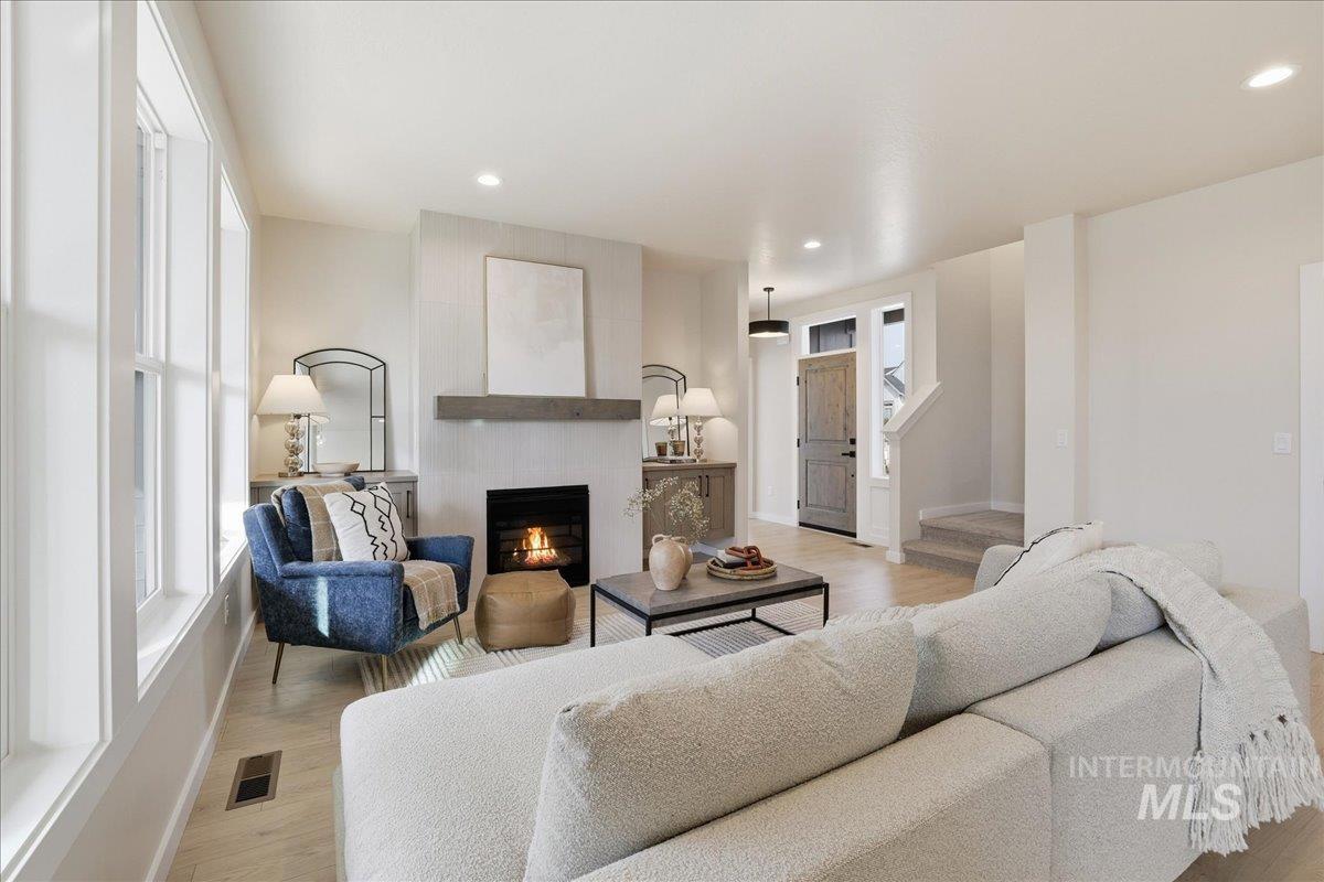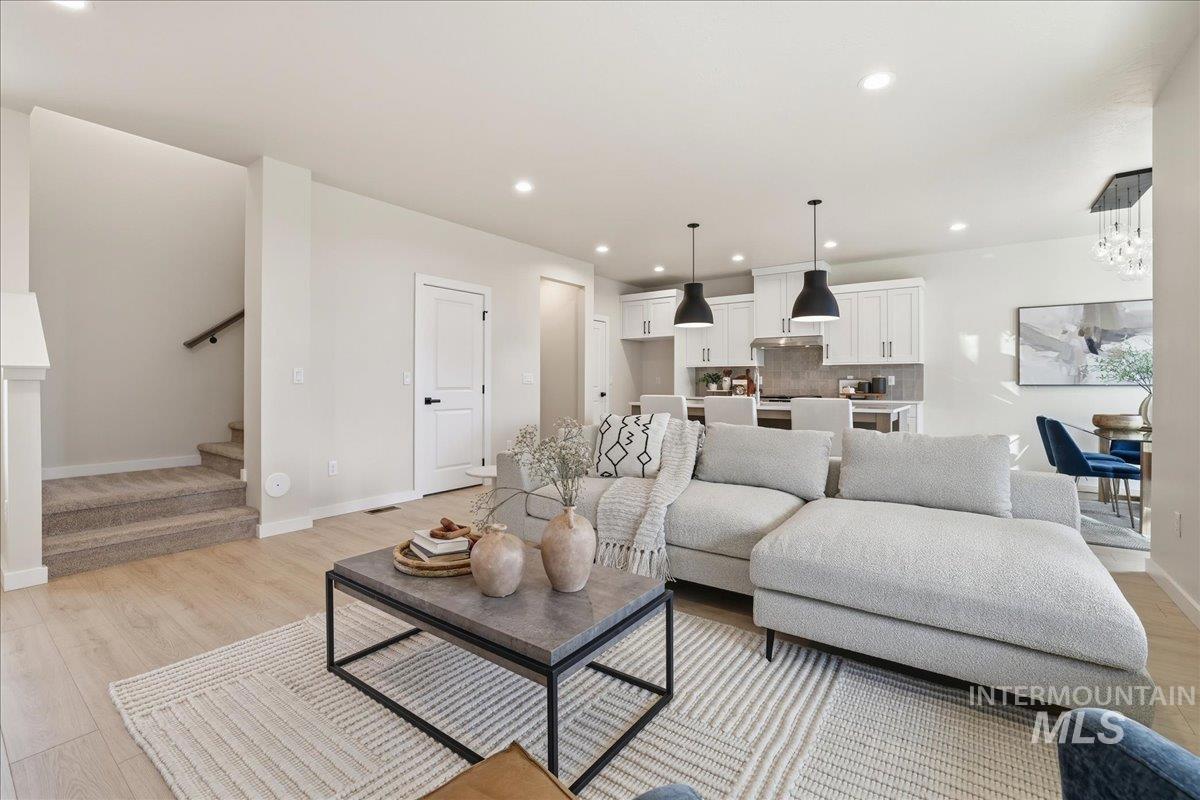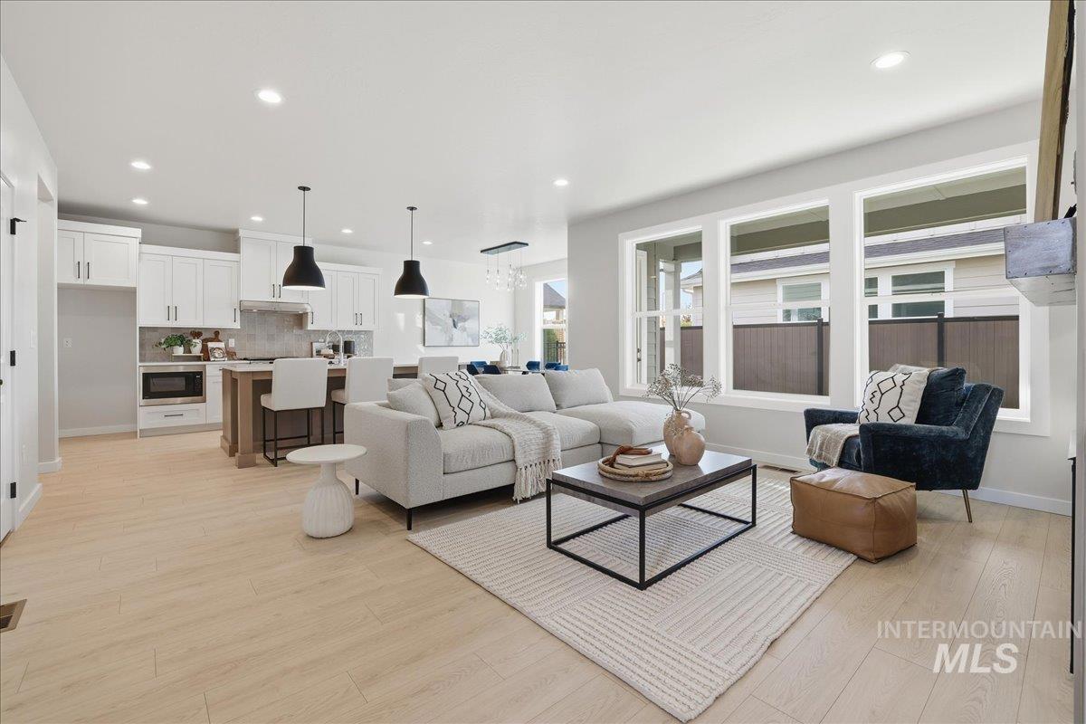 Welcome to this beautiful 3-bedroom, 3-bath, plus bonus room, patio home located in the desirable Lavender Heights community of Meridian. Thoughtfully designed with fine finishes and exceptional quality throughout, this home offers comfort, functionality, and style in every detail. Kitchen features beautiful selections, gas range, and large pantry. Quartz countertops in the kitchen, and all bathrooms. The primary bedroom is spacious and has a well appointed walk-in closet, and a tiled walk-in shower in the bathroom. Step outside to a fully landscaped and fenced yard with easy-to-maintain care and a covered patio perfect for relaxing or entertaining. Extra upgrades include EV charger in the garage, quiet garage door opener with camera and wi-fi, split zone HVAC for ensured comfort, Ring doorbell, and tankless water heater. Enjoy the convenience of Discovery Park just across the street, offering outdoor recreation for everyone. You`ll also appreciate the quick freeway access and proximity to shopping, making daily life a breeze. Don`t miss your chance to be a part of this thriving community. The Builder is now offering an incentive again on these homes, with an additional one being offered by his preferred lender. Don`t miss out on this opportunity! Call for details.