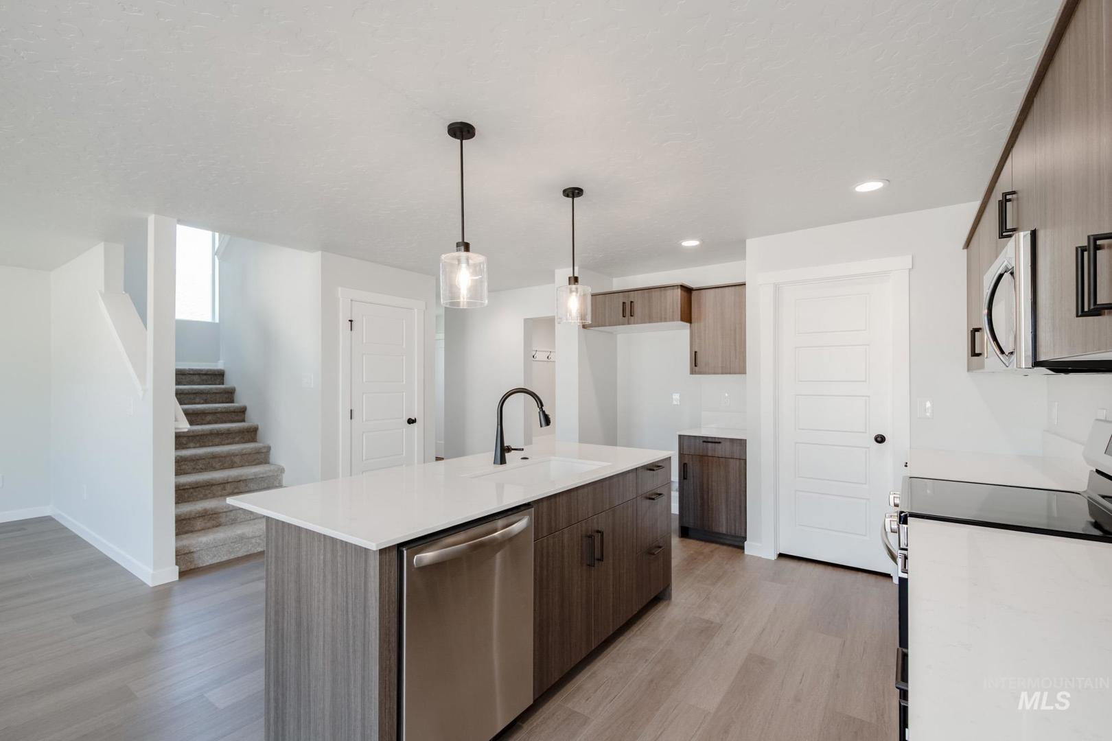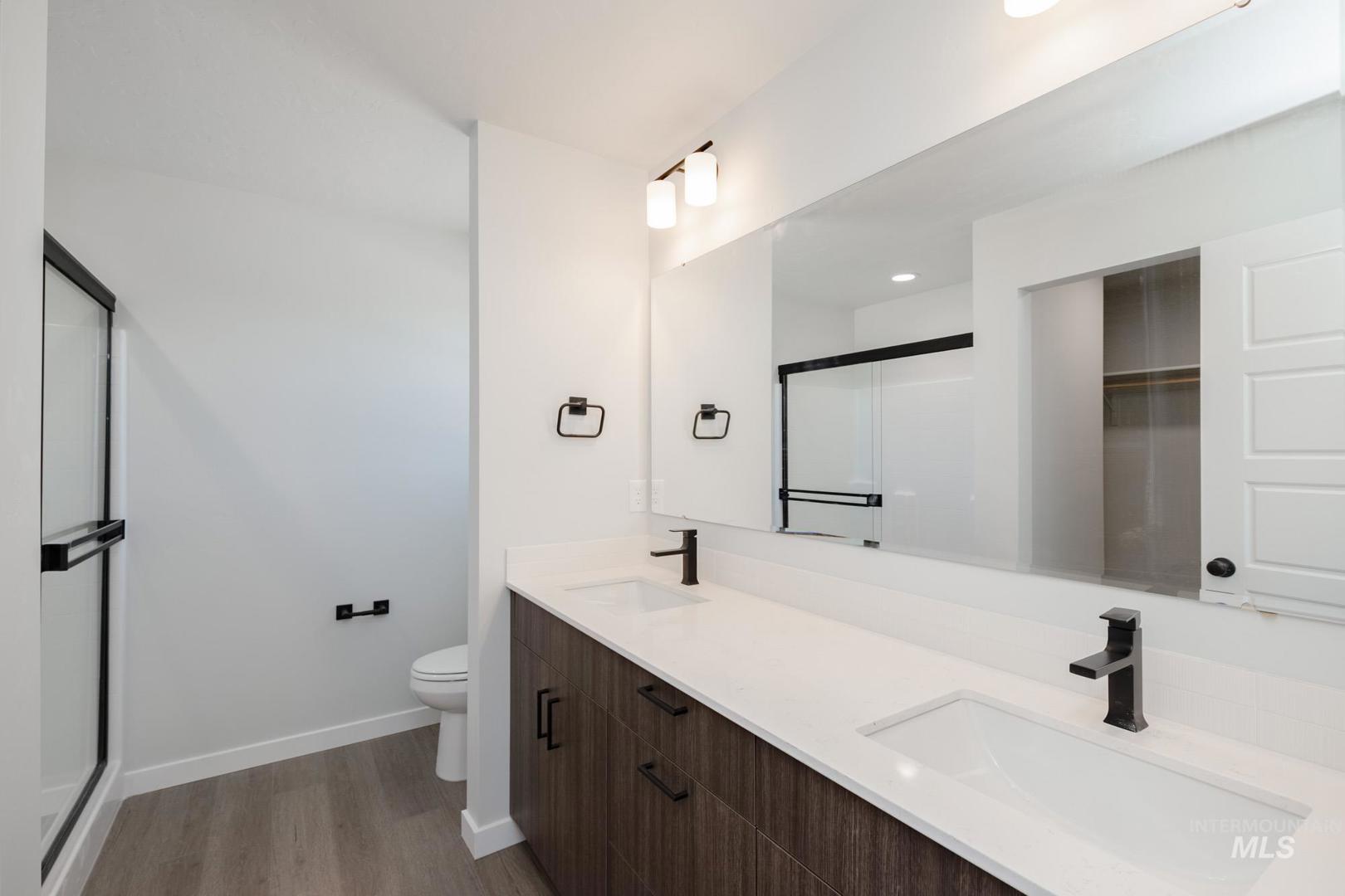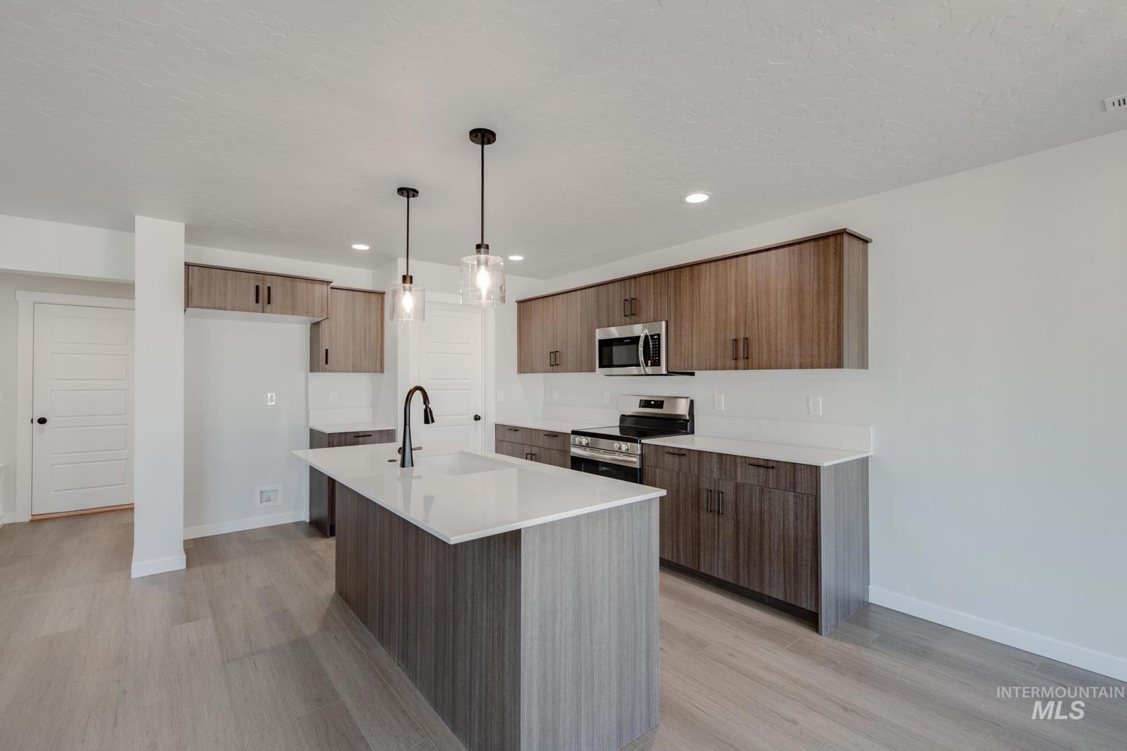 Get up to $30K now thru 11/30/2025 with the Festival of Homes Promo! This brand new home located in vibrant Meridian, Idaho welcomes you with open arms. The Hugo 1650 is endearingly charming and reassuringly practical. The main level welcomes occupants and guests alike with open and friendly living spaces. The kitchen comes with stainless steel appliances and stylish solid surface countertops, adding both functionality and aesthetics to the kitchen. Head upstairs where a primary suite spans the entire rear of the home and contains a walk-in closet and spacious en suite bathroom. The two other bedrooms and the laundry room are also situated upstairs along with a full bathroom. The garage offers plenty of space to park cars and toys or use as storage. A versatile layout provides endless possibilities for customizing the home to suit your needs. With thoughtful touches throughout, the Hugo is designed to enhance your lifestyle. You`ll quickly feel right at home. Photos are similar. All selections are subject to change without notice, please call to verify.