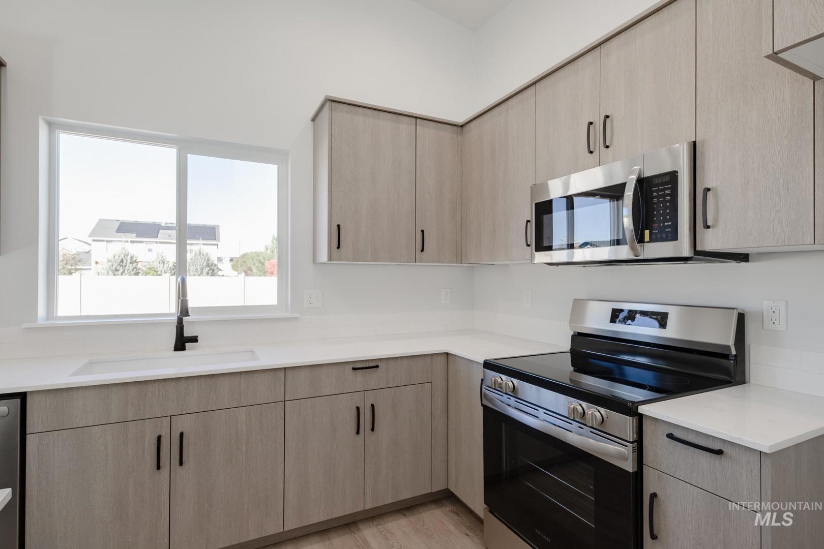 Get up to $30K now thru 11/30/2025 with the Festival of Homes Promo! Embrace the comforts of a brand new home in Kuna, Idaho. The Willow 1860`s single level space is smartly laid out, boasting two bedrooms situated at the front of the home. To entertain or for personal relaxation, escape into the spacious vaulted great room and dining room that open onto a back patio. Natural light cascades through the windows, adding an illuminated touch to the vaulted ceiling. The kitchen comes with stainless steel appliances and stylish solid surface countertops, adding both functionality and aesthetics to the kitchen. Retreat to the primary suite for restful nights, complete with a roomy en suite bathroom, dual vanities, a stand-up shower, and a walk-in closet. With its open design and ample storage, the Willow 1860 offers everything you need in a beautiful, functional space. Photos are of the actual home!