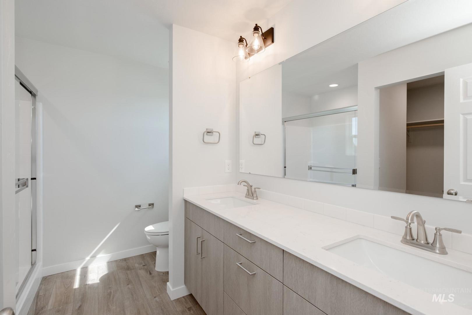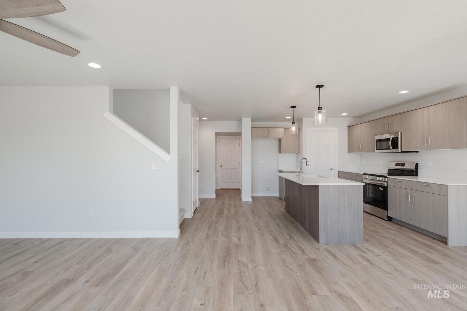 Get up to $30K now thru 11/30/2025 with the Festival of Homes Promo! Embrace the comforts of a brand new home in Kuna, Idaho. The Hugo 1650 is endearingly charming and reassuringly practical. The main level welcomes occupants and guests alike with open and friendly living spaces. The kitchen comes with stainless steel appliances and stylish solid surface countertops, adding both functionality and aesthetics to the kitchen. Head upstairs where a primary suite spans the entire rear of the home and contains a walk-in closet and spacious en suite bathroom. The two other bedrooms and the laundry room are also situated upstairs along with a full bathroom. The garage offers plenty of space to park cars and toys or use as storage. A versatile layout provides endless possibilities for customizing the home to suit your needs. With thoughtful touches throughout, the Hugo is designed to enhance your lifestyle. You`ll quickly feel right at home. Photos are similar. All selections are subject to change without notice, please call to verify.