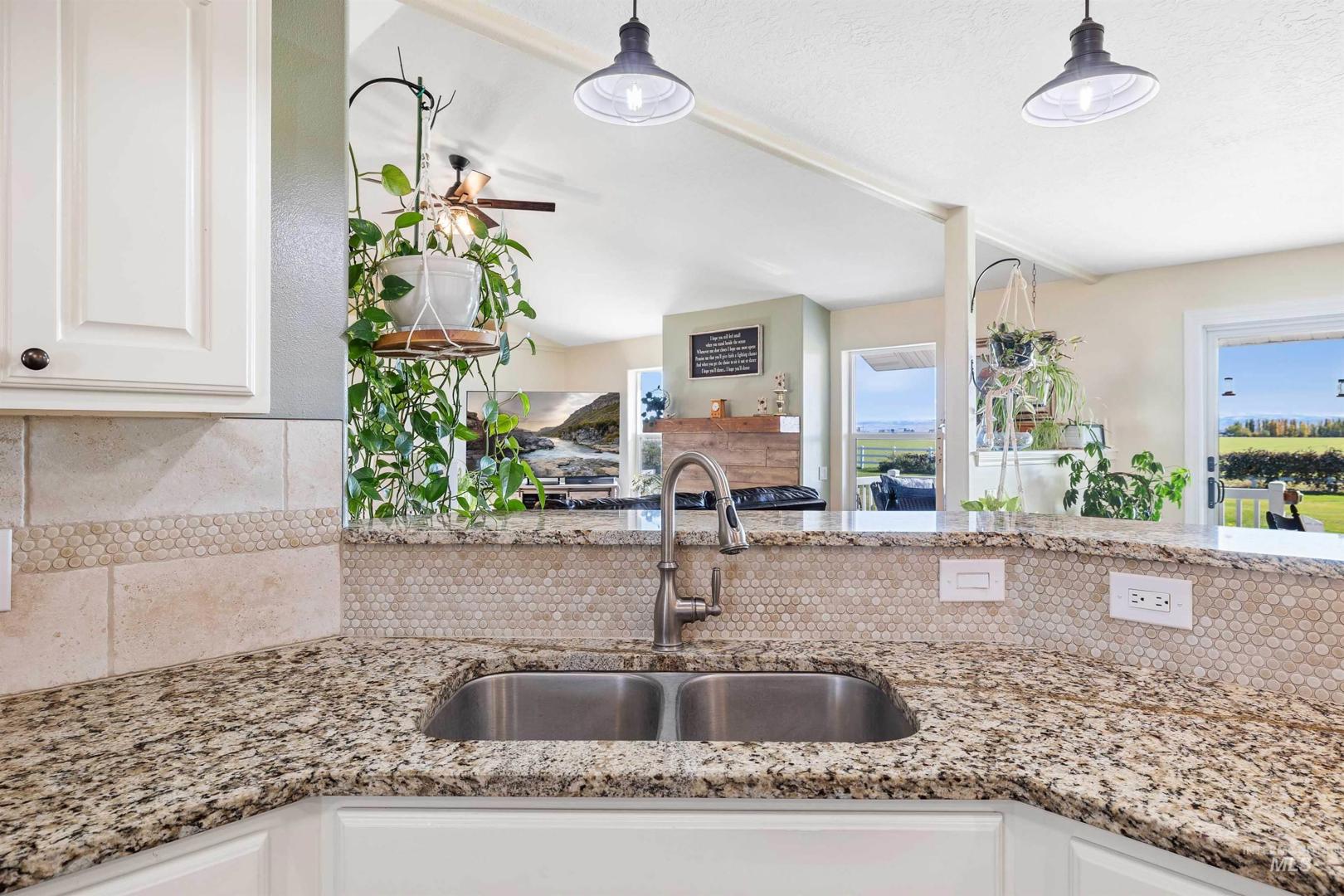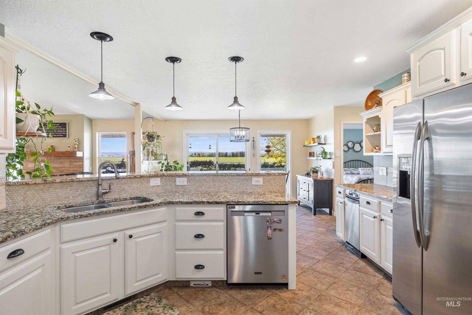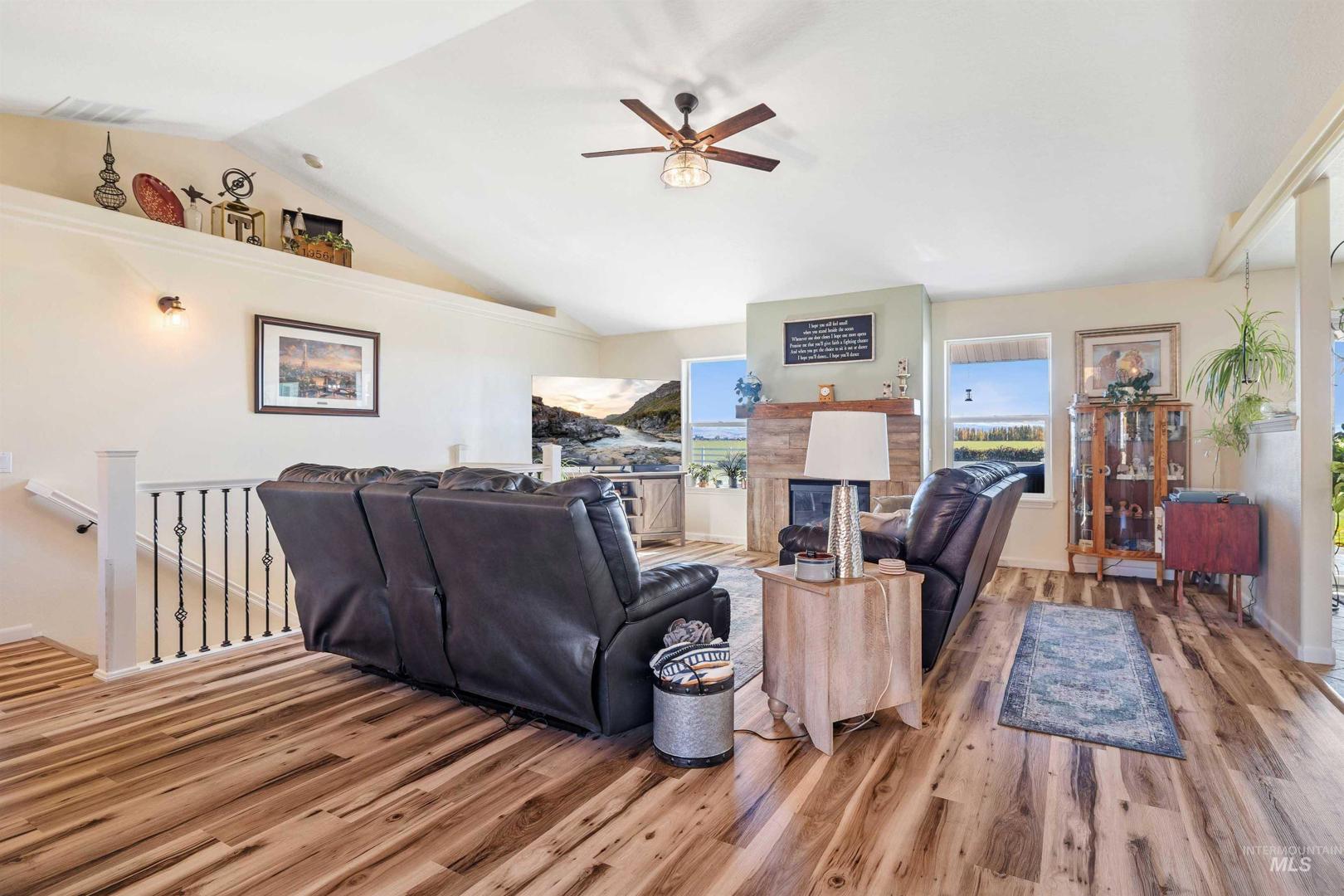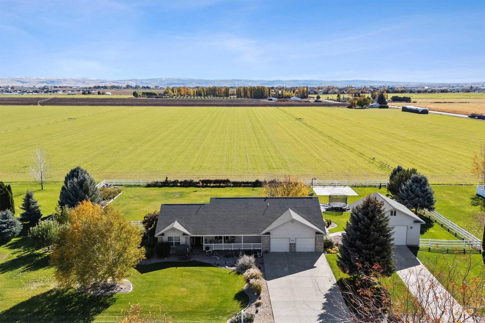 Large and beautiful, this spacious 6-bedroom, 3-bath home offers approx. 4,000 finished sq. ft. of thoughtfully designed living space on just over an acre. With timeless curb appeal and an inviting layout, this property perfectly blends comfort, function, and style. Step inside to bright, open spaces filled with natural light and high ceilings that enhance the homes airy feel. The main level features a welcoming great room ideal for entertaining with vaulted ceilings and gas fireplace, a well-appointed kitchen with ample cabinetry, breakfast bar seating, and an adjoining dining area perfect for family gatherings. Generous bedrooms offer flexibility for guests, a home office, or hobbies. The fully finished lower level expands your living space with three additional bedrooms, a full bath, a large family room, and abundant storage, perfect for a growing family or multi-generational living. Outside, enjoy mature landscaping, open yard space, Half-court basketball pad, garden with established fruit trees, covered patio, a 26 x 28 shop with 15x17 internal workshop, with amazing views. Nestled in a picturesque neighborhood just minutes from Twin Falls amenities, this move-in-ready home combines the serenity of country living with the convenience of being close to town. A truly exceptional property offering space, comfort, and opportunity in the heart of the Magic Valley.