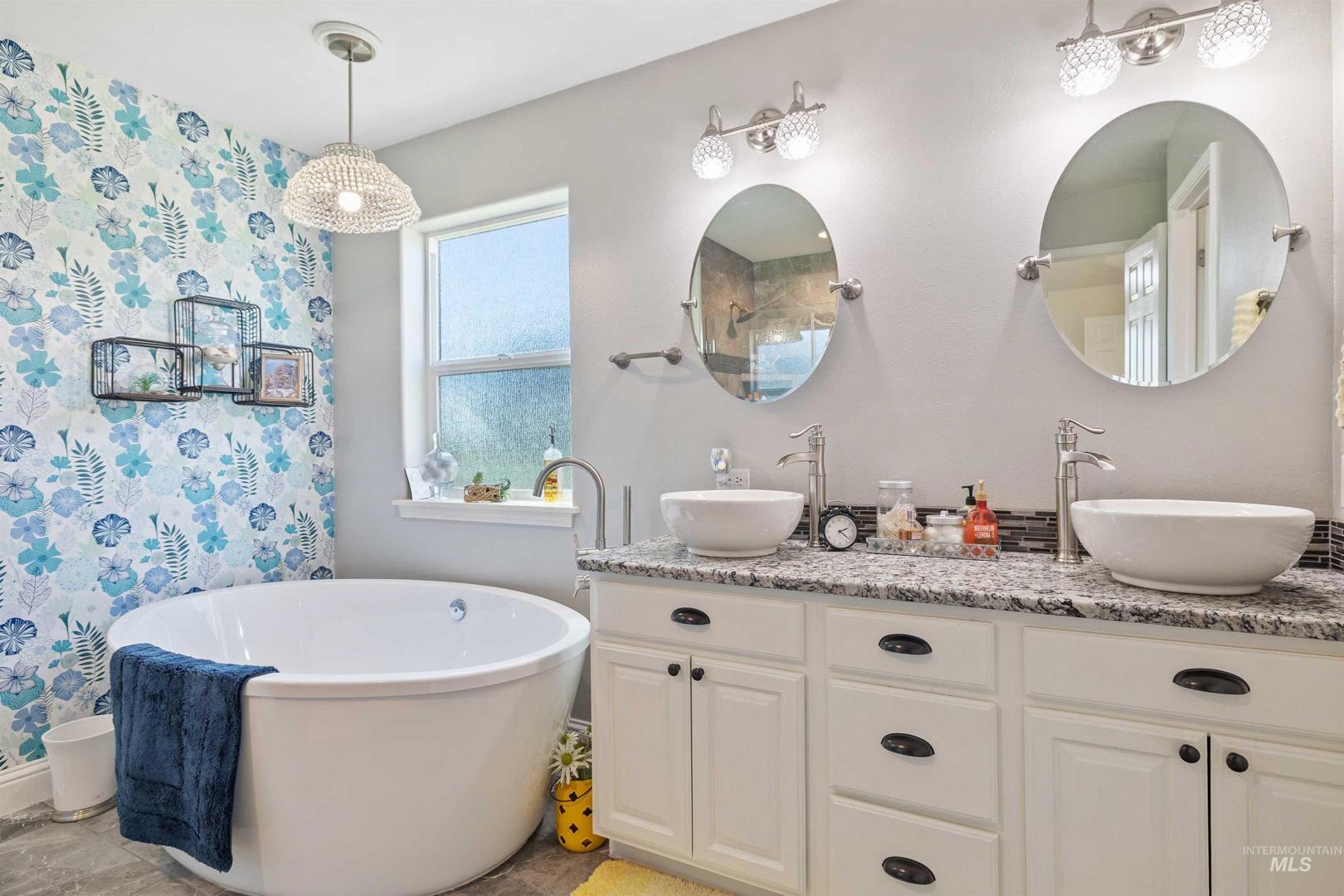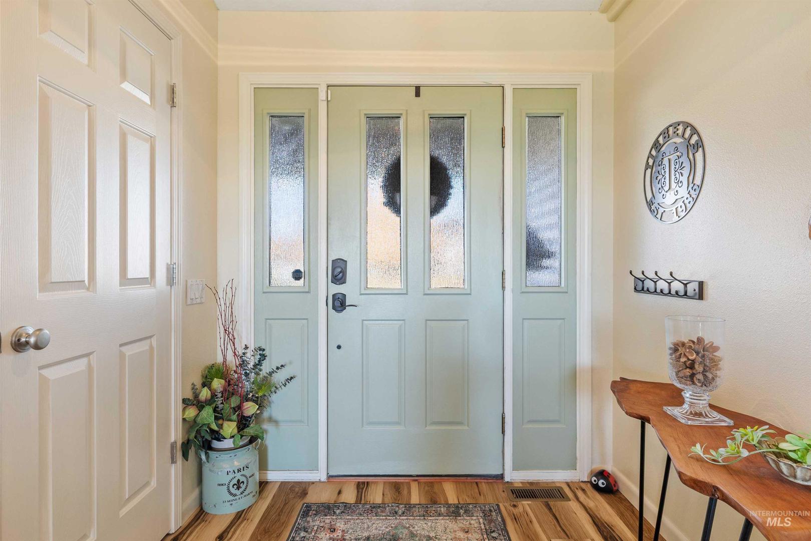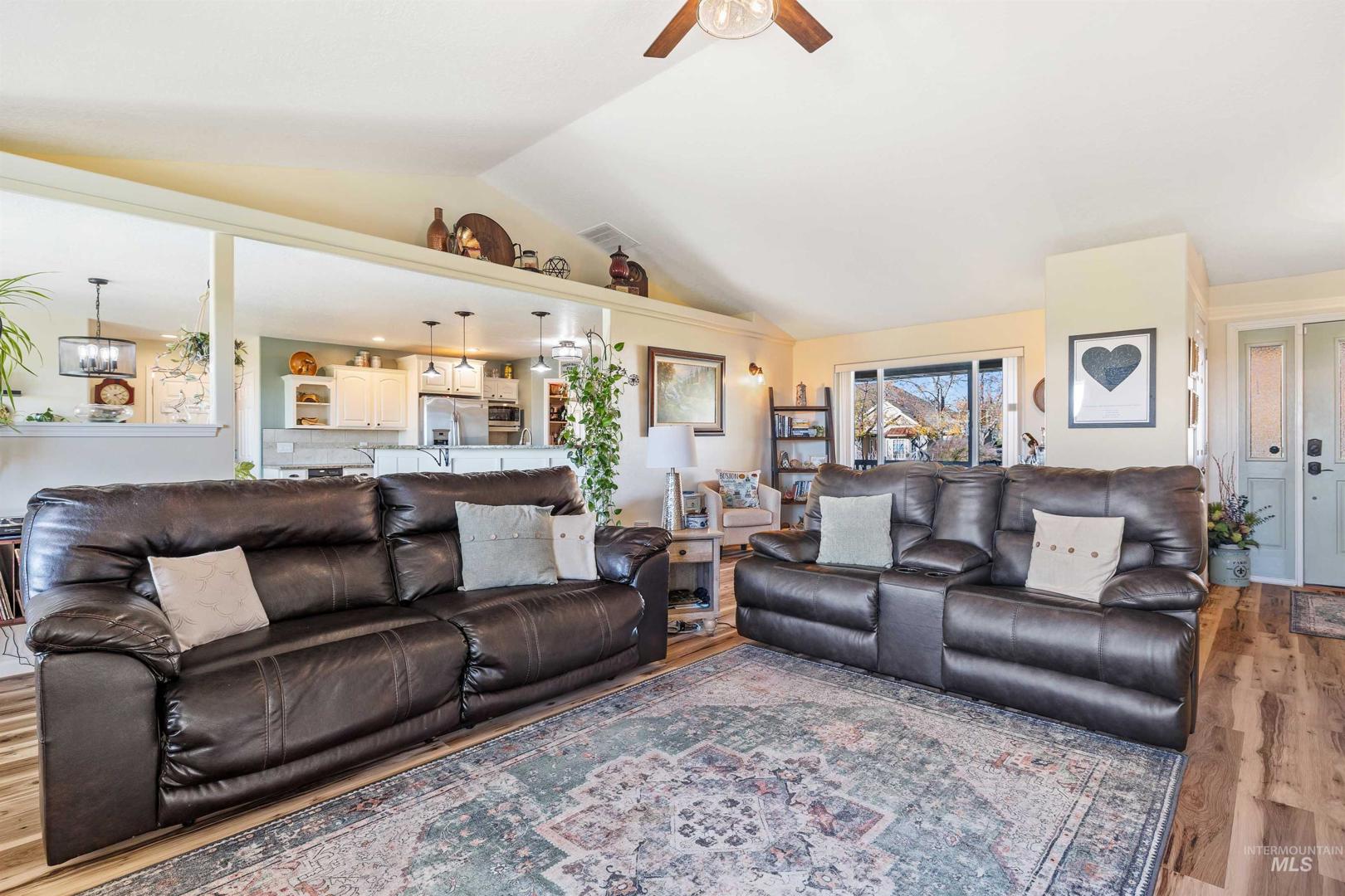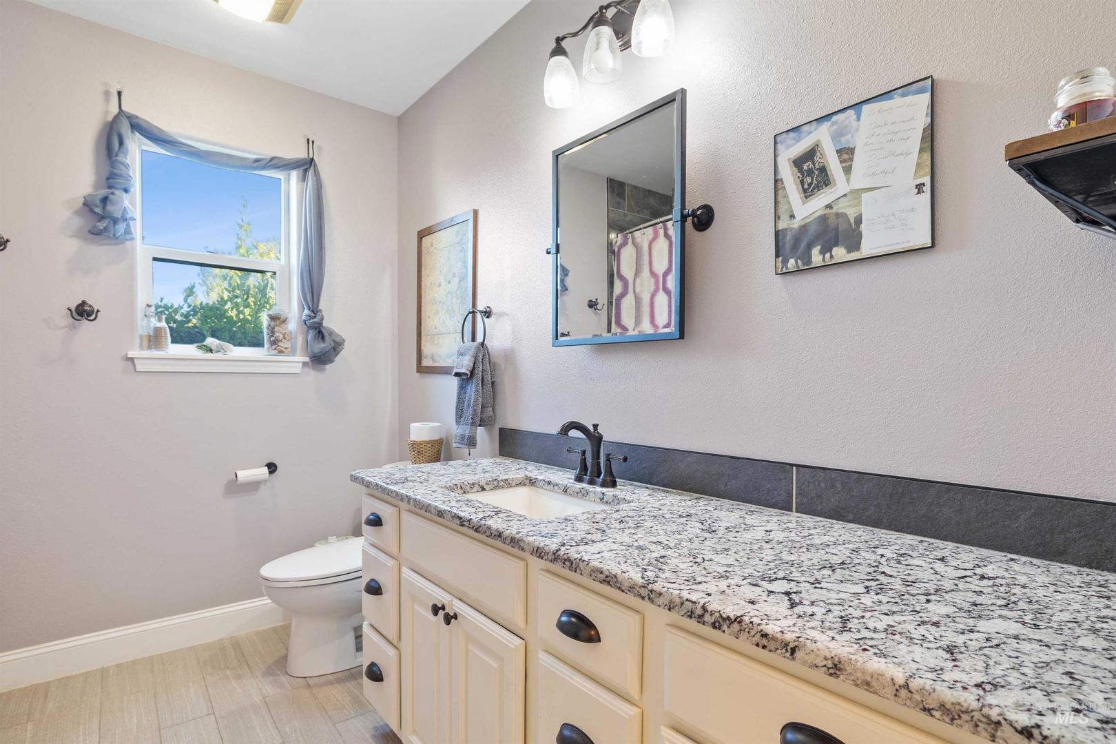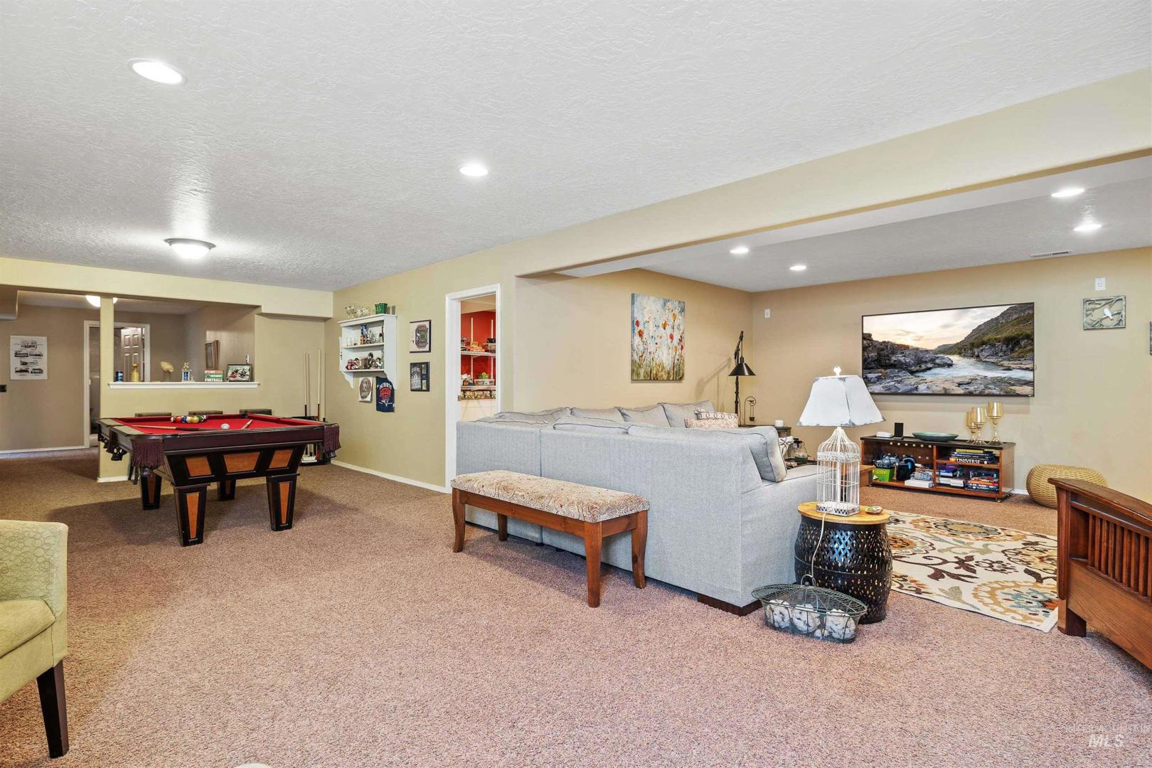 Large and beautiful, this spacious 6-bedroom, 3-bath home offers approx. 4,000 finished sq. ft. of thoughtfully designed living space on just over an acre. With timeless curb appeal and an inviting layout, this property perfectly blends comfort, function, and style. Step inside to bright, open spaces filled with natural light and high ceilings that enhance the homes airy feel. The main level features a welcoming great room ideal for entertaining with vaulted ceilings and gas fireplace, a well-appointed kitchen with ample cabinetry, breakfast bar seating, and an adjoining dining area perfect for family gatherings. Generous bedrooms offer flexibility for guests, a home office, or hobbies. The fully finished lower level expands your living space with three additional bedrooms, a full bath, a large family room, and abundant storage, perfect for a growing family or multi-generational living. Outside, enjoy mature landscaping, open yard space, Half-court basketball pad, garden with established fruit trees, covered patio, a 26 x 28 shop with 15x17 internal workshop, with amazing views. Nestled in a picturesque neighborhood just minutes from Twin Falls amenities, this move-in-ready home combines the serenity of country living with the convenience of being close to town. A truly exceptional property offering space, comfort, and opportunity in the heart of the Magic Valley.