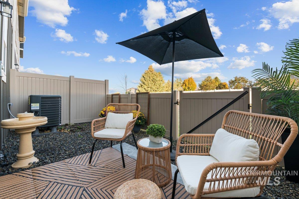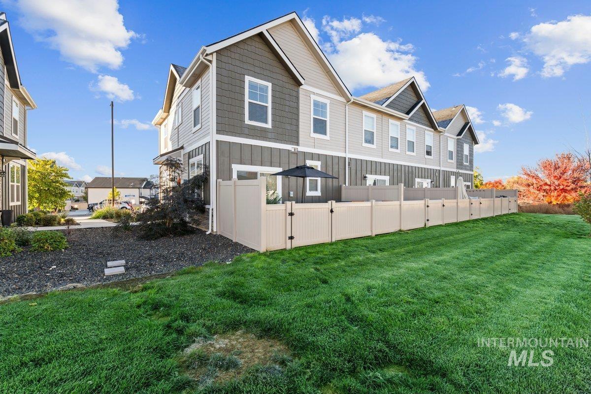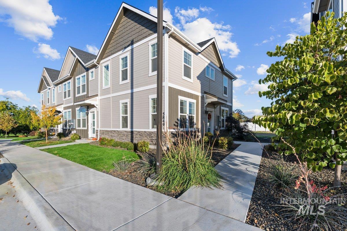 This contemporary townhome balances charm and elegance with low maintenance. The open concept flows seamlessly from the modern kitchen boasting granite counter tops and high-end finishes to the charming living room with east and south window exposure. All 3 bedrooms are thoughtfully designed with natural light pouring in. The Primary bedroom features an en-suite and tray ceiling with laundry conveniently located upstairs. The additional 2 bedrooms share a full size bathroom plus this home has more than ample storage. Relax on your private patio with no rear neighbors and a convenient gate that opens to a neighborhood pathway. Washer, dryer, and refrigerator are all included, making this home completely turnkey. Built for comfort and efficiency, this home includes a Smart Home System and is HERS and Energy Star Certified, providing substantial energy savings. Just outside this end unit are walkable amenities, community exercise room, play area, dining, shopping and more. Come see what all the buzz is about in one of the valley`s most sought after locations.