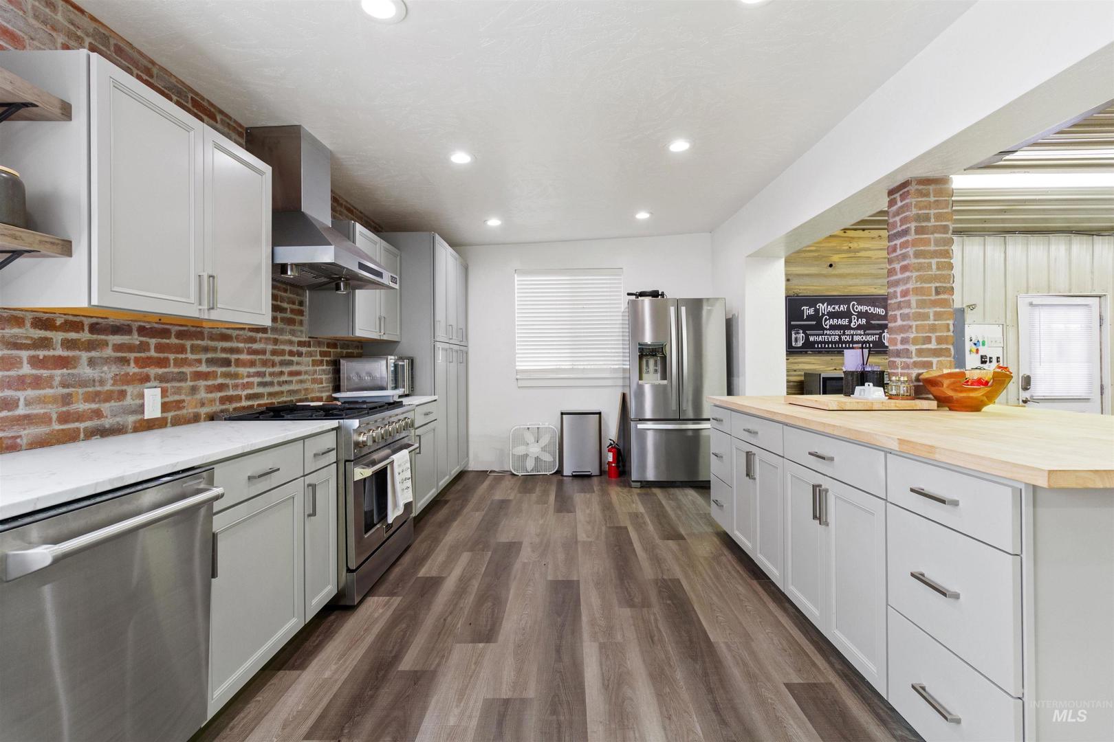 Welcome to your incredible getaway in the heart of Mackay, Idaho. Nestled on 5 parcels along Kid’s Creek and resting at the end of a quiet dead-end road, this private retreat offers unobstructed views of iconic Mount Borah & the sweeping Big Lost Valley. The turnkey 1,008 sq. ft. home features a welcoming layout with a comfortable primary suite, guest bedroom, full guest bath, & an upstairs loft perfect for extra sleeping or a cozy hangout. The open kitchen and living room capture gorgeous mountain scenery right out the window. The property shines as a host’s paradise. The impressive 3-bay shop doubles as an entertainment hub with a full high-end kitchen including commercial-grade stove, ice maker, beverage refrigerator, & generous gathering space. A full bathroom with laundry adds convenience, while the remaining bays store all your outdoor toys with ease. Just steps away, a heated and cooled bunkhouse creates a kids’ dream escape — easily sleeping 6 and positioned perfectly near the shop bathroom for comfort and ease. With 4–5 prime RV sites featuring sewer hookup, multiple power options, & ample parking, this is the ideal spot for unforgettable gatherings. A charming historic shed offers extra storage or potential for a fun game room. Whether it’s long weekends filled with ATVs and campfires or peaceful mornings by the creek, this property will create memories for years to come.