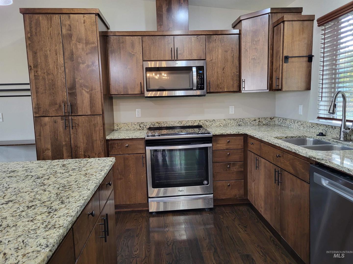 Very nice home in the newer Indian Hills 6th Addition. This well-built property is moderately sized and can accommodate many living arrangements. Split entry design with open concept kitchen/living/dining on the upper level, along with king-sized master bedroom and huge master bath, 2 more bedrooms and a second guest bath. Extra den/family room with shelving in the lower level, along with a fourth bedroom, third bath, laundry room and access to the spotless oversized 2-car garage. Details include a gorgeous kitchen with stainless appliances, granite counters and wood floors, many windows and natural lighting, and VIEWS from any side of the property. Location is near schools, shopping, restaurants, parks, bus routes and the local bike trail - a convenient spot with access to everything Moscow!