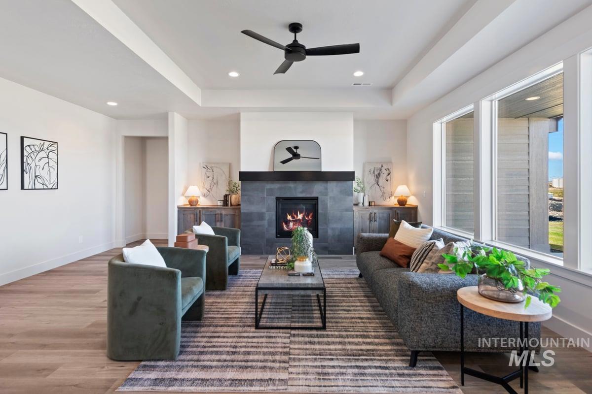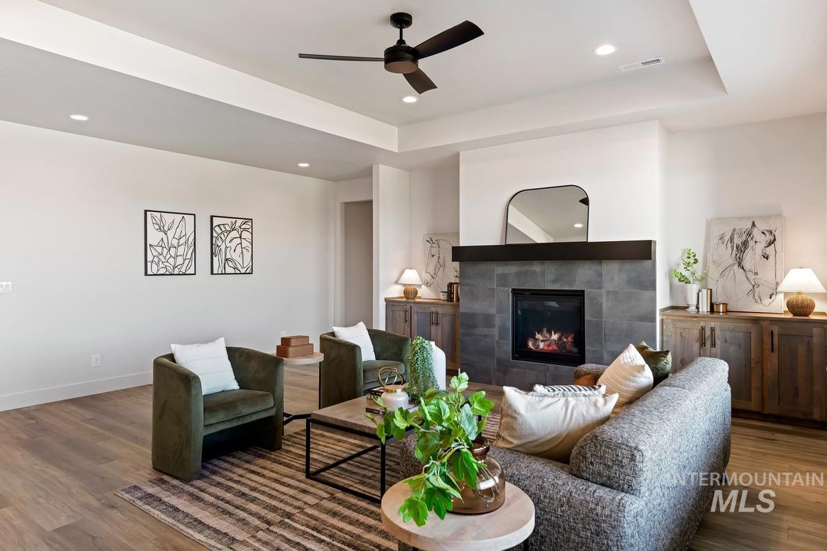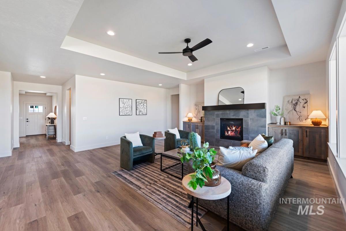 Thoughtfully designed single-level floor plan offers 3 bedrooms, 2 bedrooms, office and 3 car insulated garage w/tandem. This incredible home features a beautiful kitchen with quartz countertops, eat in kitchen island, stainless steel gas range, soft close drawers, cozy fireplace, walk-in shower, LVP flooring. The property is adjacent to Redhawk golf course, Gott`s Point and Fisher walking path and non-motorized access to Lake Lowell. South Nampa quiet community and great location to shopping, dining and medical facilities. Open House every Friday, Saturday and Sunday 1-3 follow open house to agent on duty in Heron Ridge.