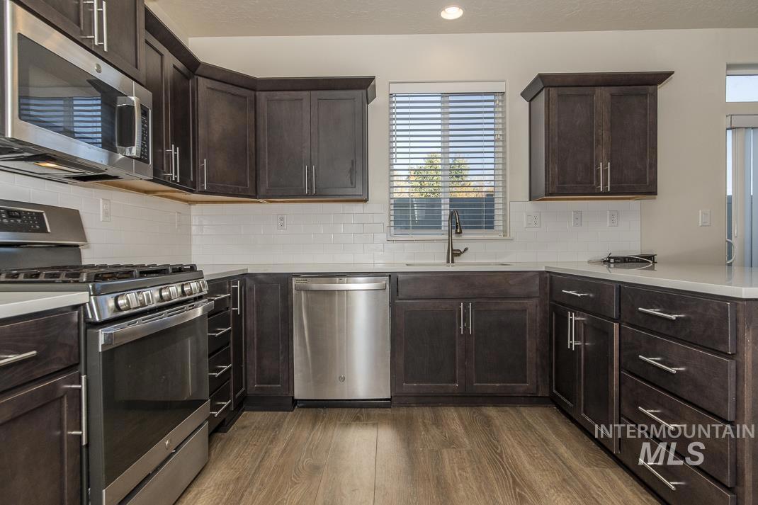 Better Than New & Fully Turn-Key, in the Heart of Star! Over 30k of upgrades ready for you Welcome to this stunning 5-bedroom, 3-bathroom home perfectly situated in one of Star’s most desirable neighborhoods. Conveniently located near top-rated schools, beautiful parks, & local dining, this home offers the ideal mix of small-town charm & modern comfort. Better than new, this home has been meticulously cared for & thoughtfully improved, offering true turn-key living with refrigerator, washer, dryer, & blinds included. The private, fully fenced backyard has no direct rear neighbors & features two spacious patios, perfect for relaxing or entertaining. Inside, you’ll find hard flooring throughout the main living areas for a clean, low-maintenance feel & a bright, open-concept layout that flows seamlessly from the kitchen to the living room. The kitchen showcases granite countertops, an upgraded sink, and modern finishes, while the living room’s cozy gas fireplace creates a warm, inviting atmosphere. Upstairs, the secondary bathroom offers dual vanities for convenience, while the primary suite is a true retreat with two walk-in closets & a luxurious ensuite featuring a separate tub and shower, granite double-sink vanity, and tile flooring. Lovingly maintained and move-in ready, this home truly outshines new construction—offering the perfect blend of comfort, quality, & convenience. BATVA