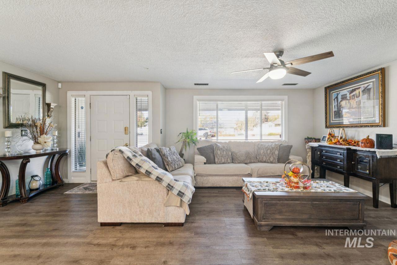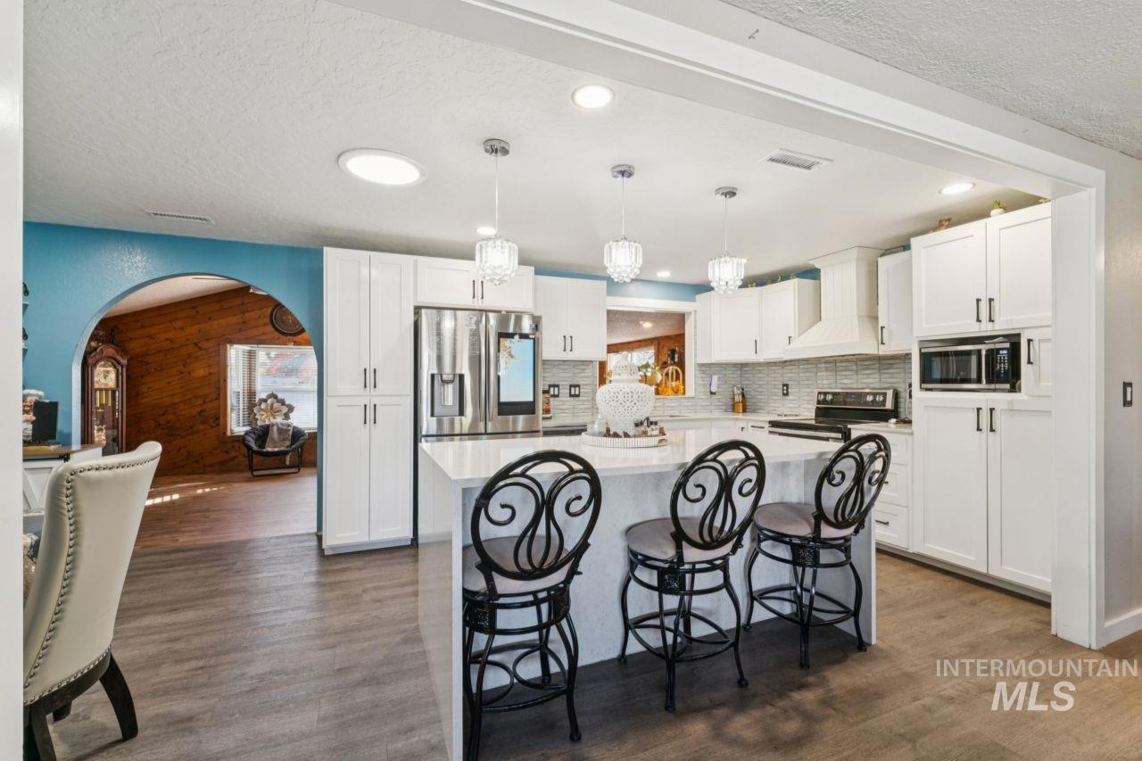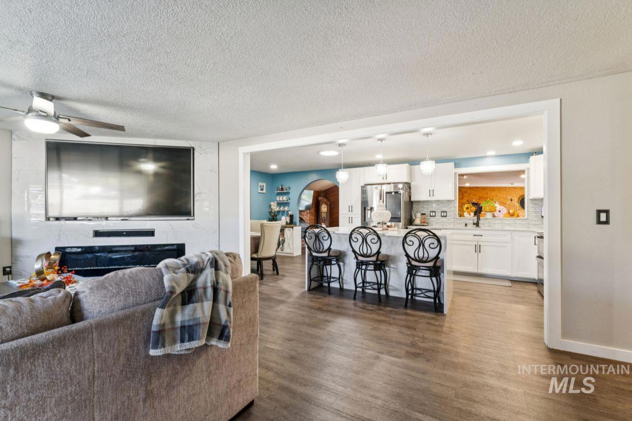 Stunning Caldwell Home on 0.40 Acres—Minutes from Lake Lowell! This beautifully updated 3-bed, 2-bath home blends modern finishes with spacious living. The remodeled kitchen features waterfall quartz countertops, a large island, stylish backsplash, stainless steel appliances, brand new dishwasher and custom cabinetry—perfect for cooking and entertaining. The open floor plan flows into the great room with a bar and pass-through window, ideal for gatherings. The primary suite offers backyard access, dual vanities, an updated shower, and a relaxing jacuzzi. Enjoy the versatile bonus room with wood-accented walls, a bar, and cozy fireplace. Outside, relax under the covered gazebo, around the fire pit, or on the private patio. Alley access allows RV parking, boat storage, or room for a shop. Fresh exterior paint, fenced yard, mature landscaping, and storage shed complete this move-in-ready gem!