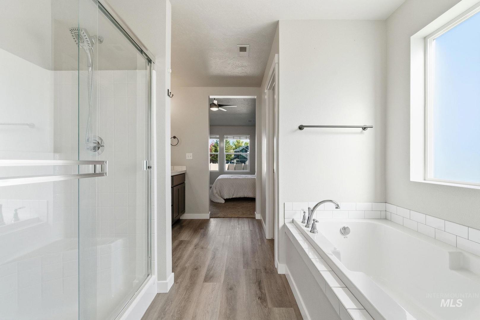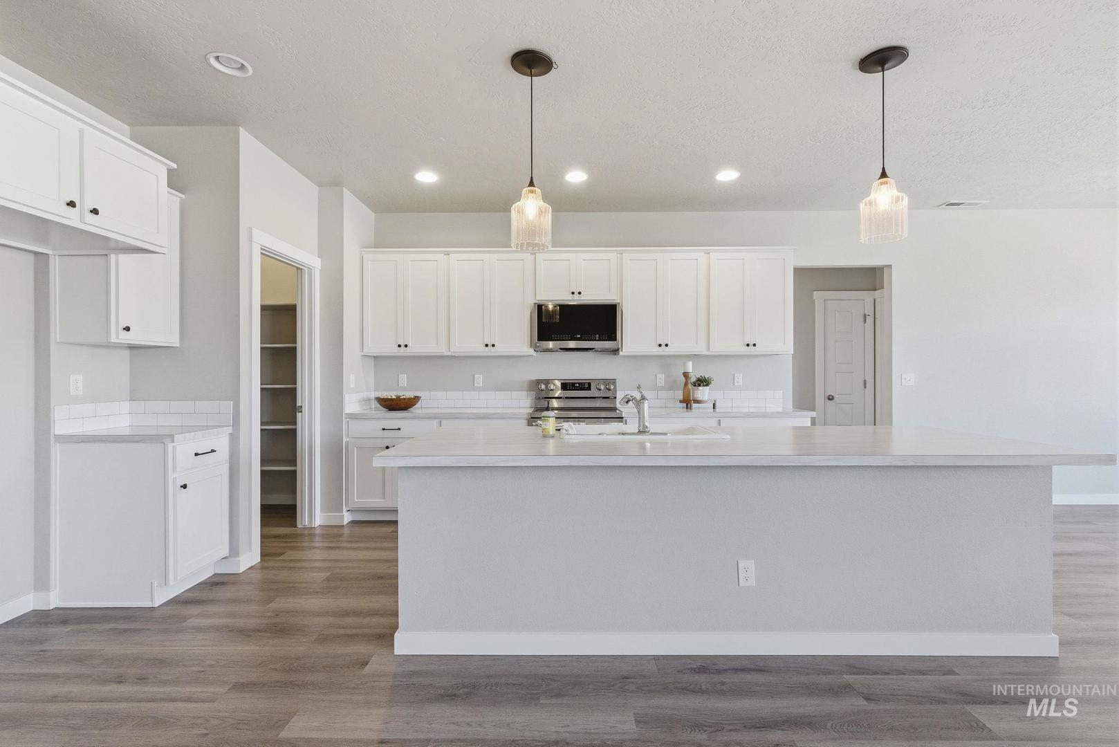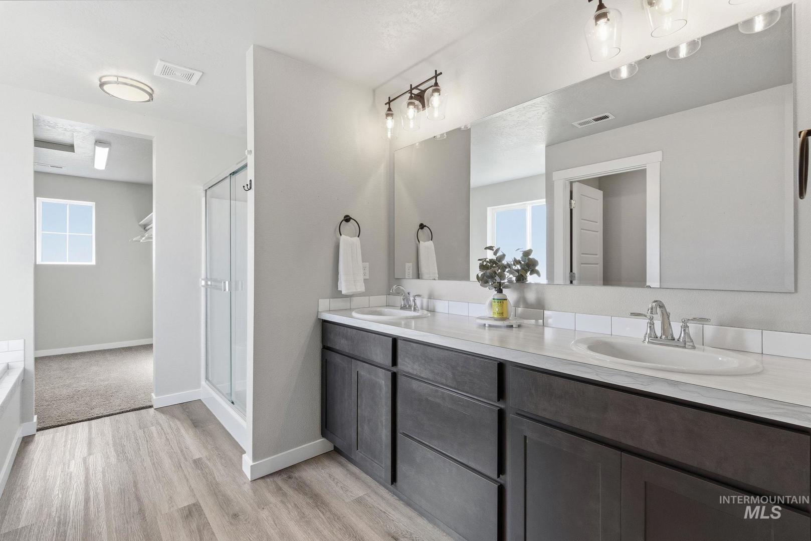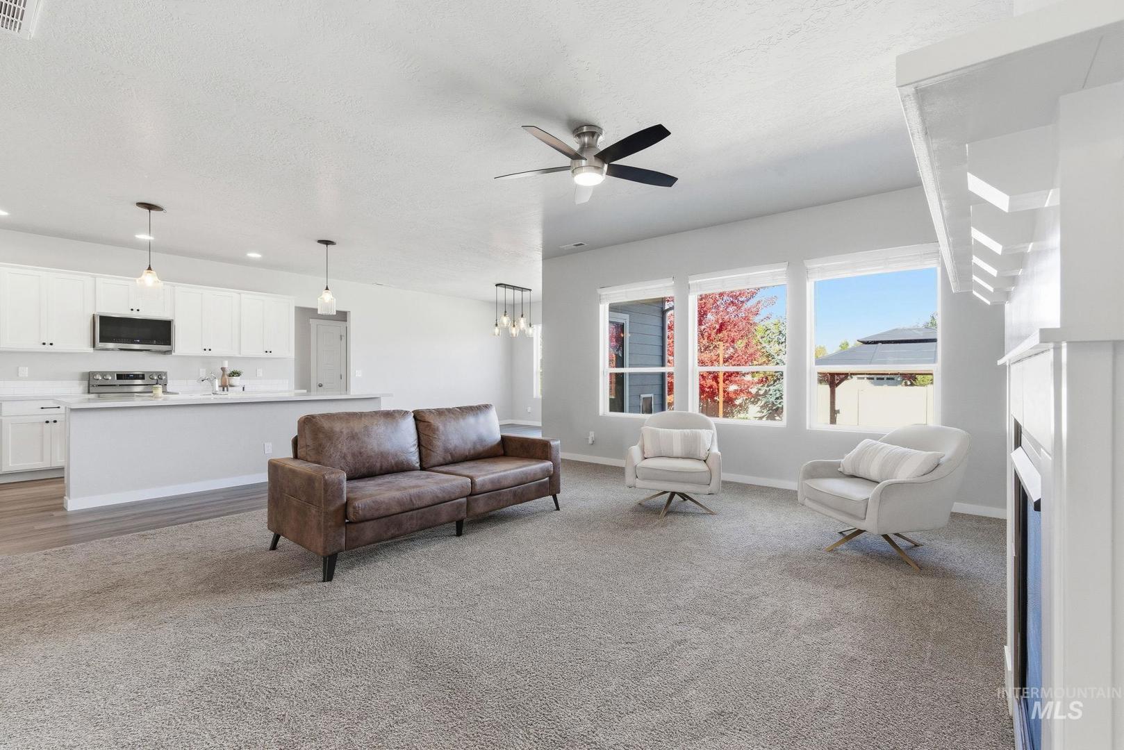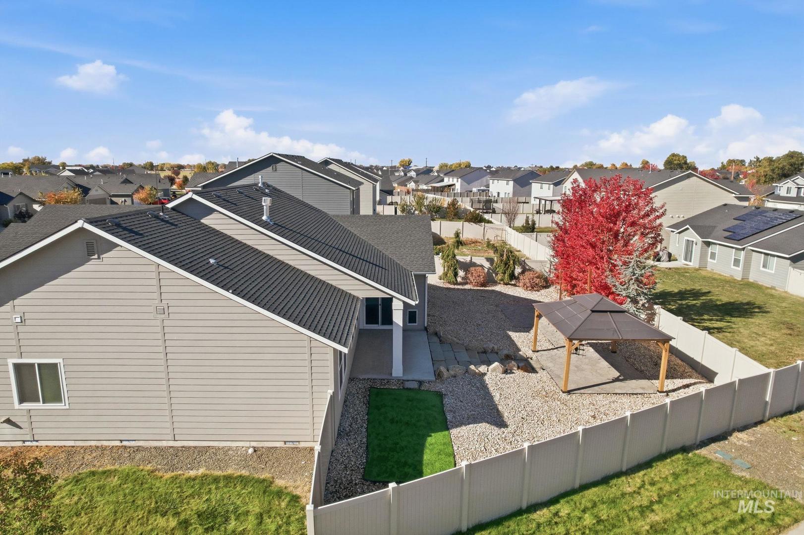 Welcome home to this spacious and beautifully maintained single-level home in desirable northeast Nampa! Offering over 2,100 square feet of comfortable living space, this 4-bedroom, 2-bathroom residence combines modern convenience with thoughtful design. Step inside to find an inviting open-concept layout featuring a bright living area, high ceilings, and a functional kitchen with generous counter space—perfect for both everyday living and entertaining. The split-bedroom floor plan ensures privacy, with a spacious primary suite complete with a walk-in closet and dual-sink vanity. Out back, enjoy Idaho evenings in the low-maintenance xeriscaped backyard, designed for relaxation and outdoor enjoyment. The yard features beautiful paver walkways and a large gazebo, ideal for gatherings or quiet moments outdoors. Additional highlights include a three-car garage, plenty of storage, RV or boat parking and a convenient location close to shopping, parks, and freeway access.