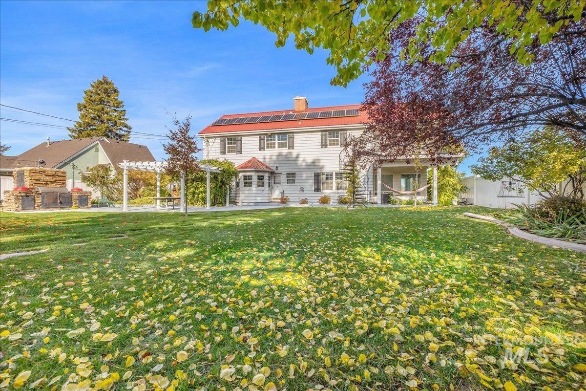 Step back in time while enjoying modern luxury in this magnificent Colonial Revival home, perfectly situated on the edge of Lakeview Park, the largest park in Nampa. This historic gem offers a rare blend of timeless elegance and high-efficiency updates, all set on an expansive, lush lot. With three distinctive levels, this home boasts beautiful architectural details true to its era, complemented by recent, significant improvements. The basement level has been freshly remodeled and includes a second kitchen with its own washer and dryer and its own entrance via the street level garage, offering incredible flexibility to rent out as an apartment, or to use for guests or a multi-generational living space. Enjoy peace of mind with the home`s plentiful updates, including a brand-new sewer line, updated kitchens and bathrooms, fresh interior paint, solar panels and a smart dual-zone thermostat. The location simply can`t be beat. Your front yard is the spectacular Lakeview Park, providing an endless extension of your living space just steps away. The property features a rare combination of alley access to the detached two car garage with an extra storage bay and no direct backyard neighbors, ensuring exceptional privacy and convenience. The large lot is a gardener`s dream, featuring mature landscaping that creates a tranquil, shaded oasis, perfect for enjoying the Idaho seasons.