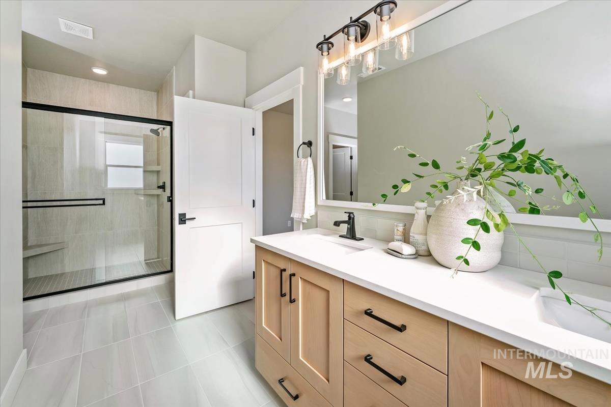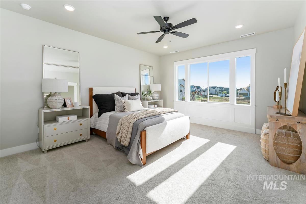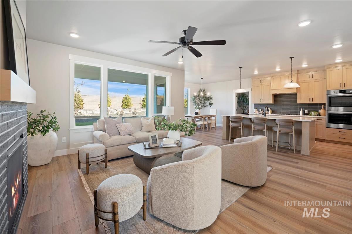 The Highgate by Biltmore Company LLC features a remarkable 4-car garage! Highlights of this floorplan include a bright and airy great room with a stone fireplace, office/bedroom on the main and a stunning kitchen with quartz countertops, stainless steel appliances with double ovens and walk-in pantry. Upstairs you`ll find the primary bedroom, secondary bedrooms and laundry room. The primary bedroom with ample natural light features an ensuite with dual vanities, quartz countertops and a beautiful tiled walk-in shower. Enjoy Idaho`s seasons from your backyard covered patio! Lincoln Creek offers a state-of-the-art clubhouse including a dog wash station, community pool, social areas, pickleball court, acres of open space and much more.
