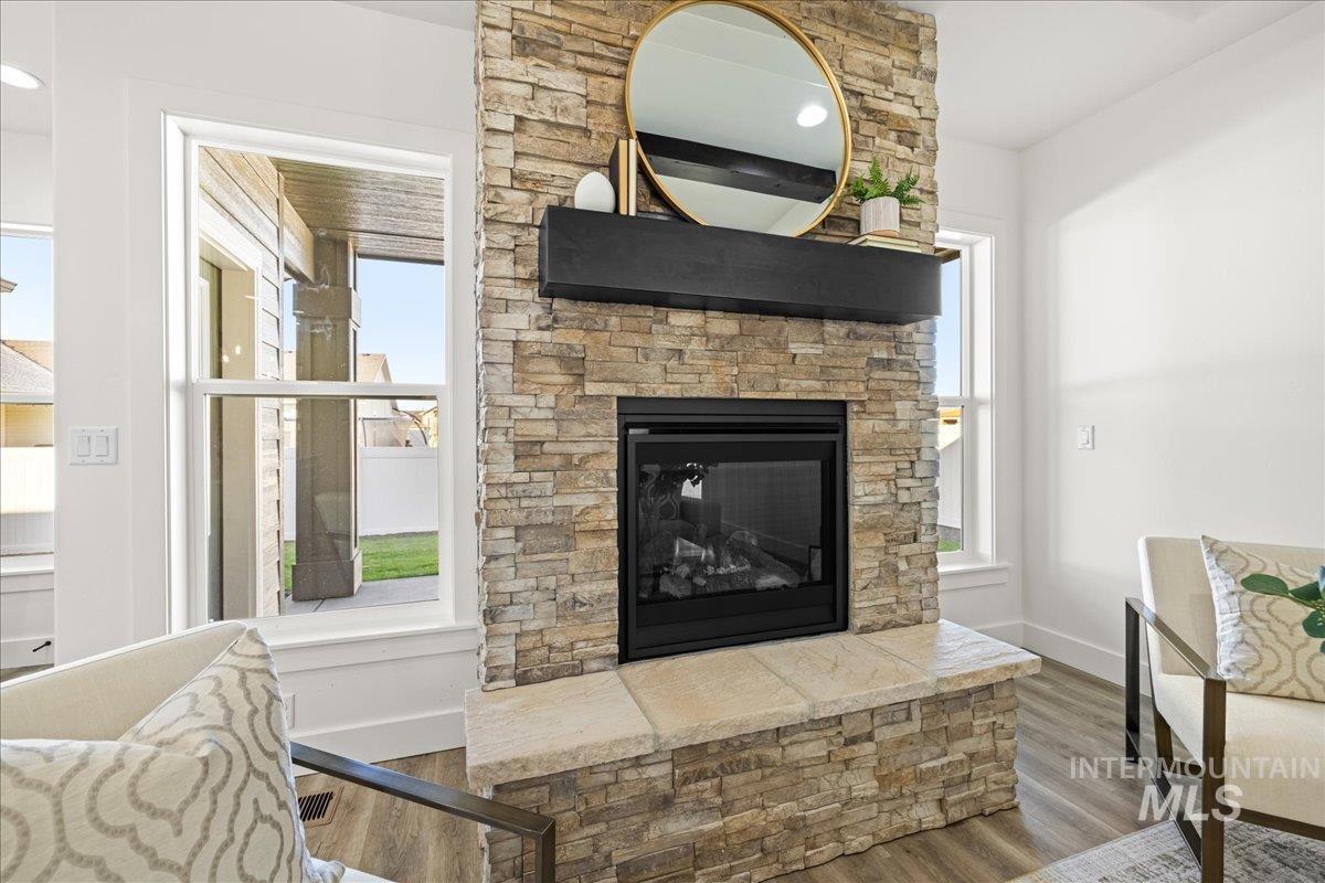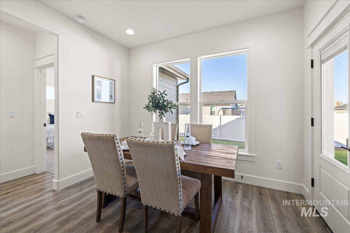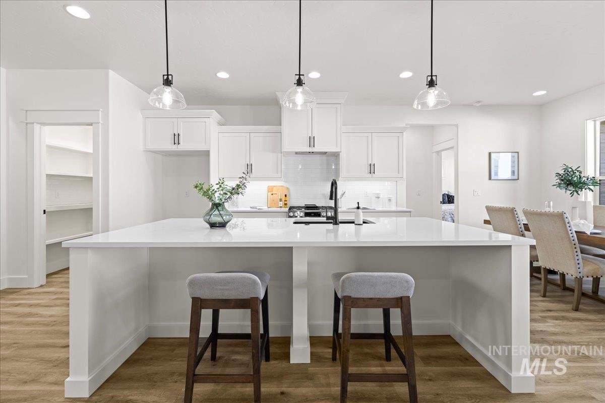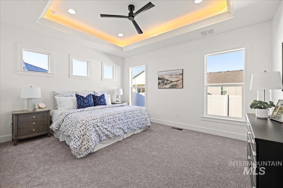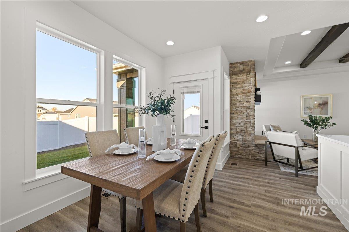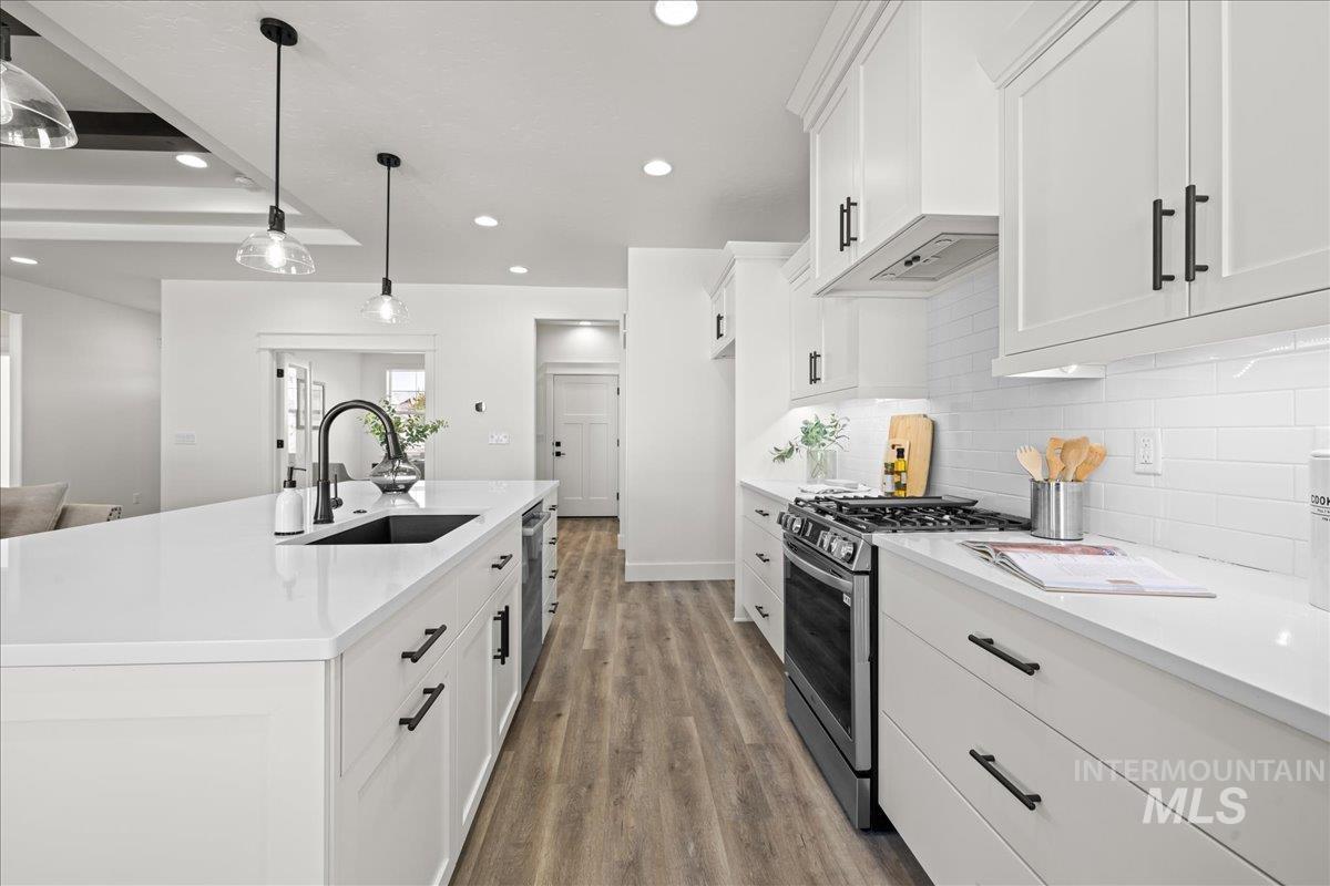 The Denali by Sunrise Home. This efficient single level home has a spacious open concept perfect for entertaining. Enjoy the open great room detailed with a 10 foot coffered ceilings with beams & large windows to provide abundant natural light to flow throughout the main living areas. The split bedroom design features 3 bedrooms and a large office space. In the kitchen you will find custom cabinetry with ample storage & counter space, quartz countertops, a full-tiled backsplash, stainless steel appliances and a large walk in pantry. The primary suite boasts dual vanities and custom tiled walk in shower. Come store all your toys in the large 42 foot deep RV bay. You`ll come to love using nearly 1000 sq ft of garage space. Outside you will get full landscaping front and back with automated sprinkler systems. This home is located in Emmett in the new Dagger Falls Subdivision. Photos are similar/not the actual home.