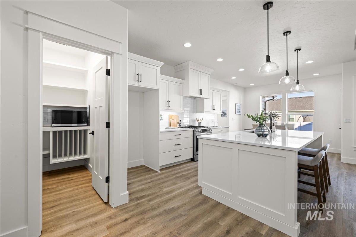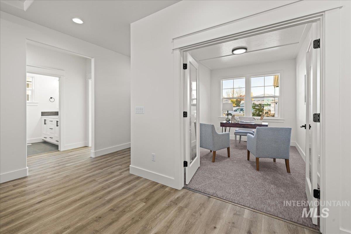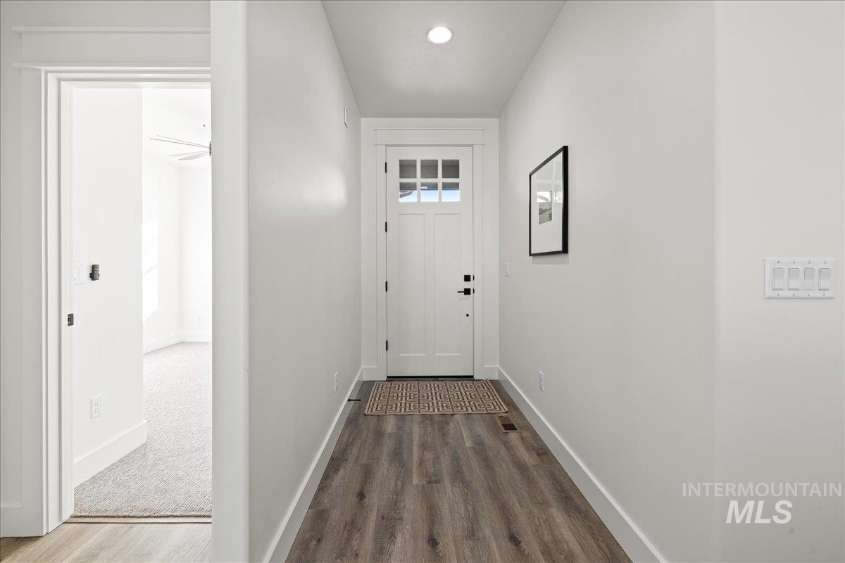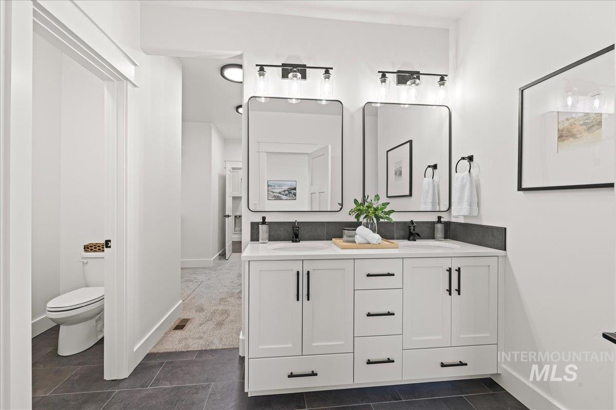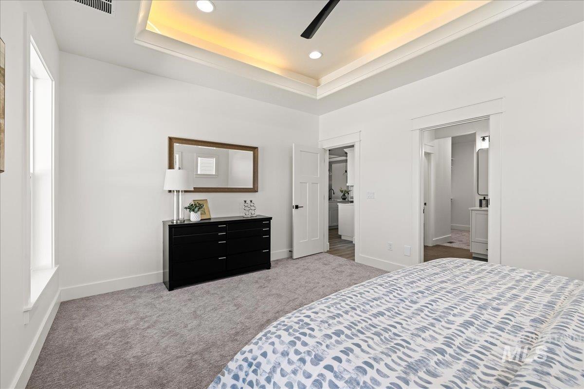 The Denali by Sunrise Home. This efficient single level home has a spacious open concept perfect for entertaining. Enjoy the open great room detailed with a 10 foot coffered ceilings with beams & large windows to provide abundant natural light to flow throughout the main living areas. The split bedroom design features 3 bedrooms and a large office space. In the kitchen you will find custom cabinetry with ample storage & counter space, quartz countertops, a full-tiled backsplash, stainless steel appliances and a large walk in pantry. The primary suite boasts dual vanities and custom tiled walk in shower. Come store all your toys in the large 42 foot deep RV bay. You`ll come to love using nearly 1000 sq ft of garage space. Outside you will get full landscaping front and back with automated sprinkler systems. This home is located in Emmett in the new Dagger Falls Subdivision. Photos are similar/not the actual home.